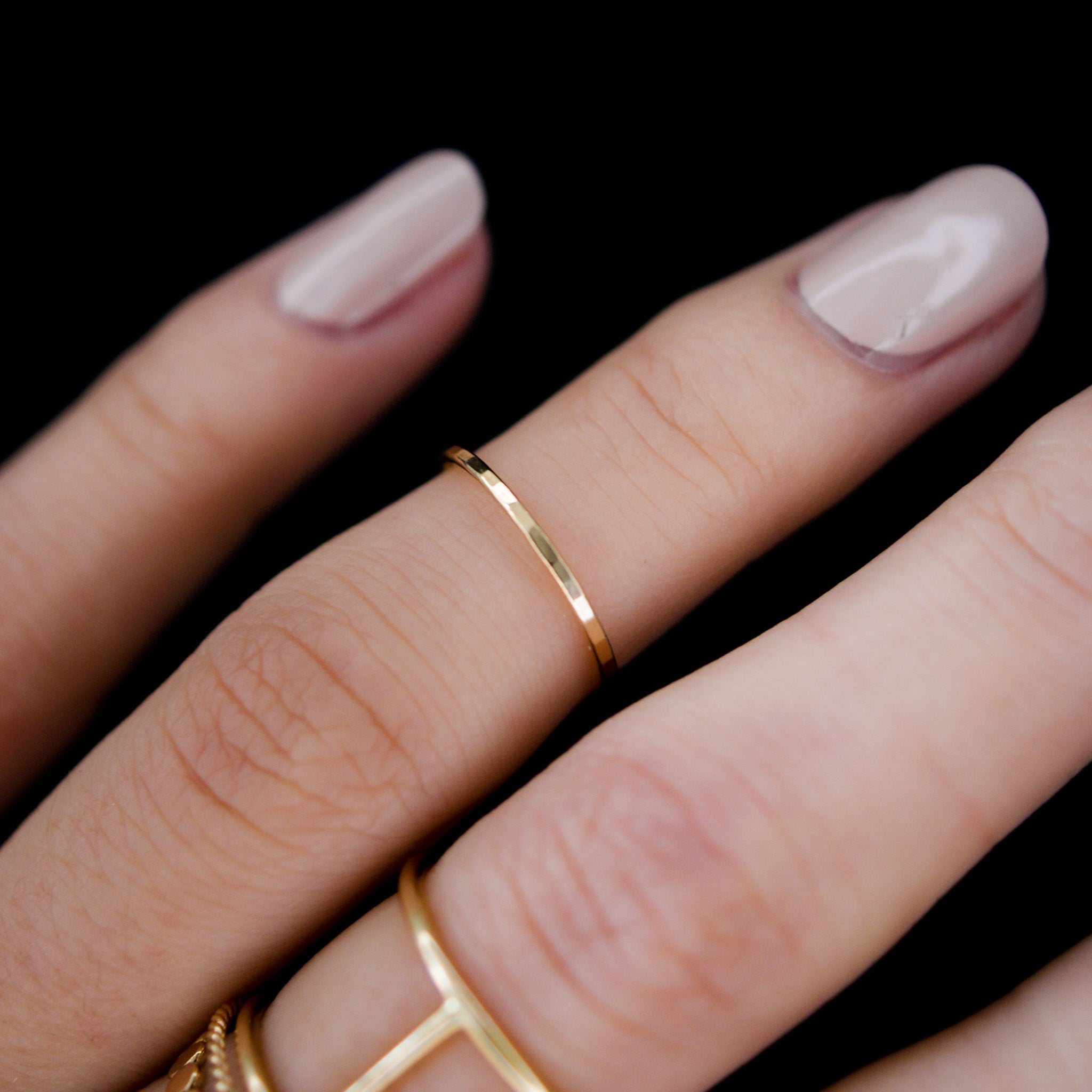 We absolutely love the look of an Ultra Thin Ring as a Midi! This style is so perfectly minimal. Plus, these rings are slightly maleable, so they will form to your finger over time!