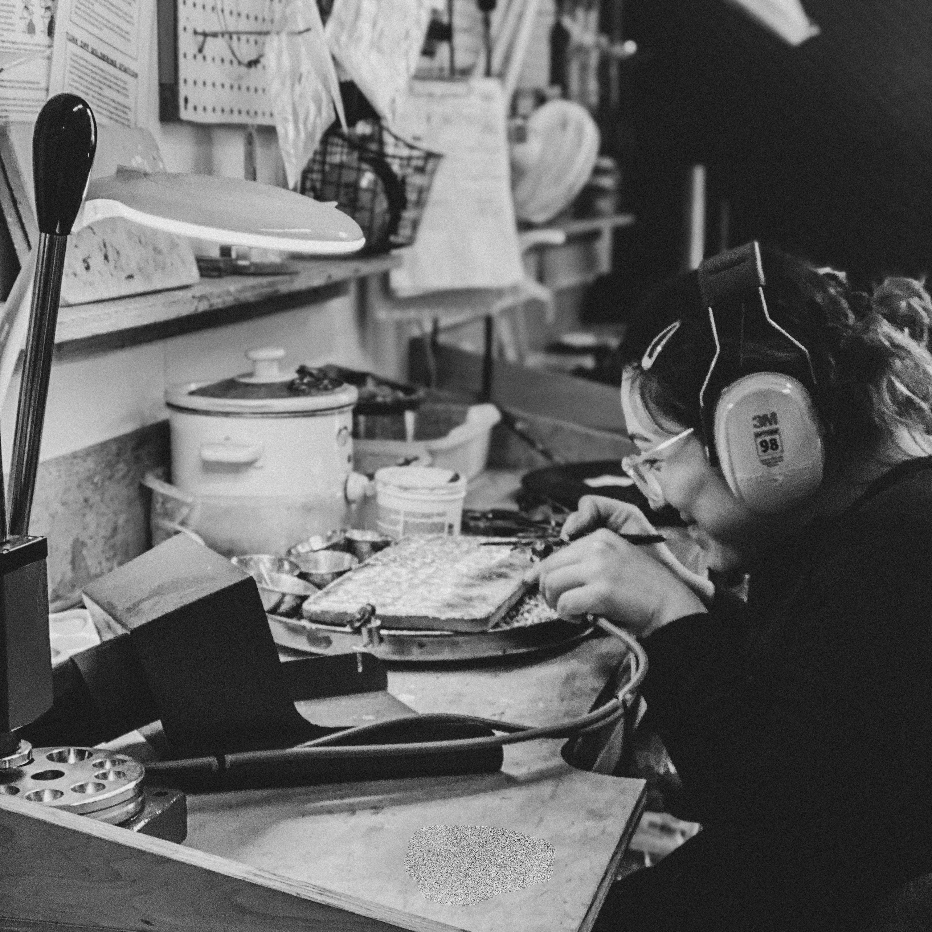 Hannah is always dreaming up new designs and reworking classic styles to give them new life. Once they are perfected, those designs will be handmade to order by Hannah and our talented production team using sustainably sourced, high quality metals. Then, a member of Team HN will meticulously check each piece for quality one final time before carefully packaging it and sending it off to its new home. In fact, the small team of ladies responsible for packaging and shipping your orders may be familiar! The three of us also answer your messages, run our brick & mortar shop in SE Portland and create photo, video and graphics content for our social media accounts and website.