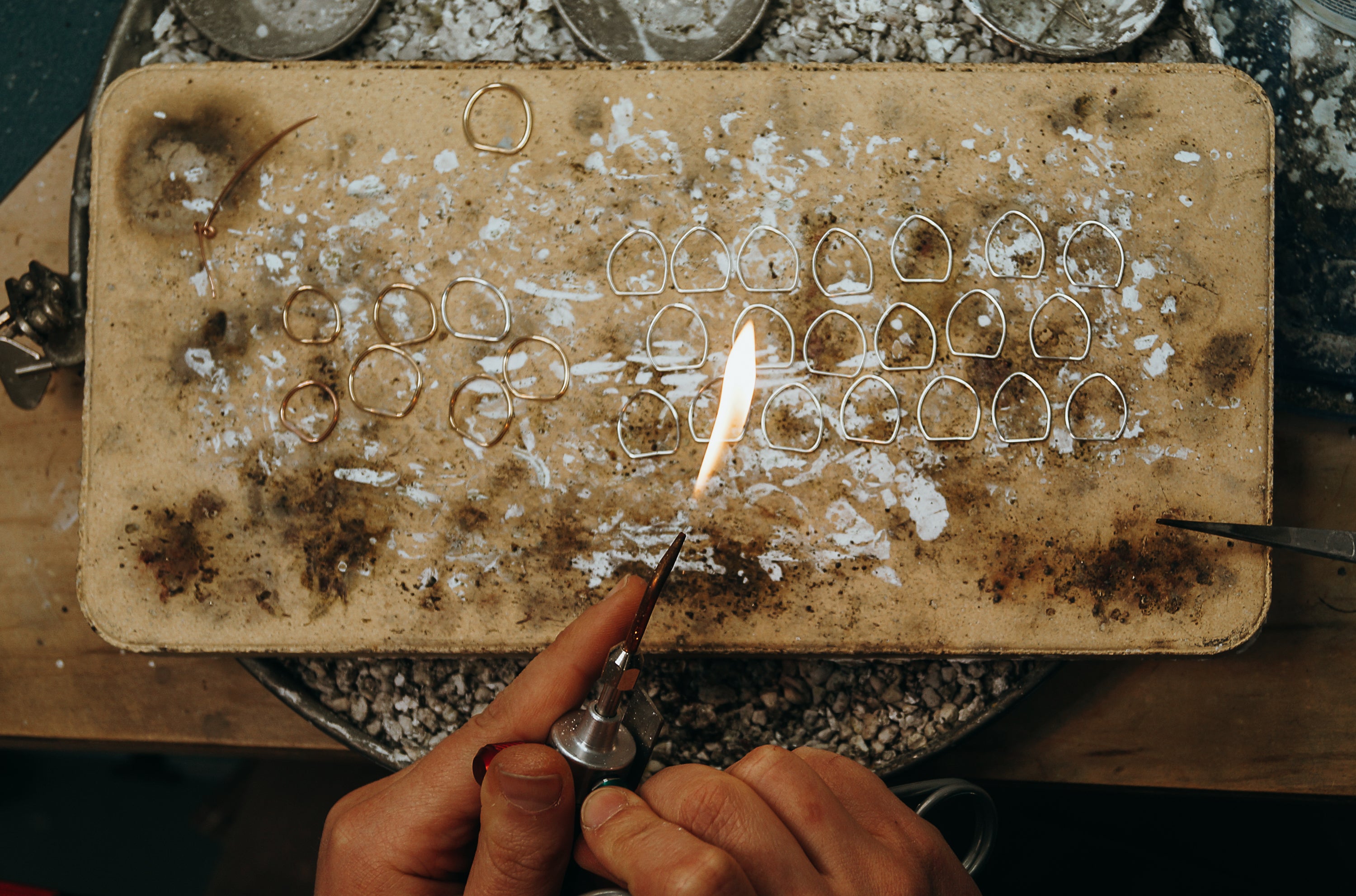 All of our pieces are created from raw or recycled wire and sheet metal. We do not cast (the process of carving a wax mould to be filled with liquid metal) any of our pieces. This means that we, unfortunately, do not have the materials available to re-work heirloom pieces into a new design.