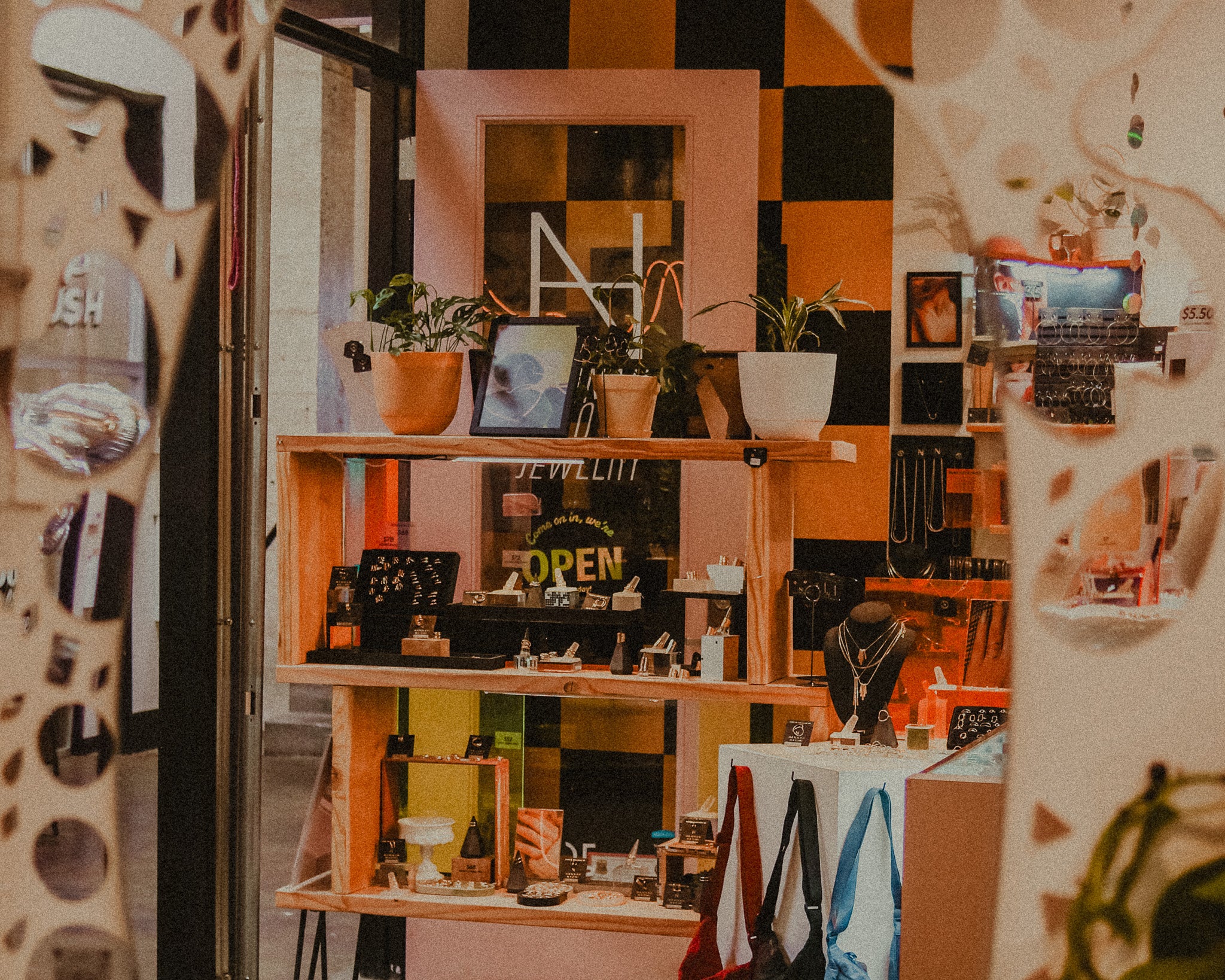 We have a small selection of locally sourced artisan goods including greeting cards, skincare, makeup, perfume, nail polish, candles, ceramics, pins, totes + more! These items combined with our hand-crafted jewelry will make us your new favorite one-stop gift shop! :) Gift wrap is also available.