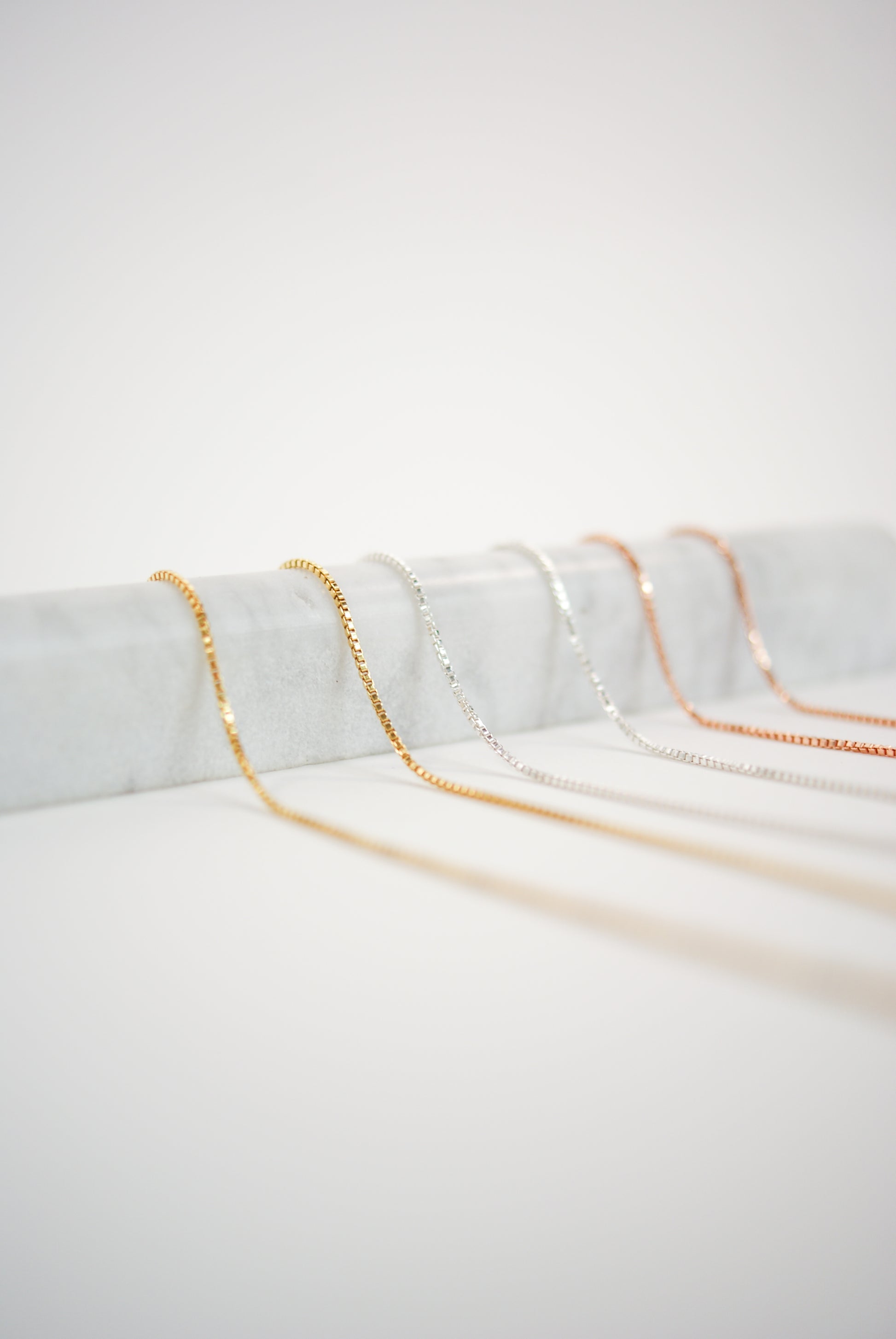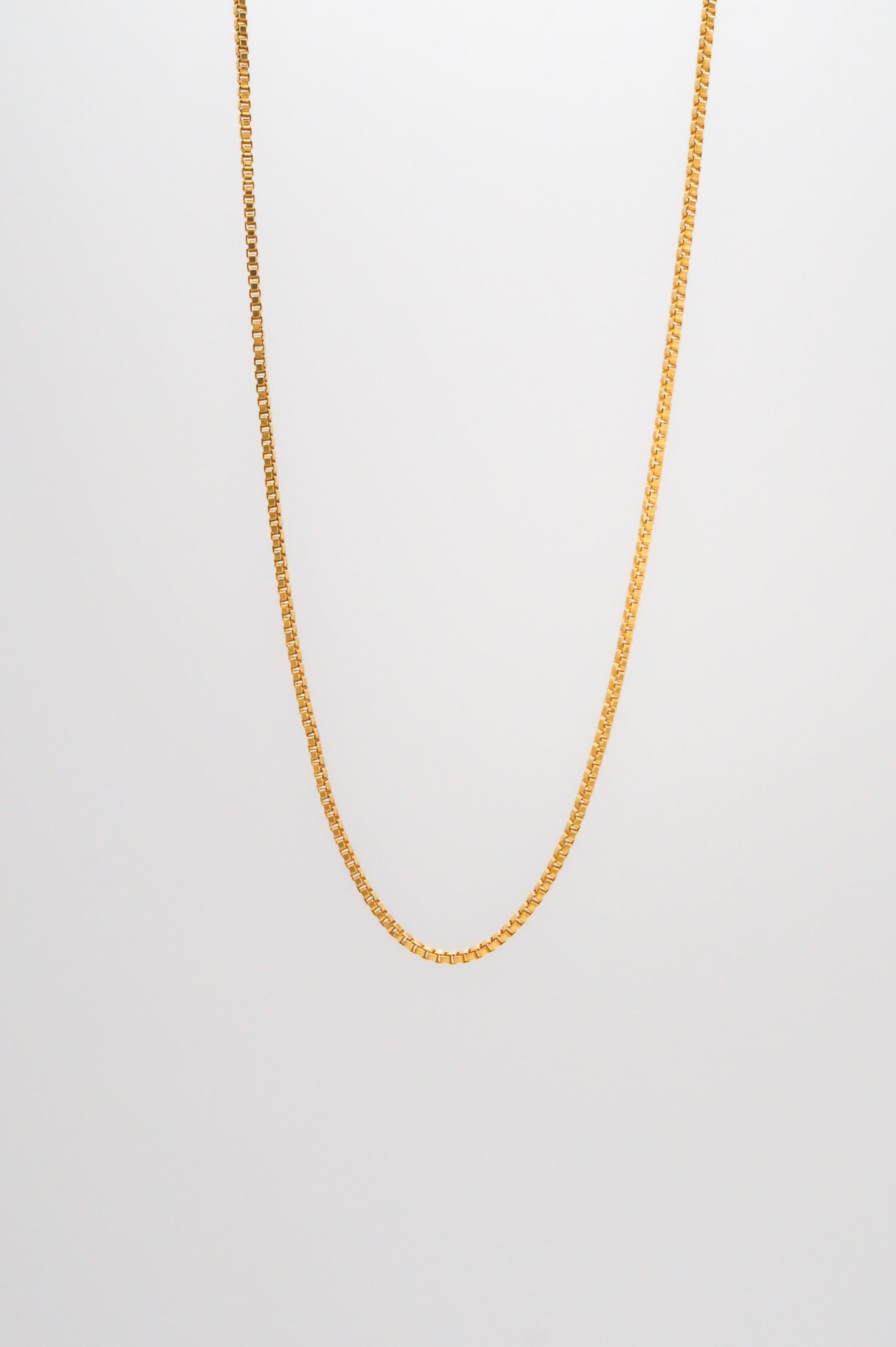 The Box Chain Necklace is a versatile Venetian-style chain that adds a touch of timeless sophistication to any outfit. With its lightweight design and sleek geometric links, this unisex necklace is perfect for daily wear, whether layered with pendants or worn solo as a refined statement piece. Its adjustable length makes it ideal for adding depth to your jewelry collection, offering a modern, elegant look that complements every style.