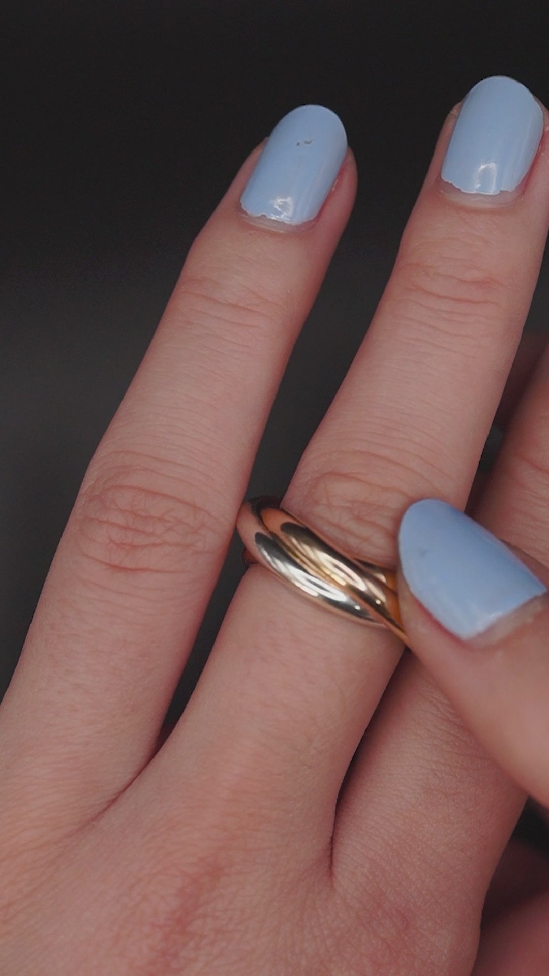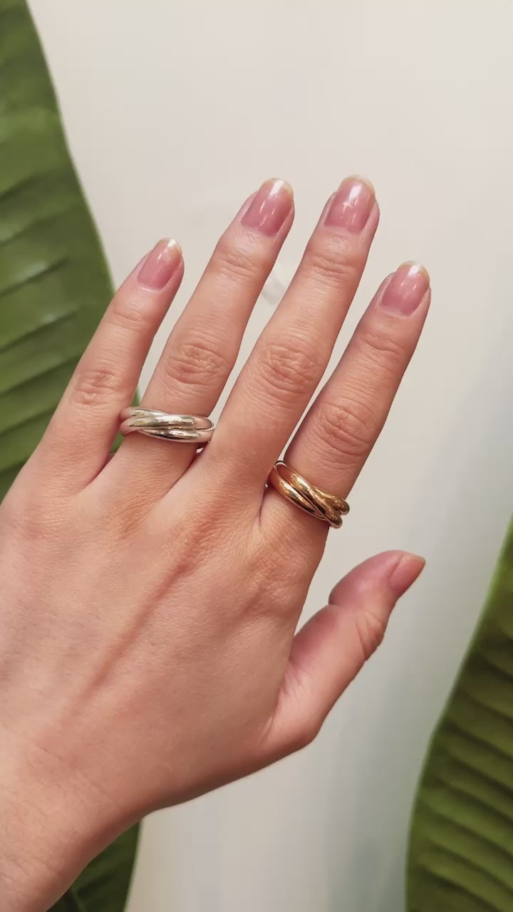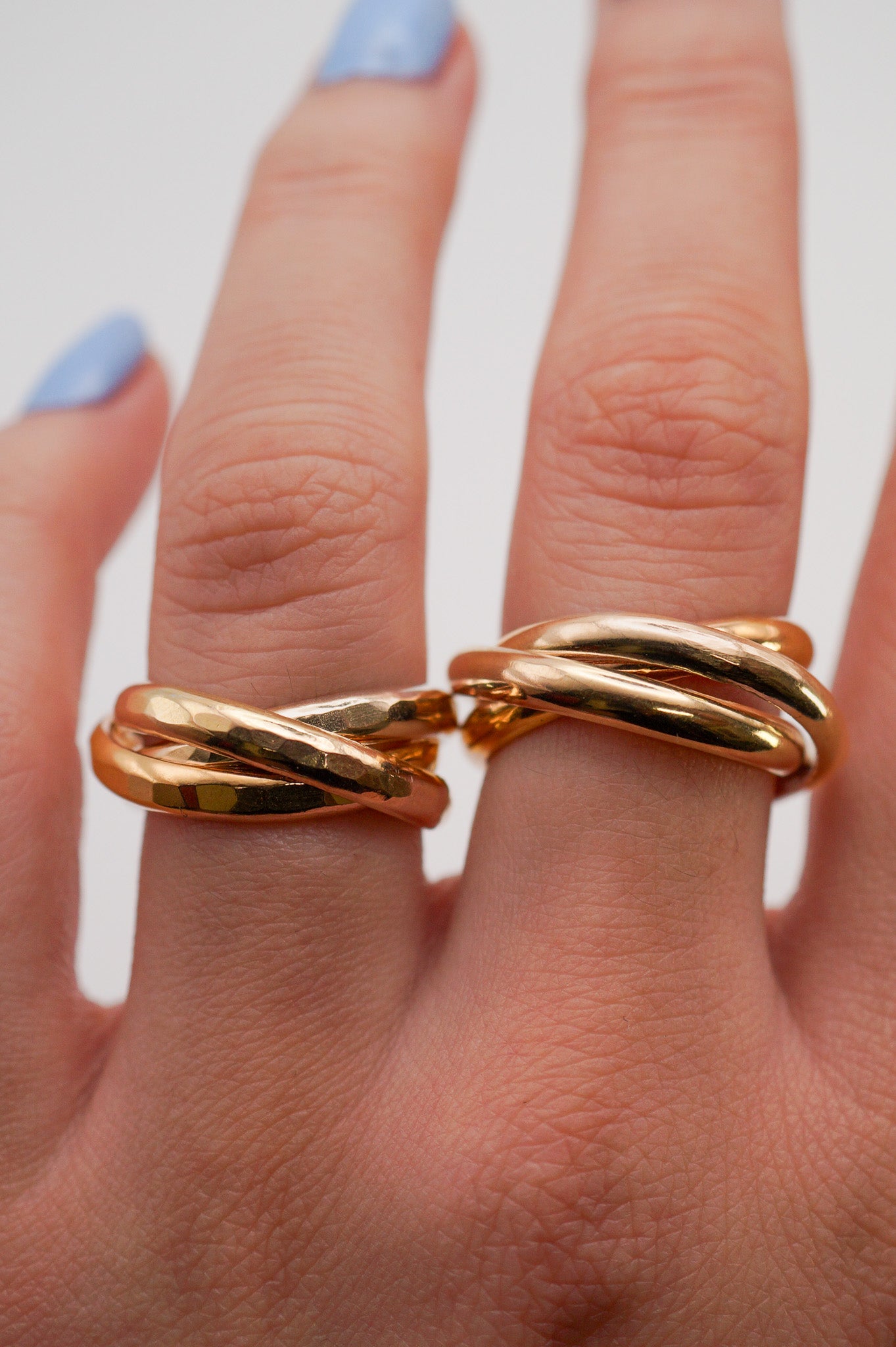 The beauty of this ring lies in its organic shape. This ring will look slightly different from every angle. We are so excited about this new addition to the Interlocking Ring collection - also known as rolling rings. Shop more here!