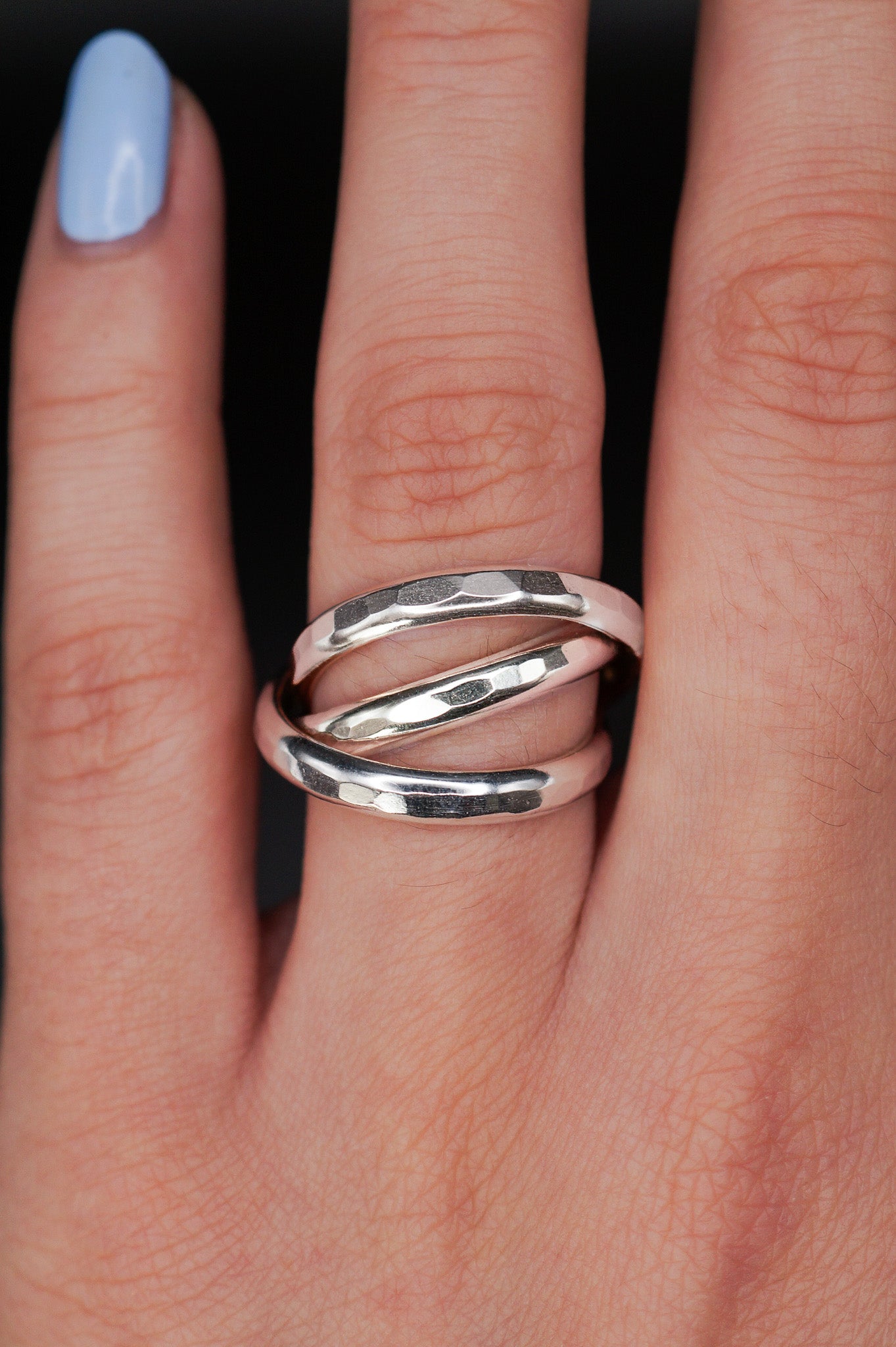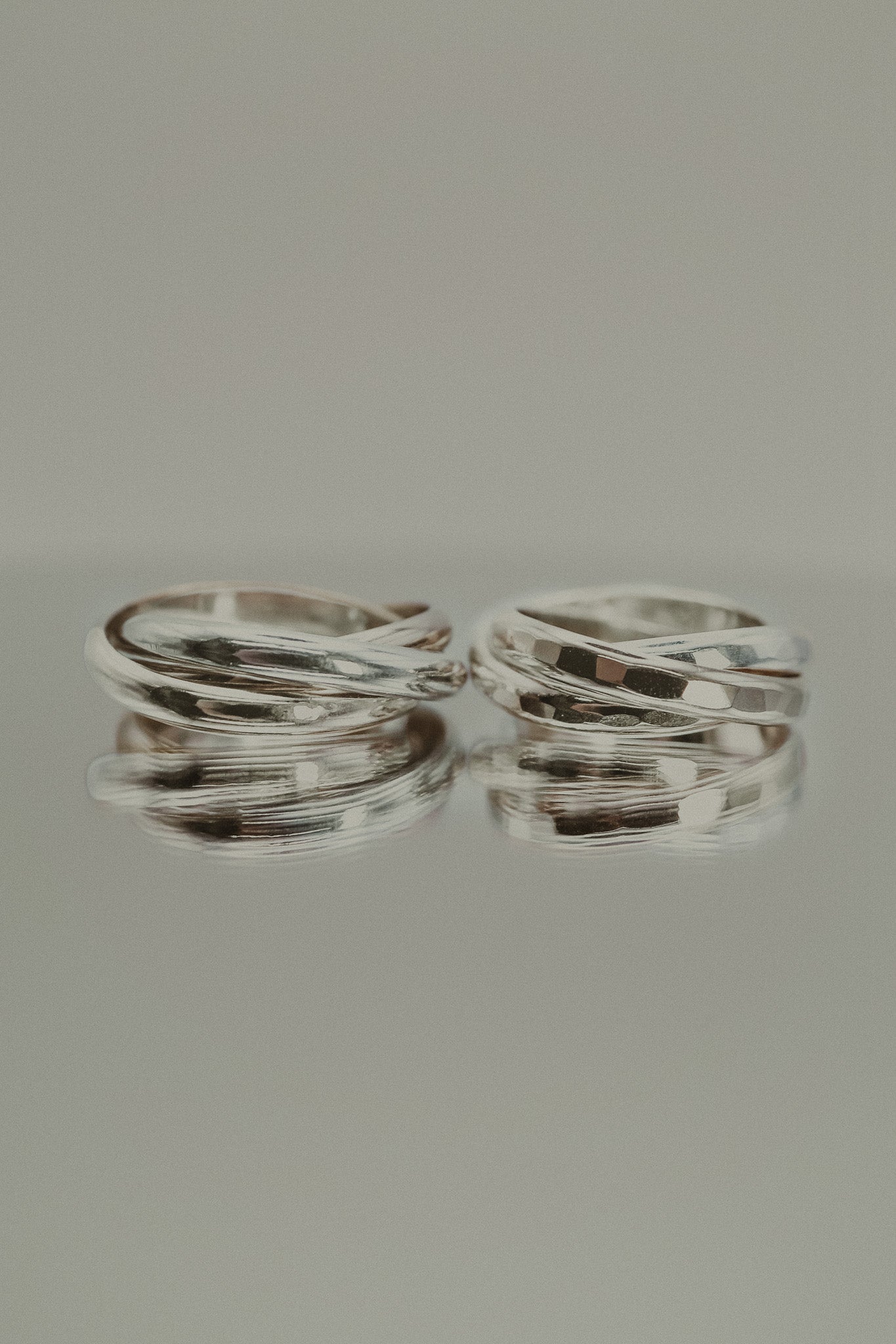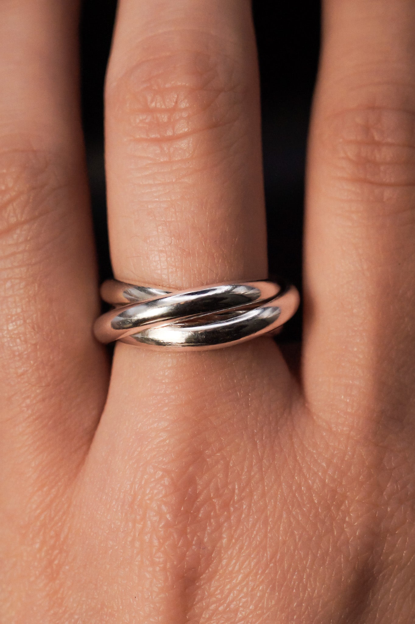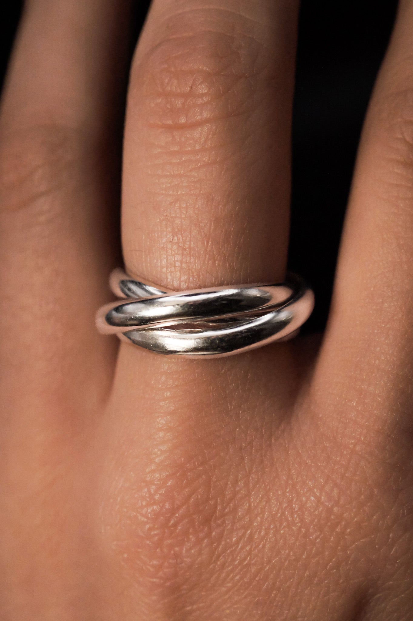 The beauty of this ring lies in its organic shape. This ring will look slightly different from every angle. We are so excited about this new addition to the Interlocking Ring collection - also known as rolling rings. Shop more here!