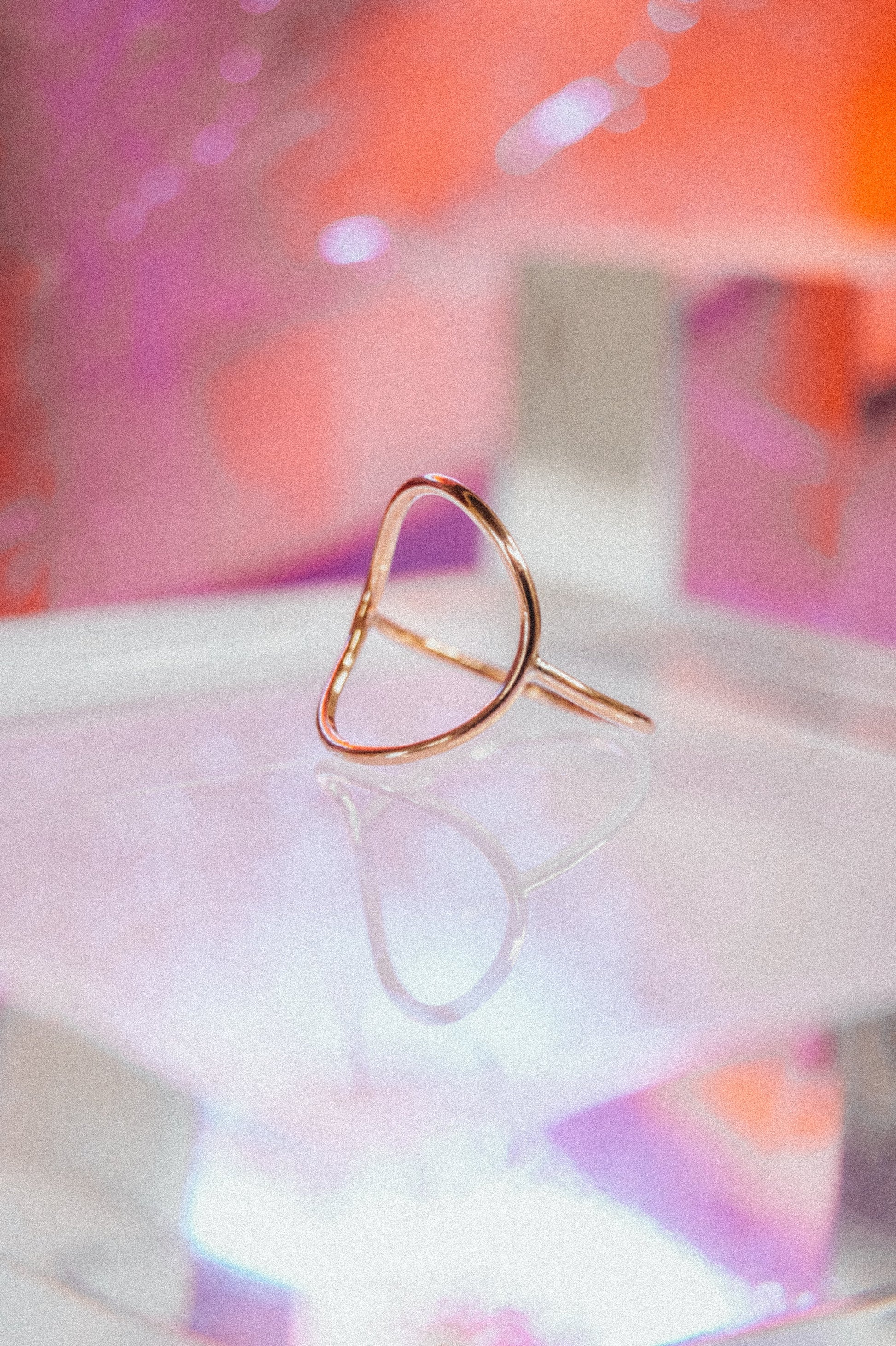A playful, lightweight ring perfect for stacking or wearing solo. This ring features an organic hand formed circular shape, making each piece one of a kind. Available in multiple styles and finishes, it’s a versatile everyday piece that also makes a super cute thumb ring. Handmade with care, it can even be paired with other stacking rings for a layered look.