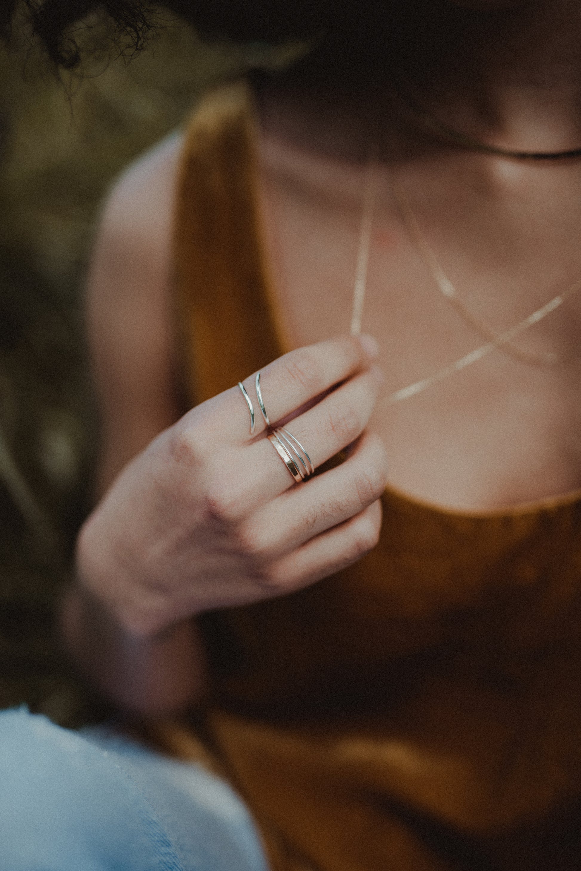 This ring is perfect if you’re looking for the look of individual stacking rings without having them shift. We securely solder 3 individual rings together at one point to permanently connect them in place. This ring gives you the look of individual rings evenly spaced out across your finger.