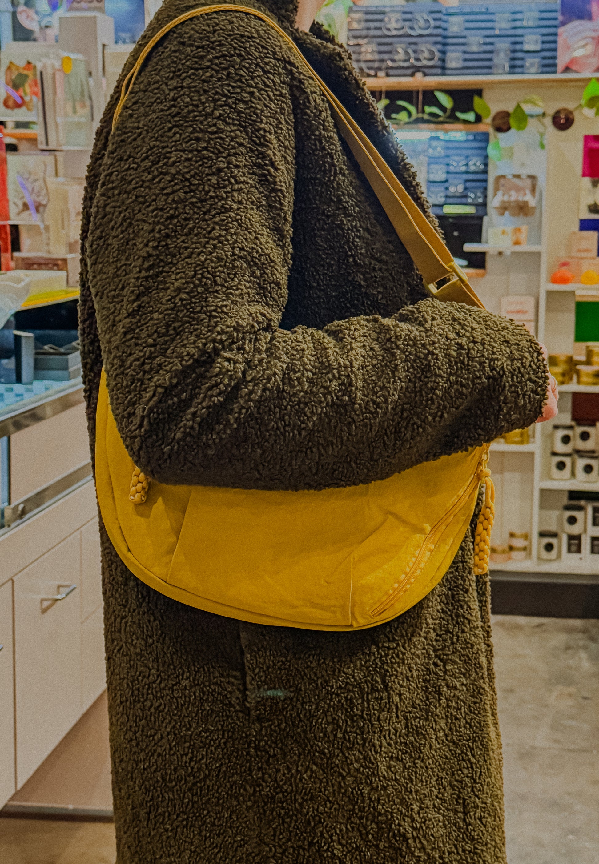 Carry your world in style with this cheerful mustard crossbody bag! Available in two sizes and crafted with durability in mind, it features a smooth nylon lining and dependable zipper closure to keep your essentials safe. Multiple interior pockets let you organize everything from your phone to your favorite lipstick, while the roomy design means you'll never leave anything behind. Whether you're running errands or heading out for an adventure, this bag is your trusty companion that looks as good as it functions.