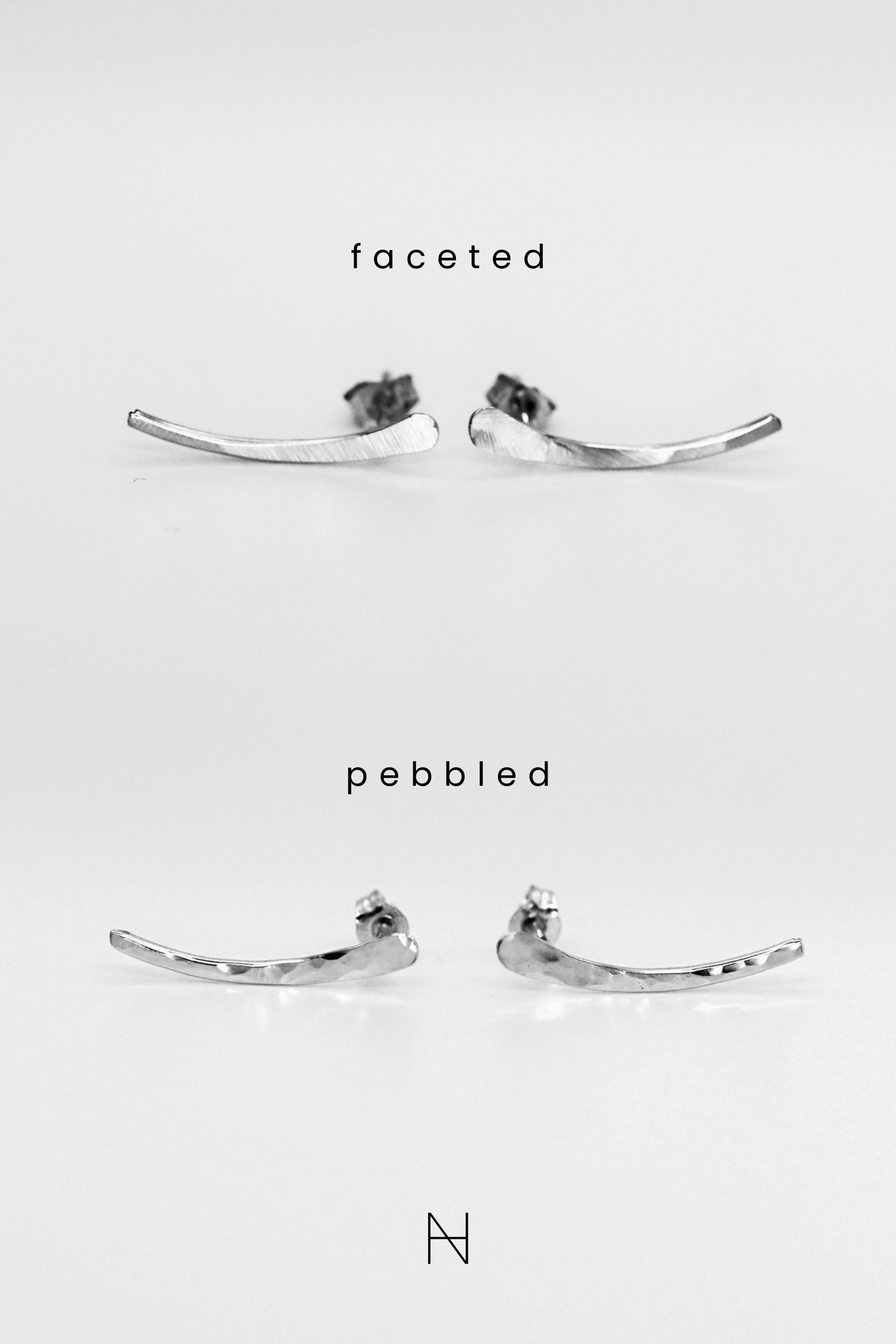 Choose from either FACETED for a reflective finish or PEBBLED for a textured finish. Choose ONE SINGLE CLIMBER (specify which ear) or a PAIR. Available in 14K Gold Fill, 14K Rose Gold Fill or Sterling Silver metal. |