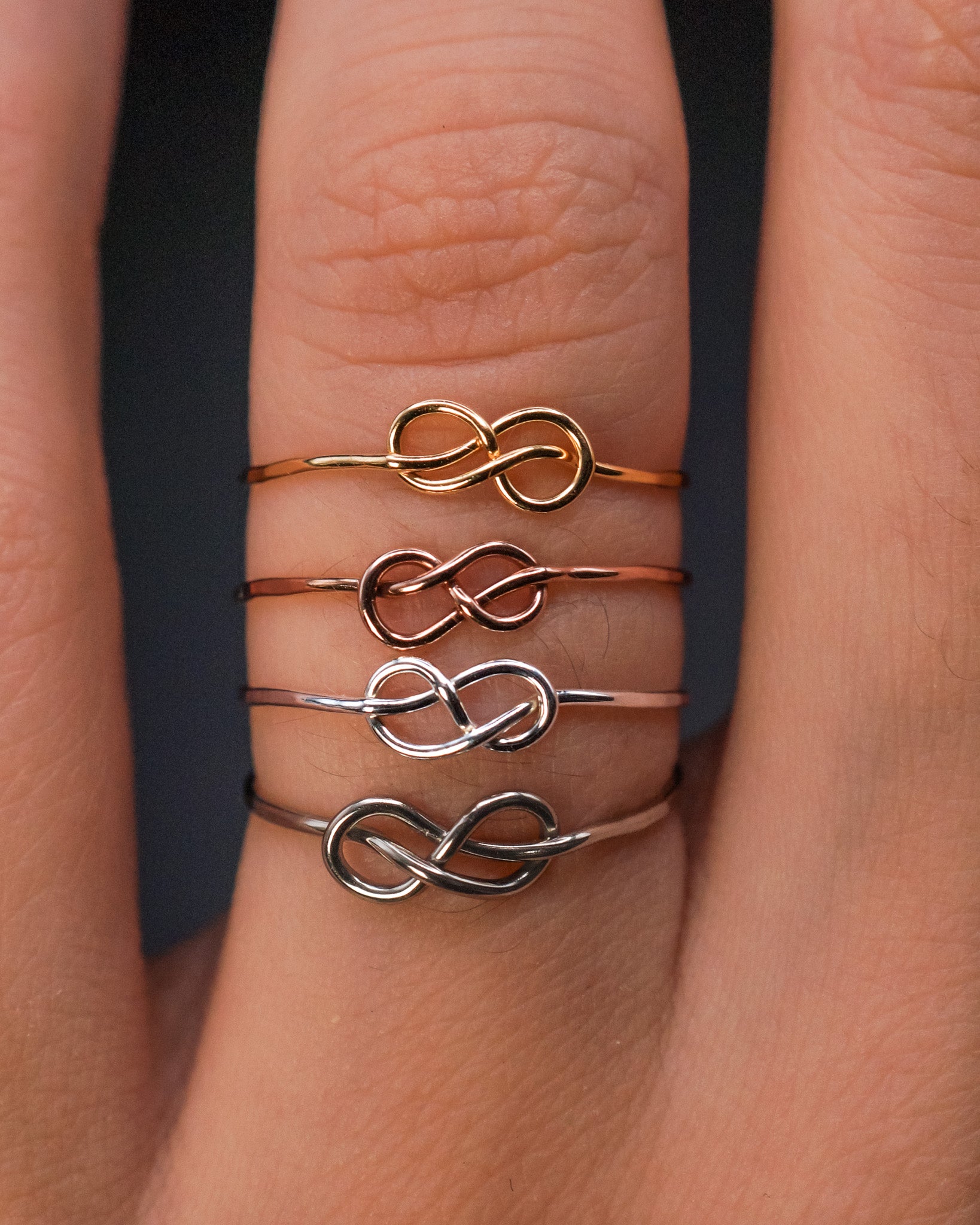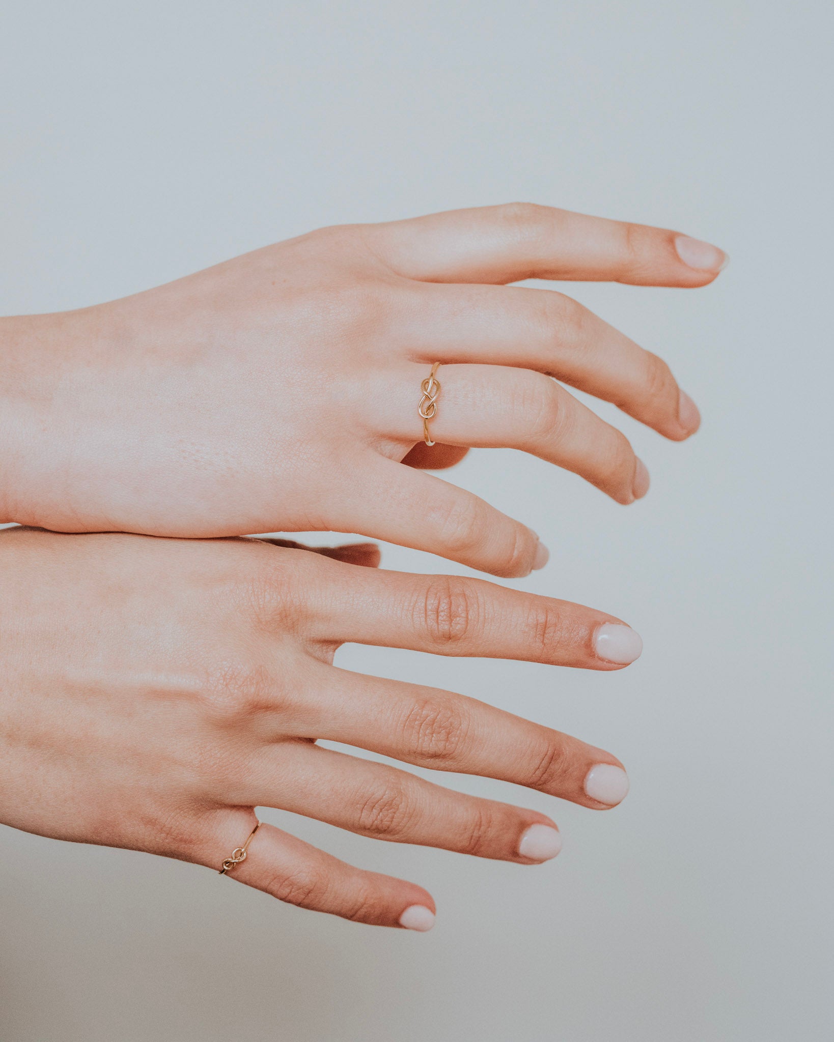 The Infinity Knot Ring is a meaningful symbol of connection, love, and forever. Featuring a delicate hand-formed infinity knot, this ring makes a thoughtful gift for partners, best friends, siblings—or anyone you want to stay linked with. Perfect as a friendship ring, a bridesmaid gift, or a stacking favorite, the Infinity Knot Ring is easy to wear every day and layers beautifully with other styles. Handmade to order in your custom size, so no two are ever exactly alike. A sweet and subtle way to celebrate lasting bonds—whether you're matching with loved ones or wearing it solo.