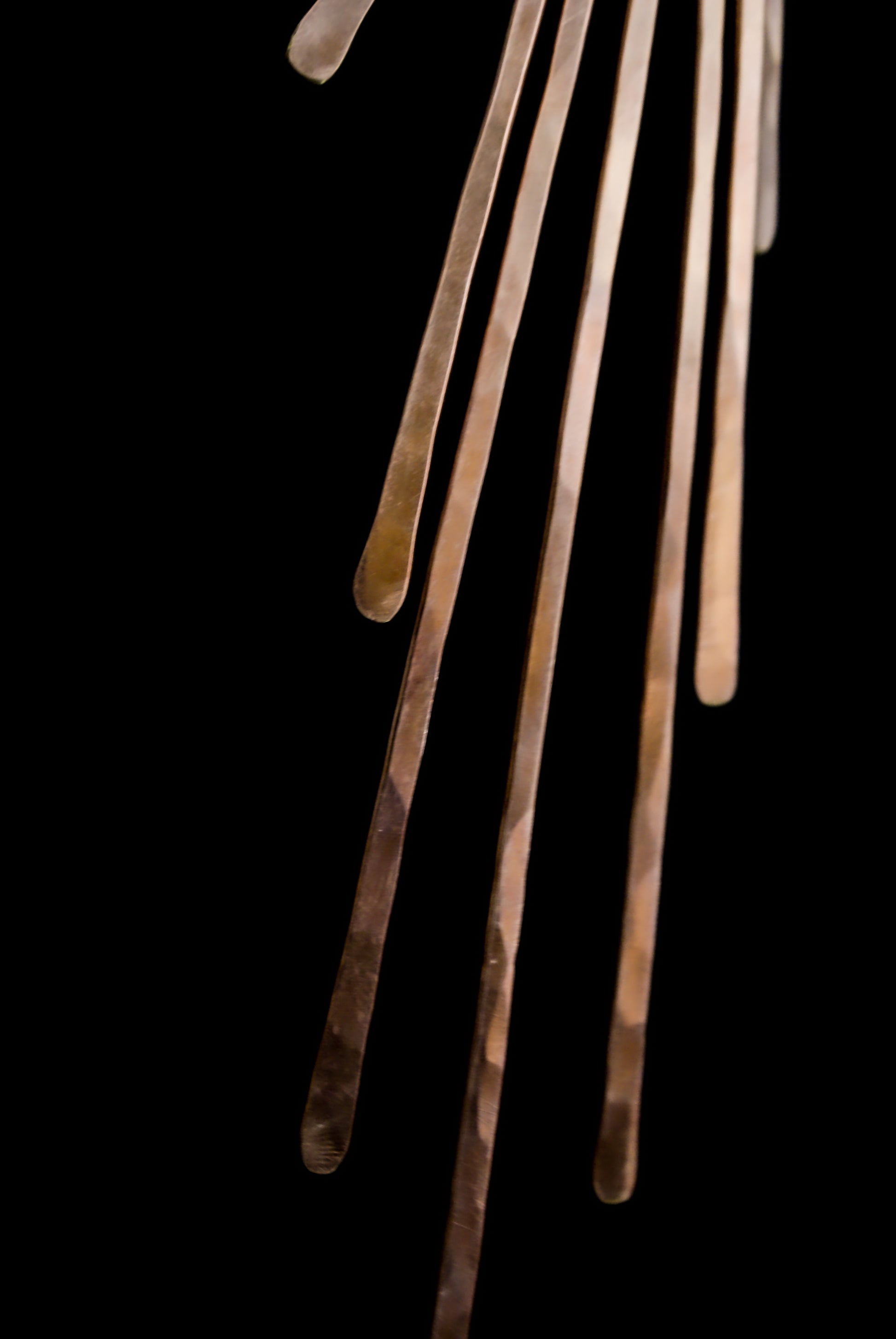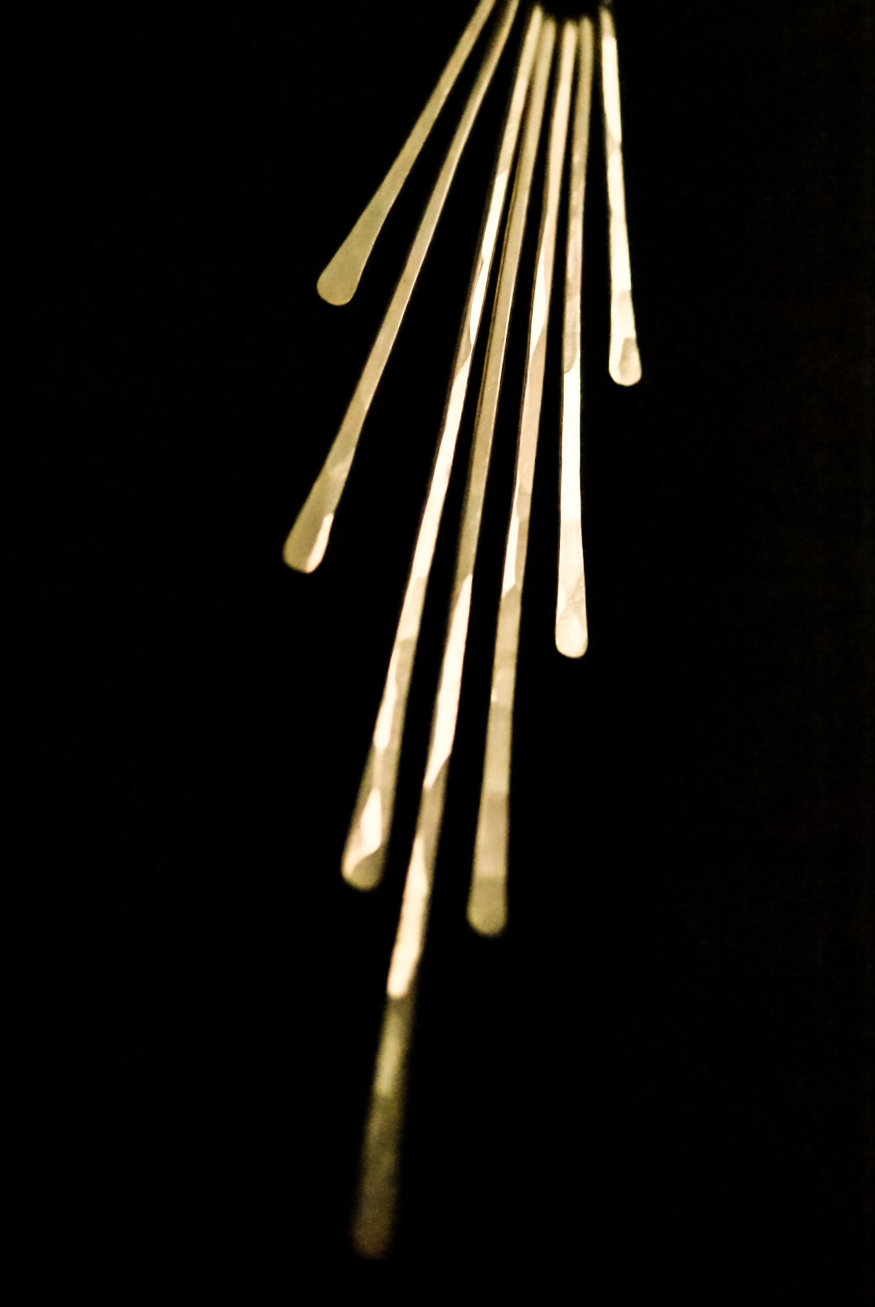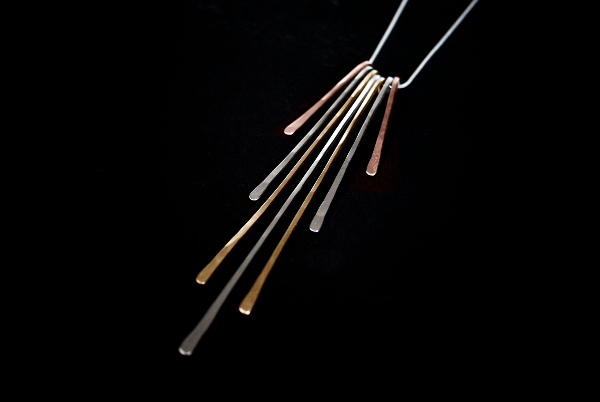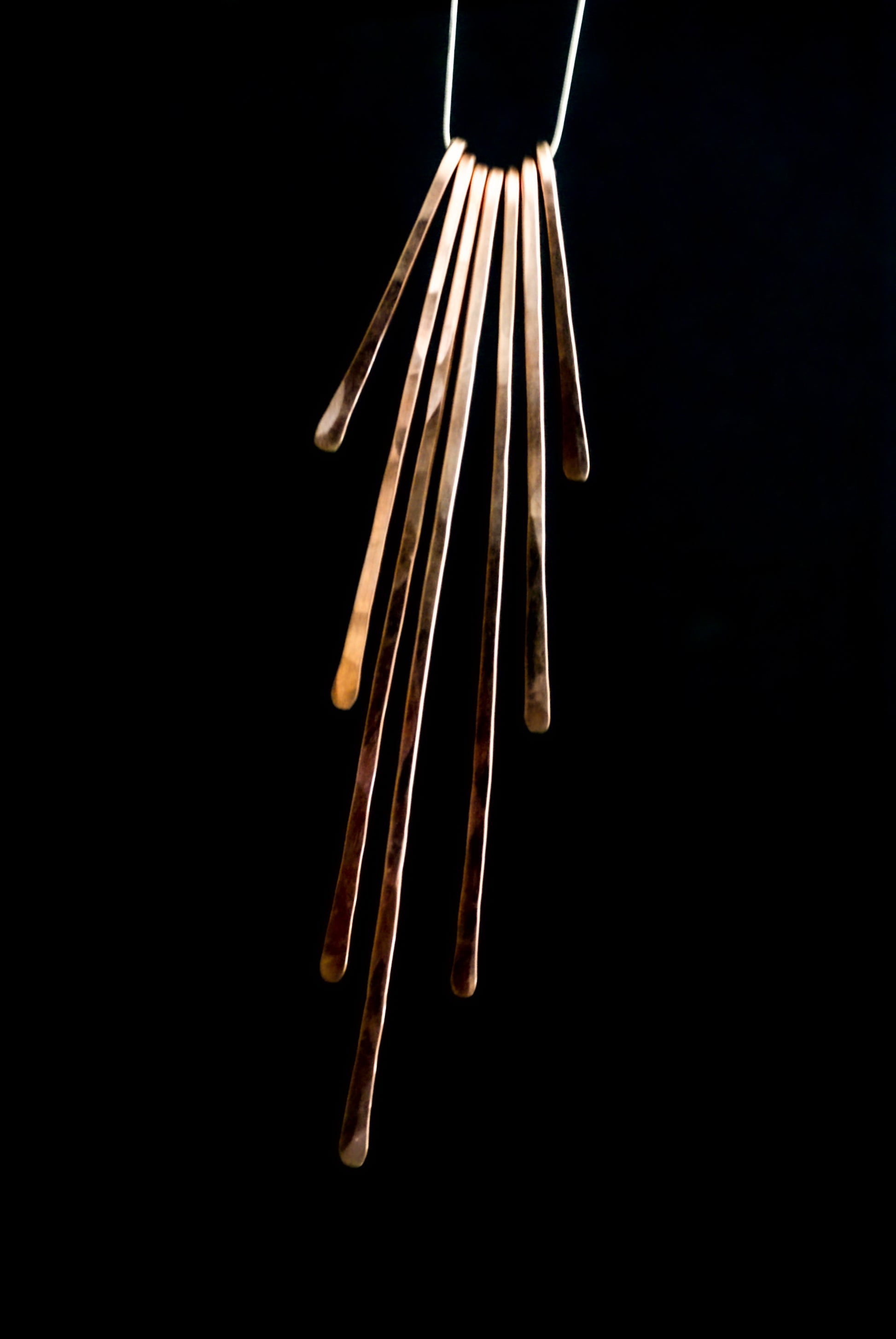 This gorgeous necklace is a show-stopper! The design is simple but the effect is dramatic. The Sunburst Necklace is the original addition to the Sunburst Collection. To make this design, we hammer seven individual strips of thick metal into their unique shapes and string them together to create one eye-catching piece.