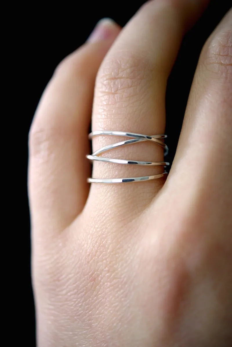 A large version of our classic Wraparound Ring. This is a four-loop version of our popular Wraparound ring! This ring makes a gorgeous, delicate and minimalist cocktail ring.