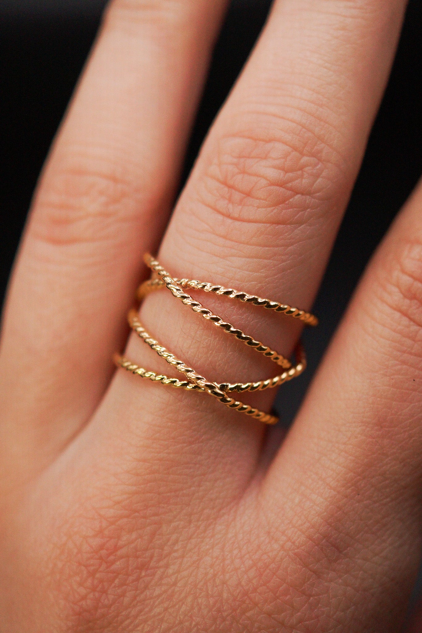 Discover a bold reimagining of the classic wraparound ring! This stunning statement piece features intricately twisted metal, wrapped four times for a distinctive, layered effect. Carefully crafted for seamless design, this ring ensures both style and comfort. The twisted detail catches the light beautifully, offering an eye-catching texture that's as unique as you are.