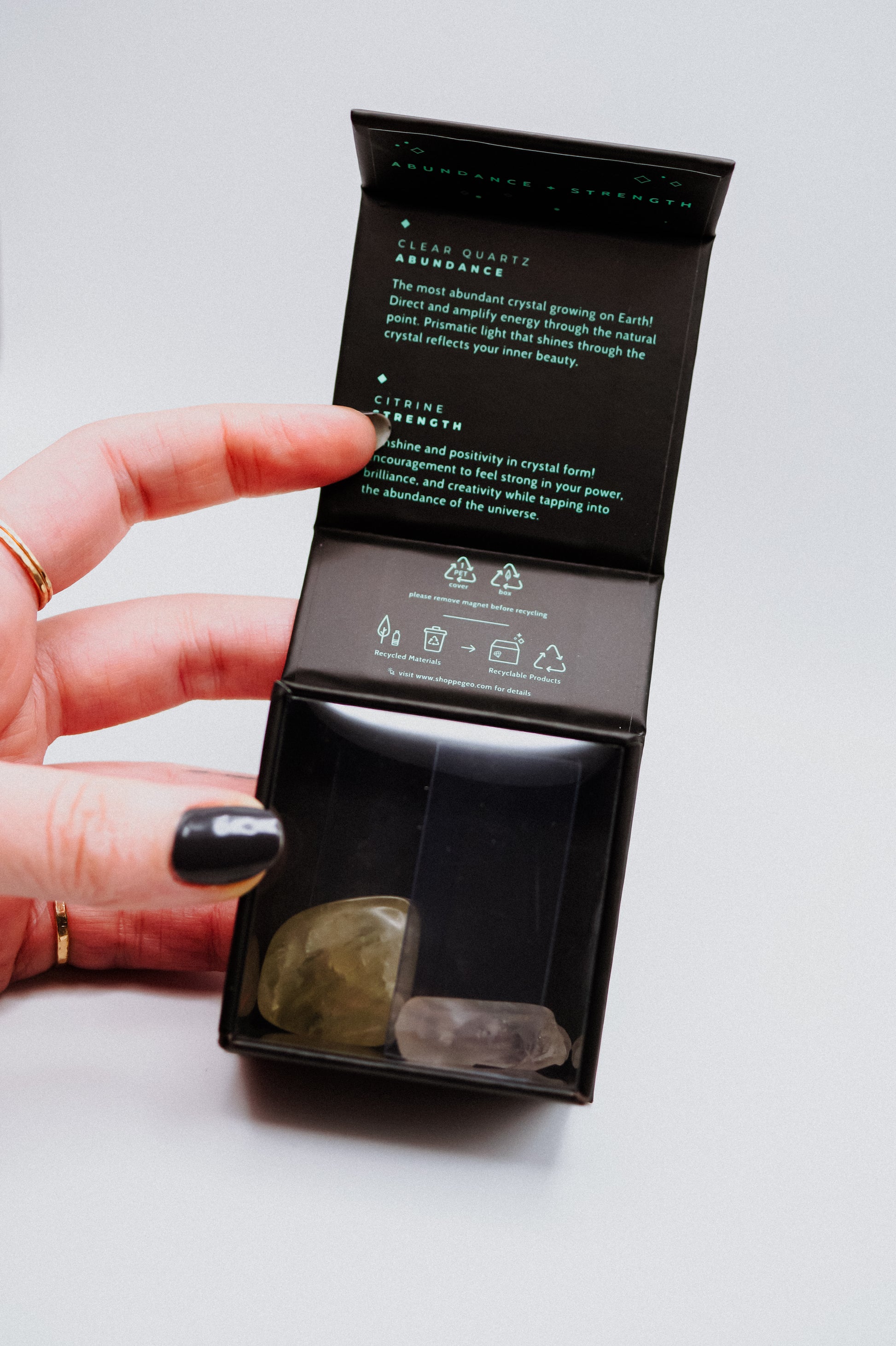 Spark abundance and inner strength with this dynamic duo of genuine crystals. Your set includes a gleaming polished citrine and a natural clear quartz point (each .75"-1"), plus an informative guide to their empowering properties and intentions. Perfectly sized for pockets, altars, or desks, this gem pairing makes an ideal stocking stuffer, birthday surprise, or party favor. Bonus: our eco-conscious packaging is fully recyclable, complete with details about the product's life cycle so you can feel good about every step of the journey.