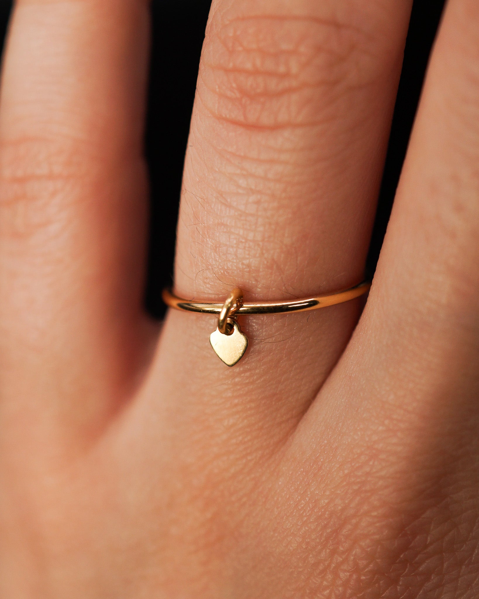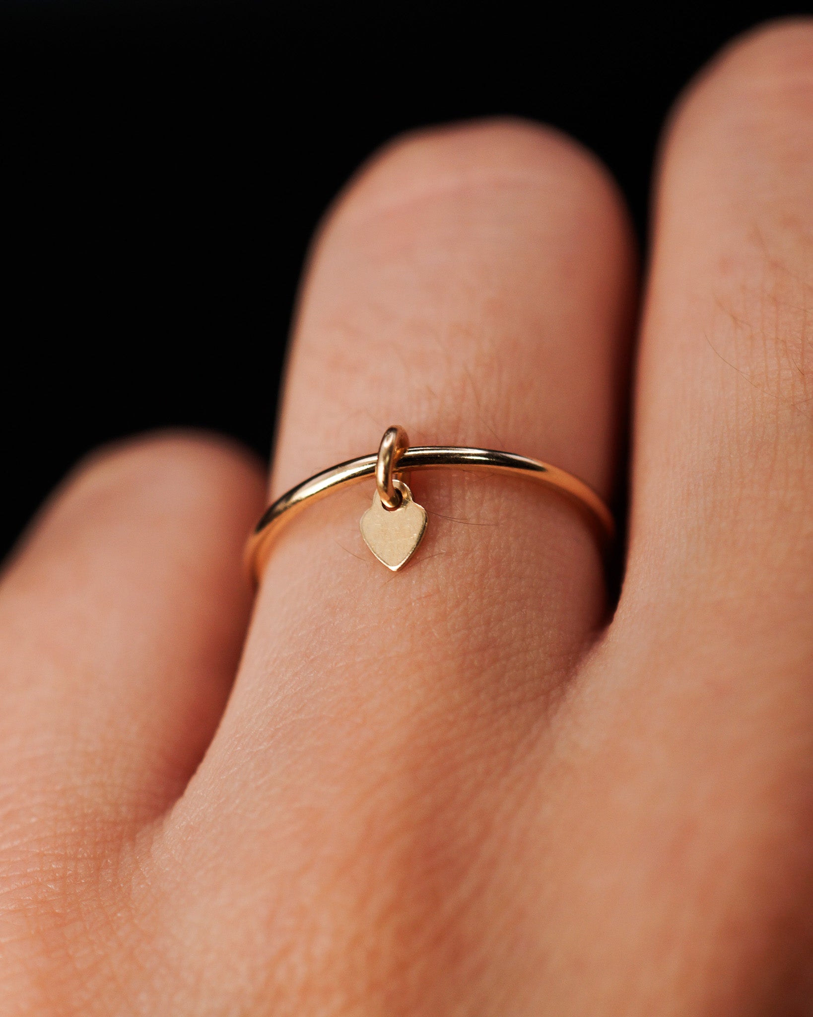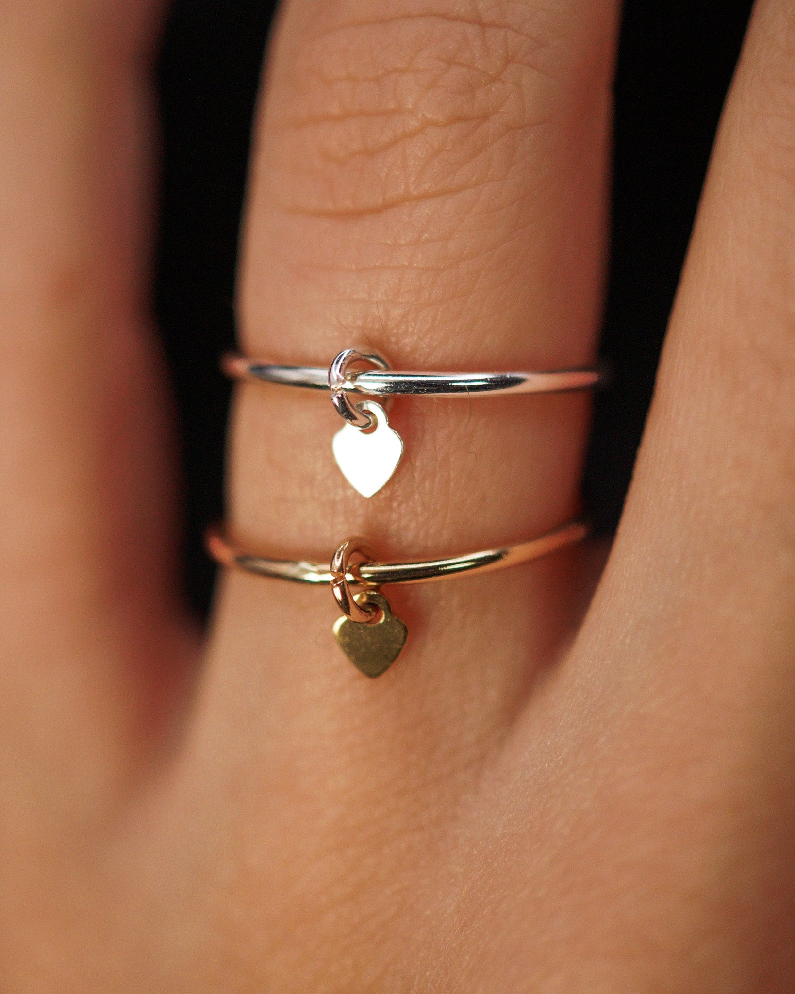 This listing is for ONE single Charm Ring made up of: 1x Thick, Smooth Ring in the size of your choice Tiny Heart Charm comes with an adjustable jump ring that is un-soldered so you can switch up your look day-to-day!Made from 14K GOLD FILL or STERLING SILVER metal. |