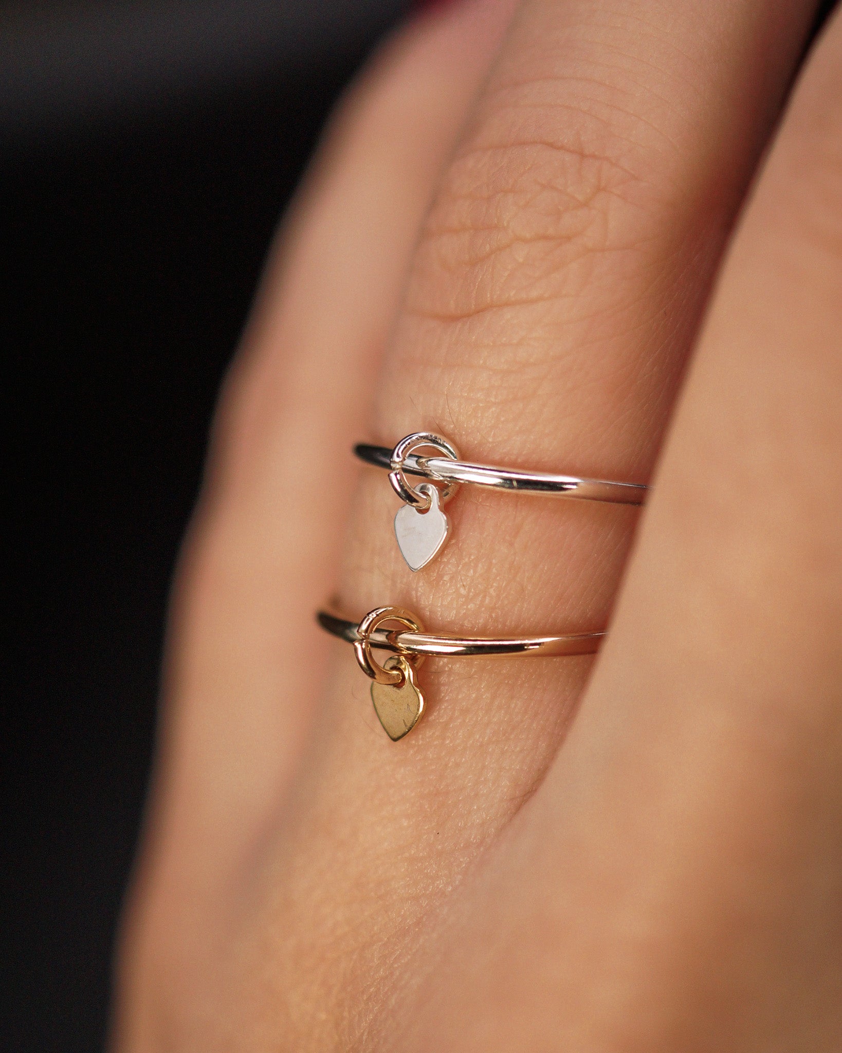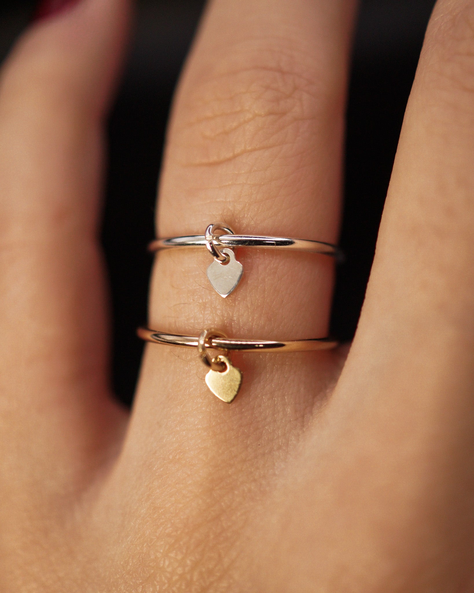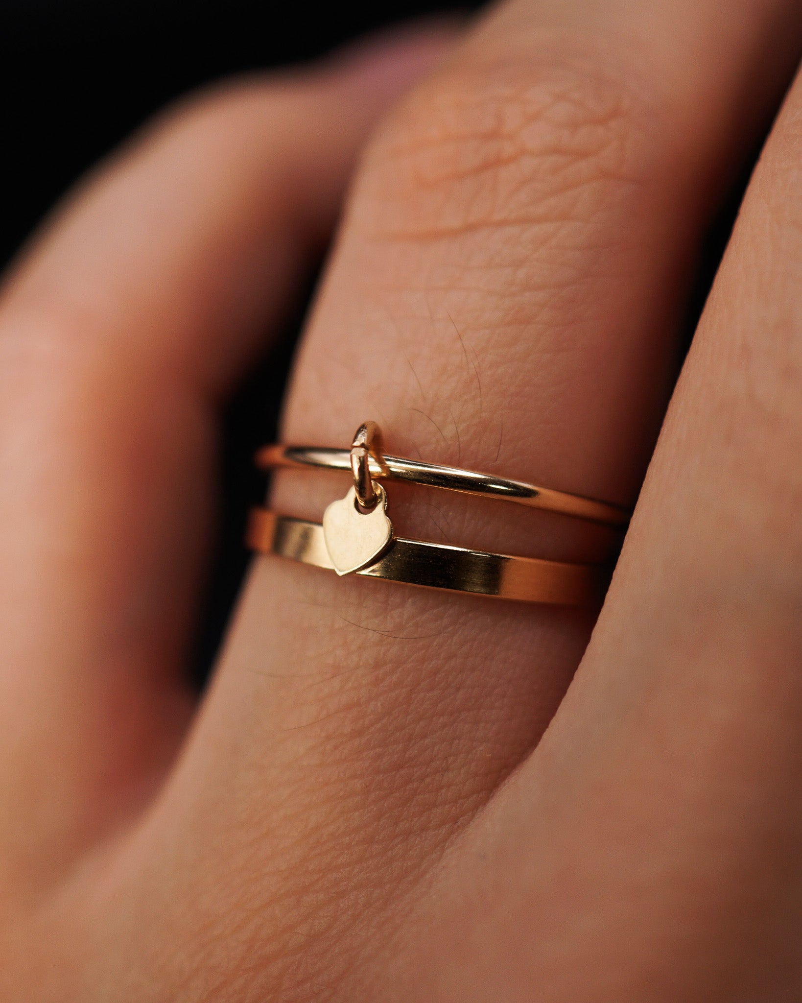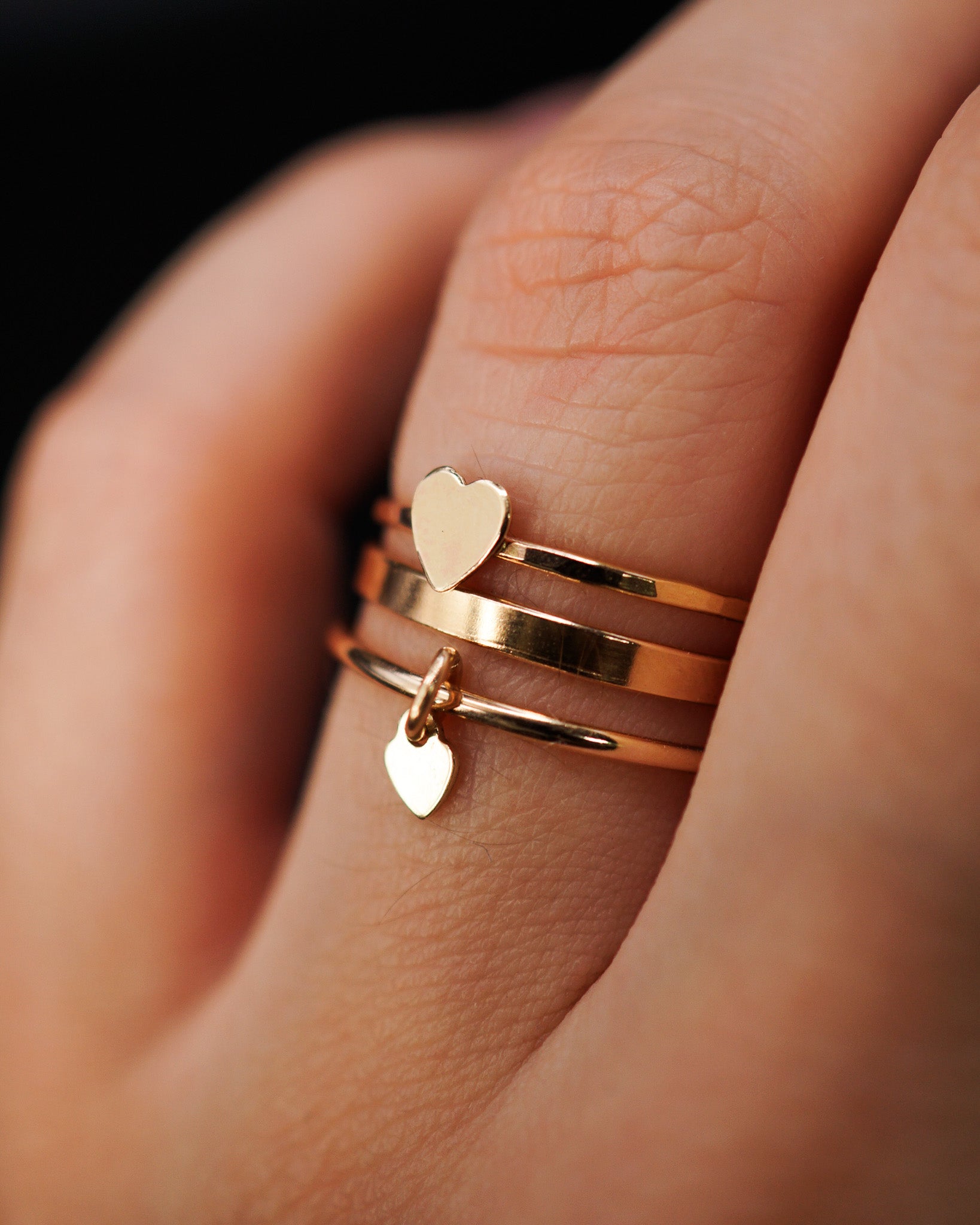 This listing is for ONE single Charm Ring made up of: 1x Thick, Smooth Ring in the size of your choice Tiny Heart Charm comes with an adjustable jump ring that is un-soldered so you can switch up your look day-to-day!Made from 14K GOLD FILL or STERLING SILVER metal. |