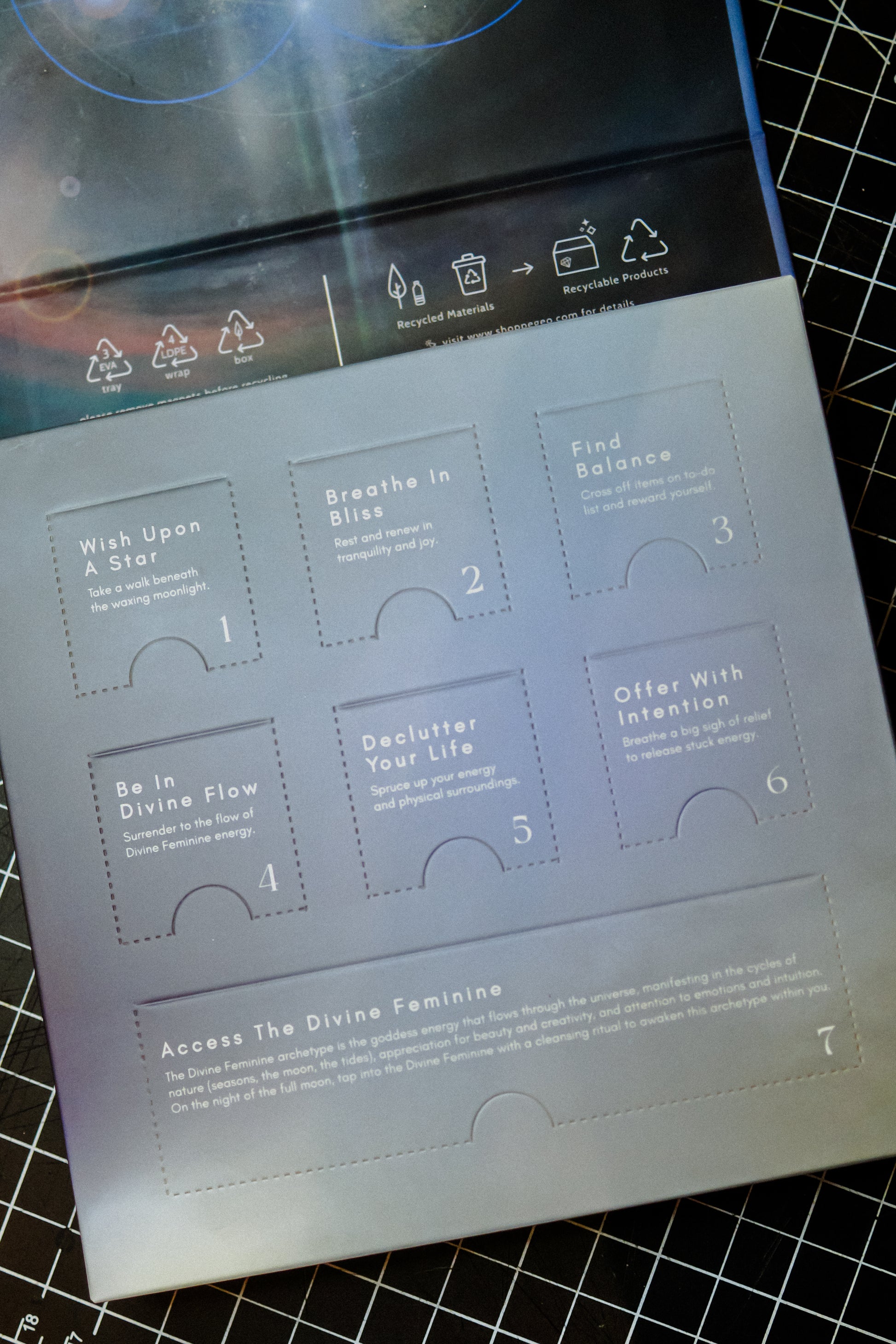 Harness the magic of the lunar cycle with this enchanting 7-day countdown experience. Each tab unveils moon-inspired rituals and crystal wisdom designed to amplify your connection with the full moon's transformative energy. The inner cover features captivating cosmic artwork to guide your meditation practice and deepen your bond with Divine Feminine power. Perfect for manifestation work and lunar rituals, this kit celebrates the sacred dance between earth and sky, helping you ride the waves of celestial shifts with intention and grace.