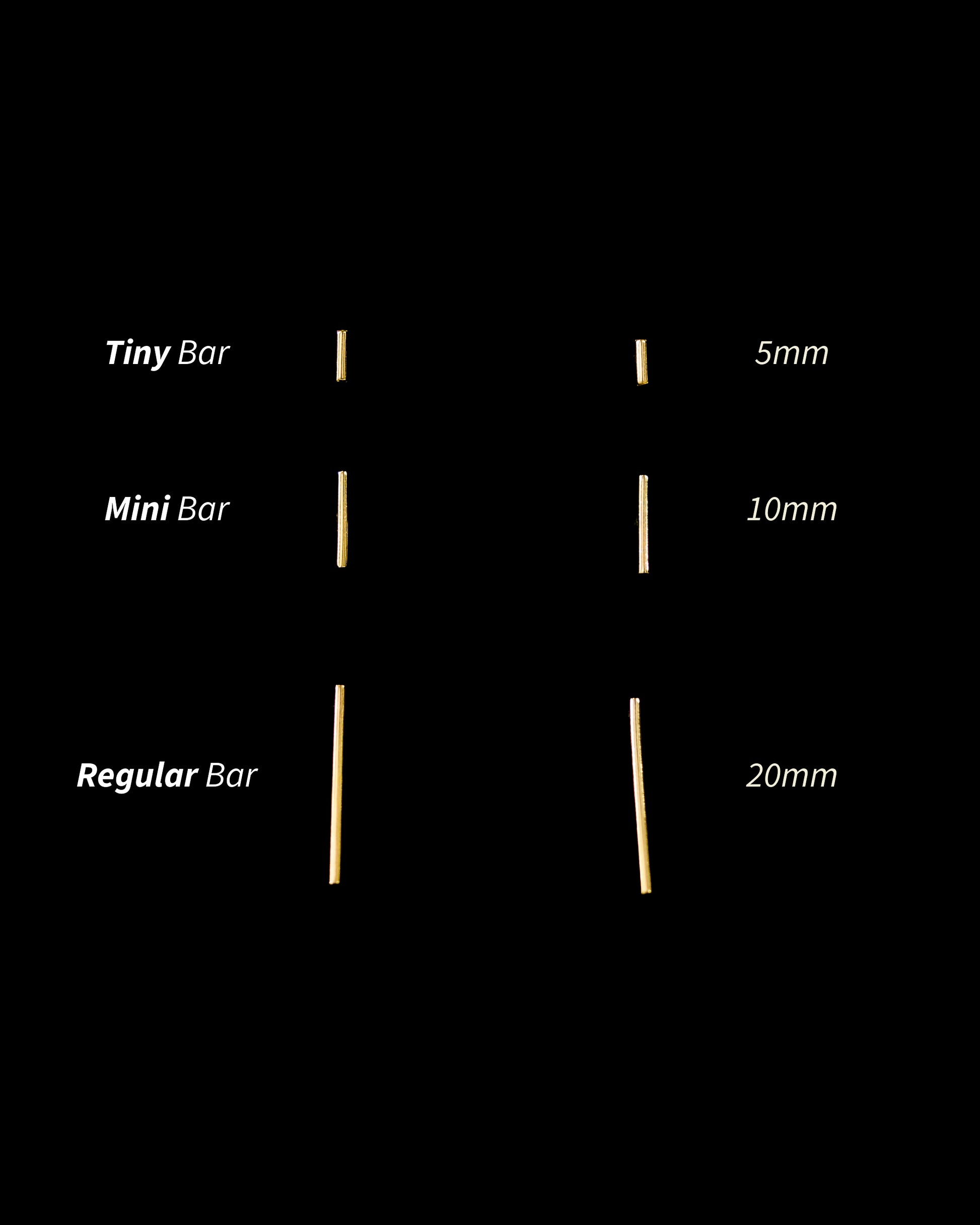 This listing is for either a PAIR or SINGLE stud earring. This MINI Bar Stud size measures approximately 10mm in length. These studs come in 14K GOLD FILL, 14K ROSE GOLD FILL, or STERLING SILVER. They have a classic ear nut backing. |