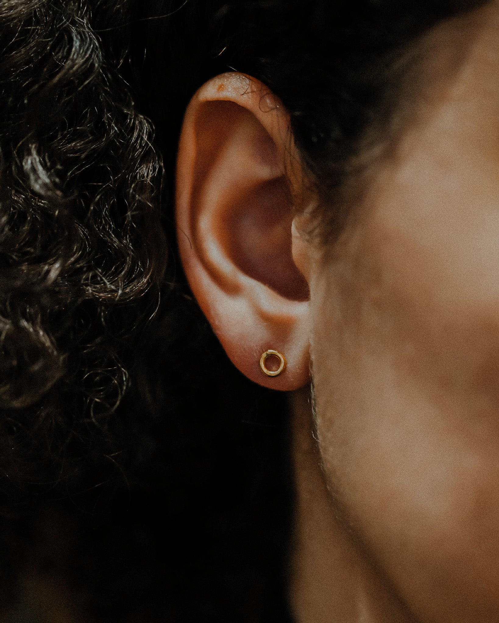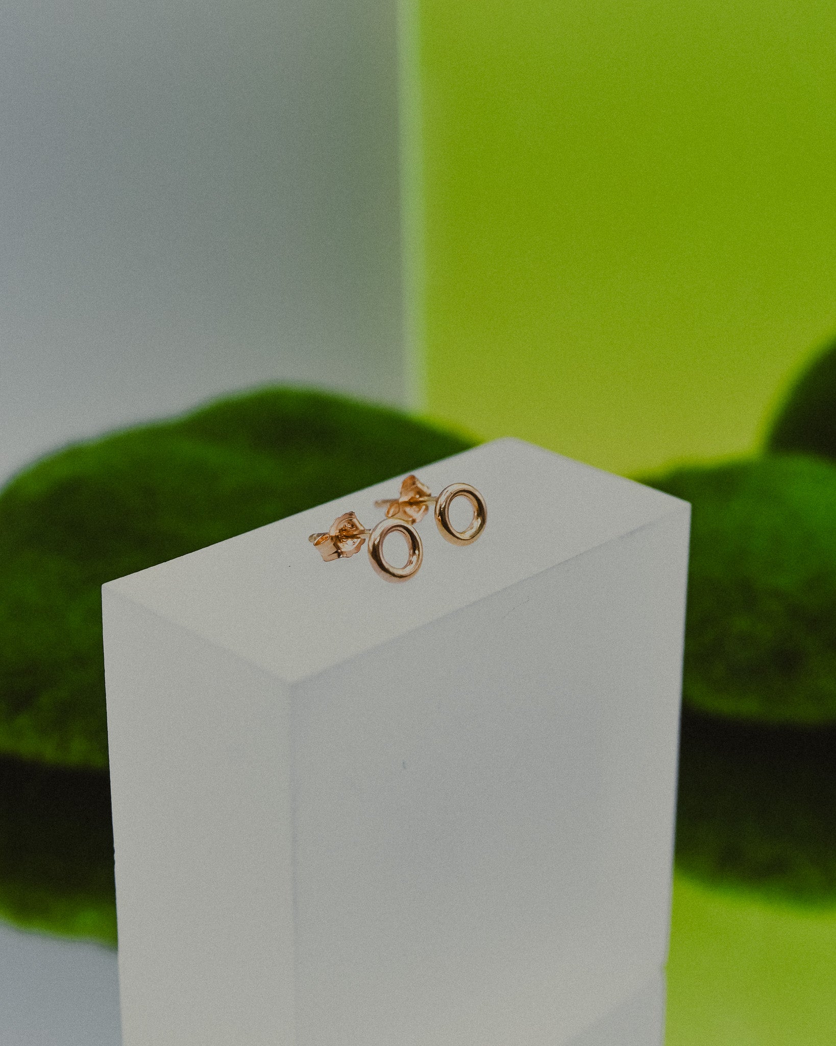 Mini Open Circle Stud Earrings in Solid Gold or Rose Gold