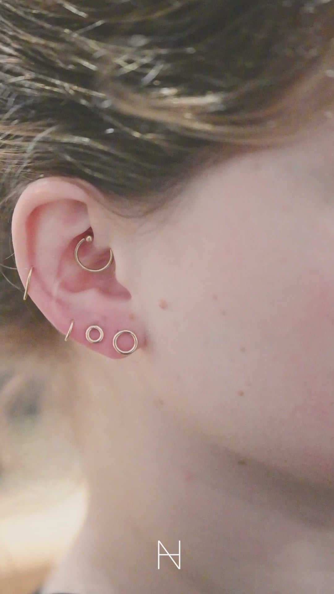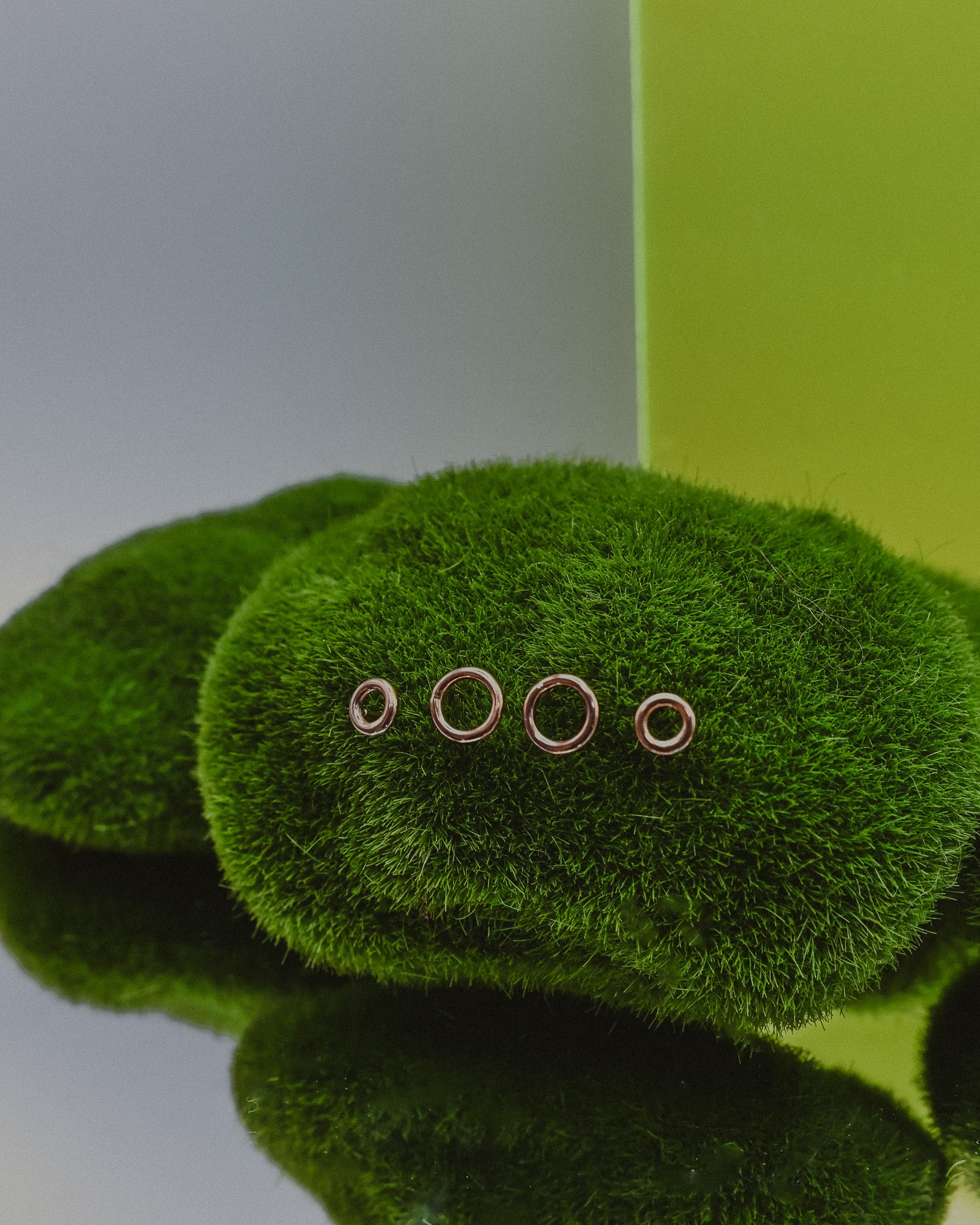 This MINI size measures around 3mm in diameter. Choose from Solid 14K Gold or Rose Gold. ROSE GOLD NOTE: To ensure all of our pieces are non-toxic, we use 10K Gold solder to connect the ring ends. It may differ slightly in color, but it's safer than any 14K Rose Gold solder that may contain cadmium. The solder marks might appear more yellow on each ring, but here at HN, we deeply care about your safety and the quality of our jewelry. |