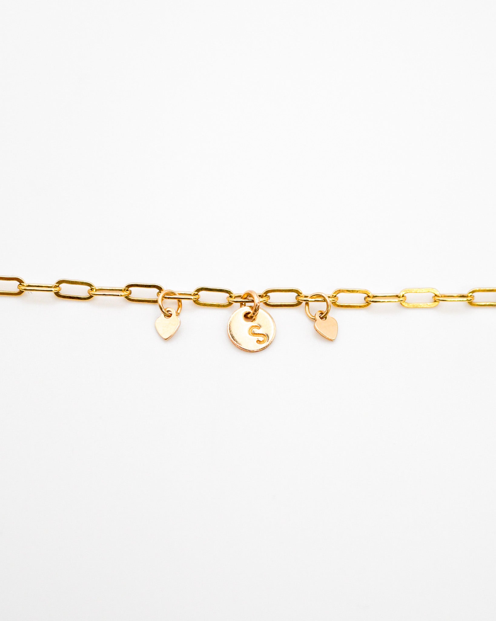 Monogram Charm Bracelet With Hearts, 14K Gold Fill