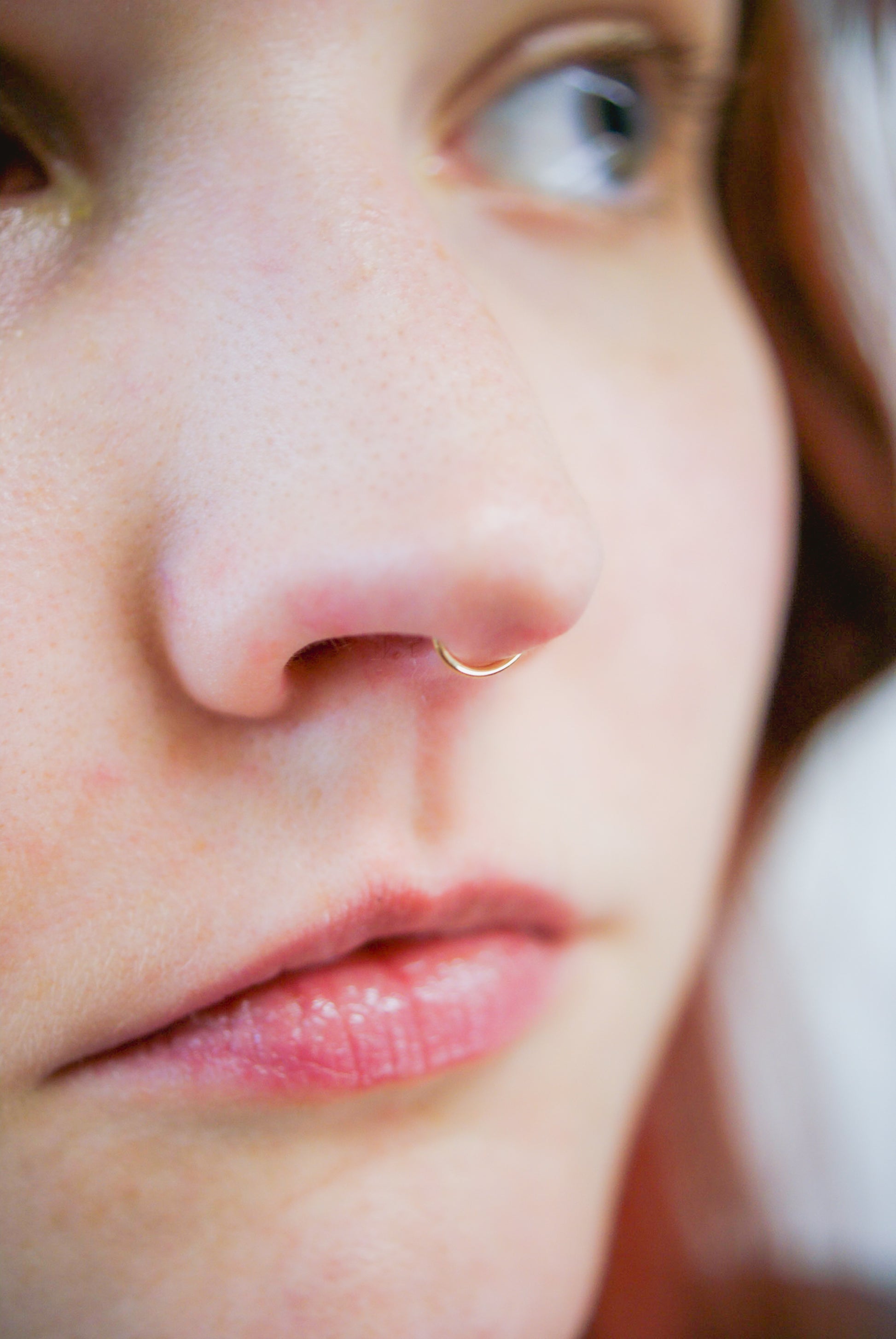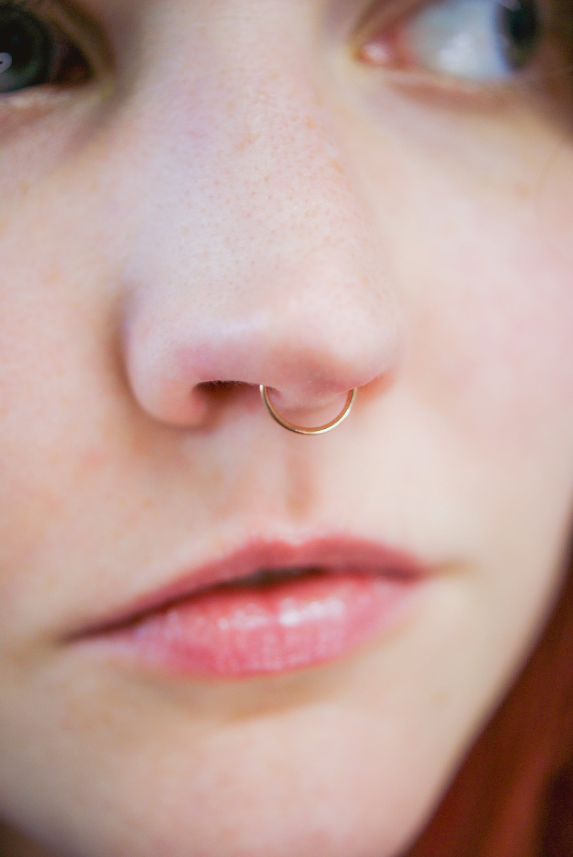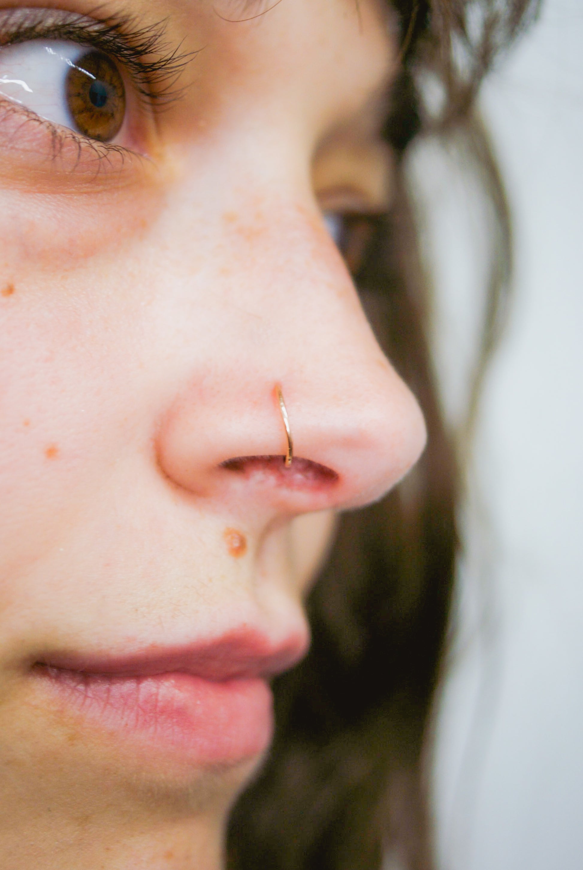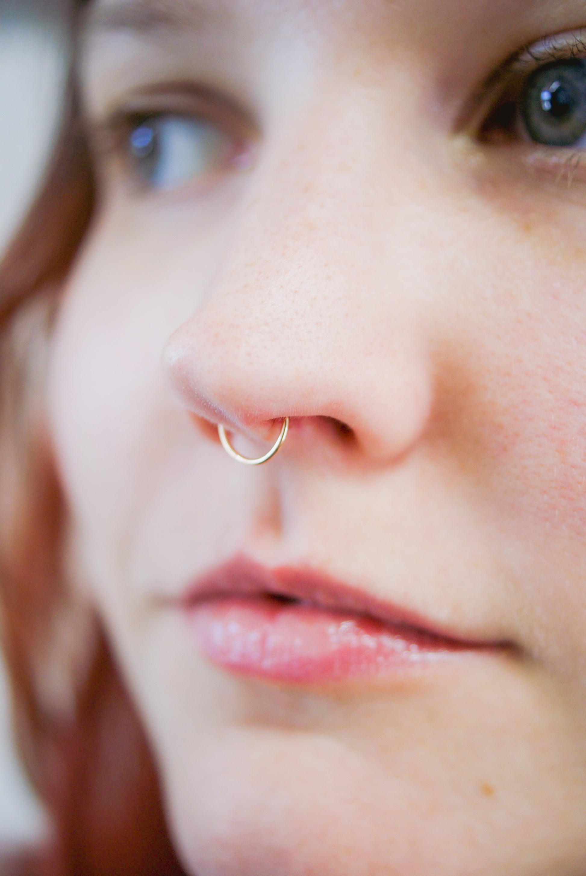 Nose or Lip Ring Huggie Hoop in Solid Gold, Rose Gold or White Gold