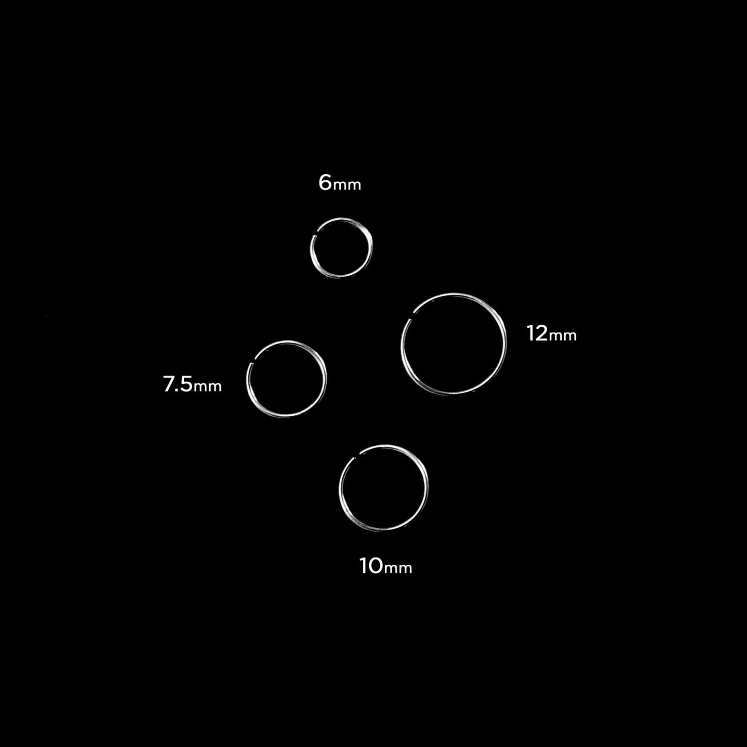 FOR SEPTUM/LIP RINGS we recommend 6mm, 7.5mm, or 10mm. FOR NOSTRIL RINGS we recommend 7.5mm, 10mm, or 12mm. This listing is for one SINGLE hoop.