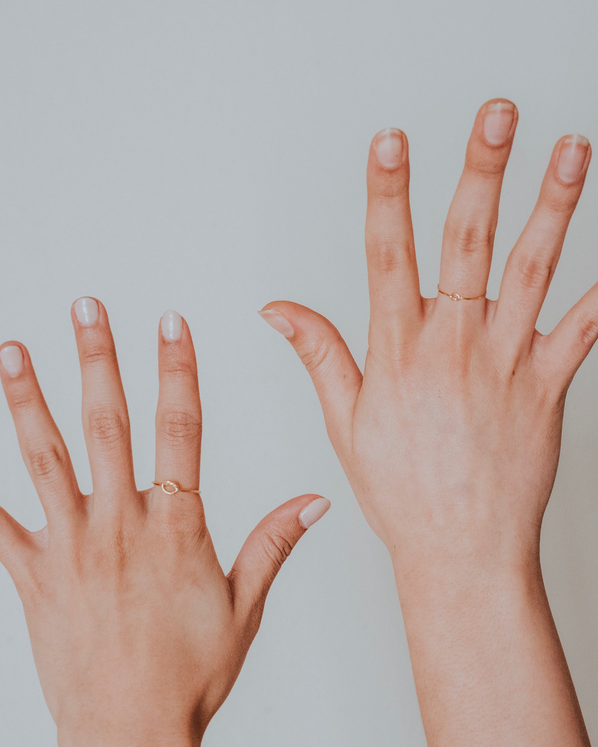 JEWELRY CARE: These rings are beautifully delicate yet perfect for daily wear. To keep them in great condition for years, we recommend removing them before working out or doing strenuous tasks with your hands. Ensuring the right fit also helps maintain their durability and comfort. *If you work with your hands often or would prefer a thicker, more durable version we recommend opting for the Thick version!
