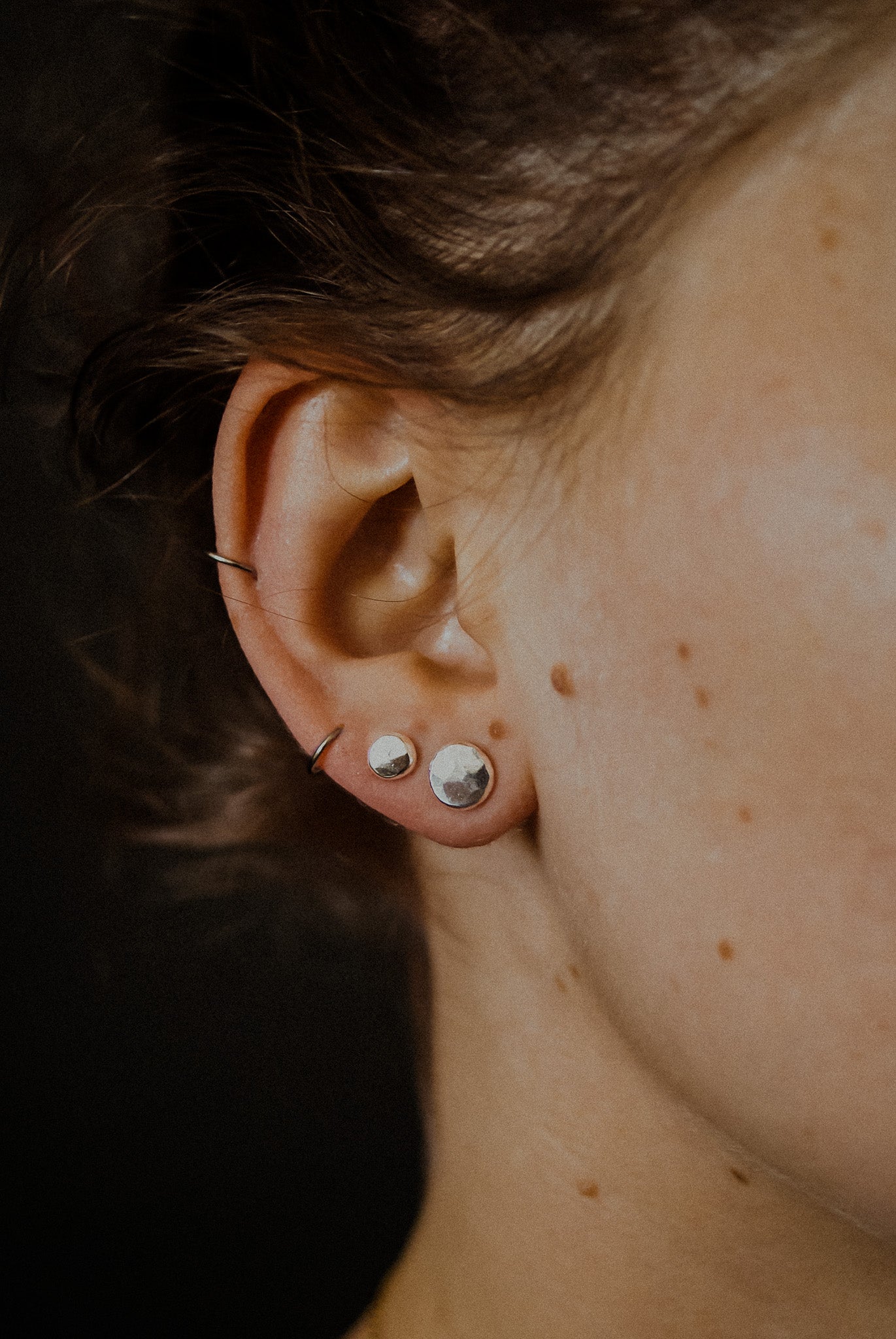 Choose from MINI or REGULAR version, and SINGLE STUD or PAIR OF STUDS at checkout. The MINI version measures approx. 5mm in diameter. The REGULAR version measures approx. 7mm in diameter. |