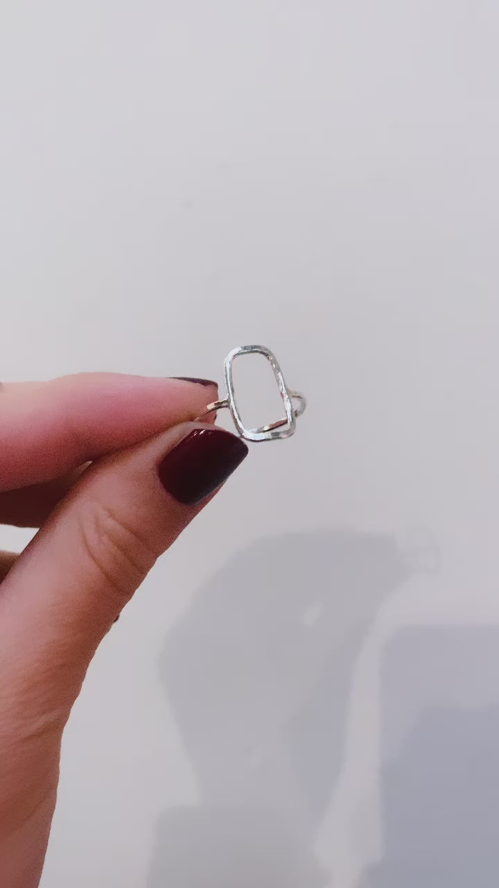 Minimal yet eye-catching, the Rectangle Ring brings a fresh take on geometric jewelry. Hand-formed into a soft, rounded rectangle, each ring features a lightly hammered texture that adds sparkle and organic character.