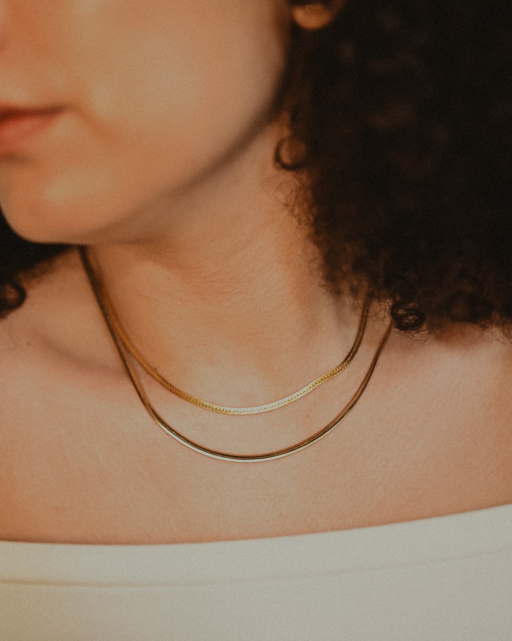 Elevate your everyday style with the Serpent Chain Necklace—a refined take on the classic herringbone or snake chain. Unisex in design, this versatile piece is a striking choice for both men and women. Its subtly 3-dimensional design adds depth and sophistication, while the 14K gold-filled finish imparts a radiant golden glow.