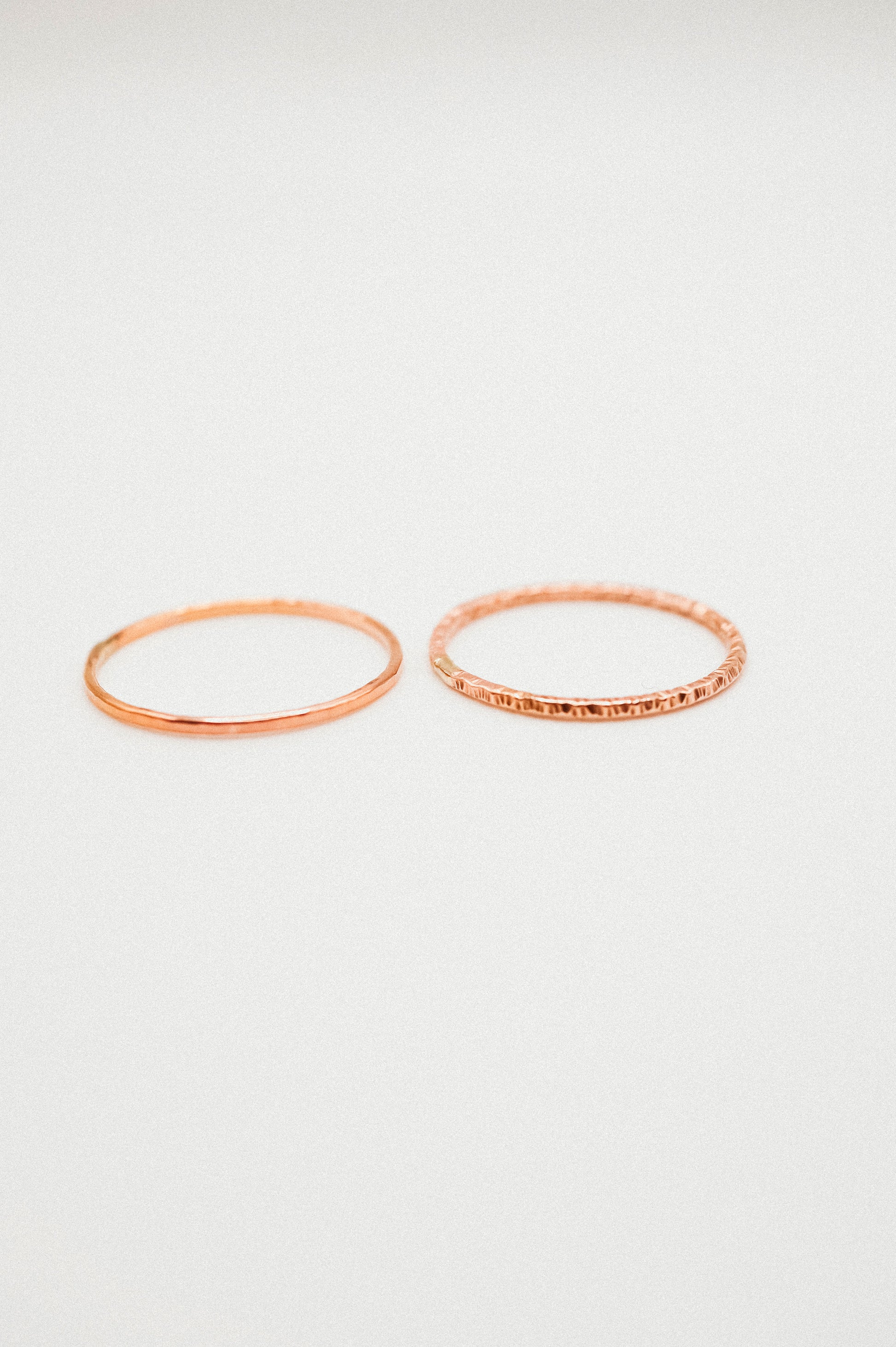 This listing is for a SET OF 2 individual rings made from 14K ROSE GOLD FILL metal. 1x Sparkle Ring: Each individual ring measures approx. 1.2mm in width. The ornate hammered texture adorns all sides of this 3-dimensional ring! 1x Medium Thick Ring in a Hammered Finish. (1mm thickness) We recommend the thicker version if you work more with your hands! :)The total width of this set is approximately 2.5mm - 3mm. Want to mix sizes to wear on different fingers? No extra charge! Just leave your preferred sizes in the “order notes” box at checkout for a customized fit and effortless styling. |
