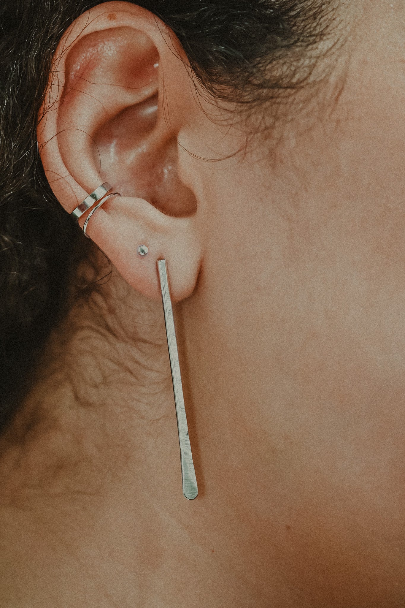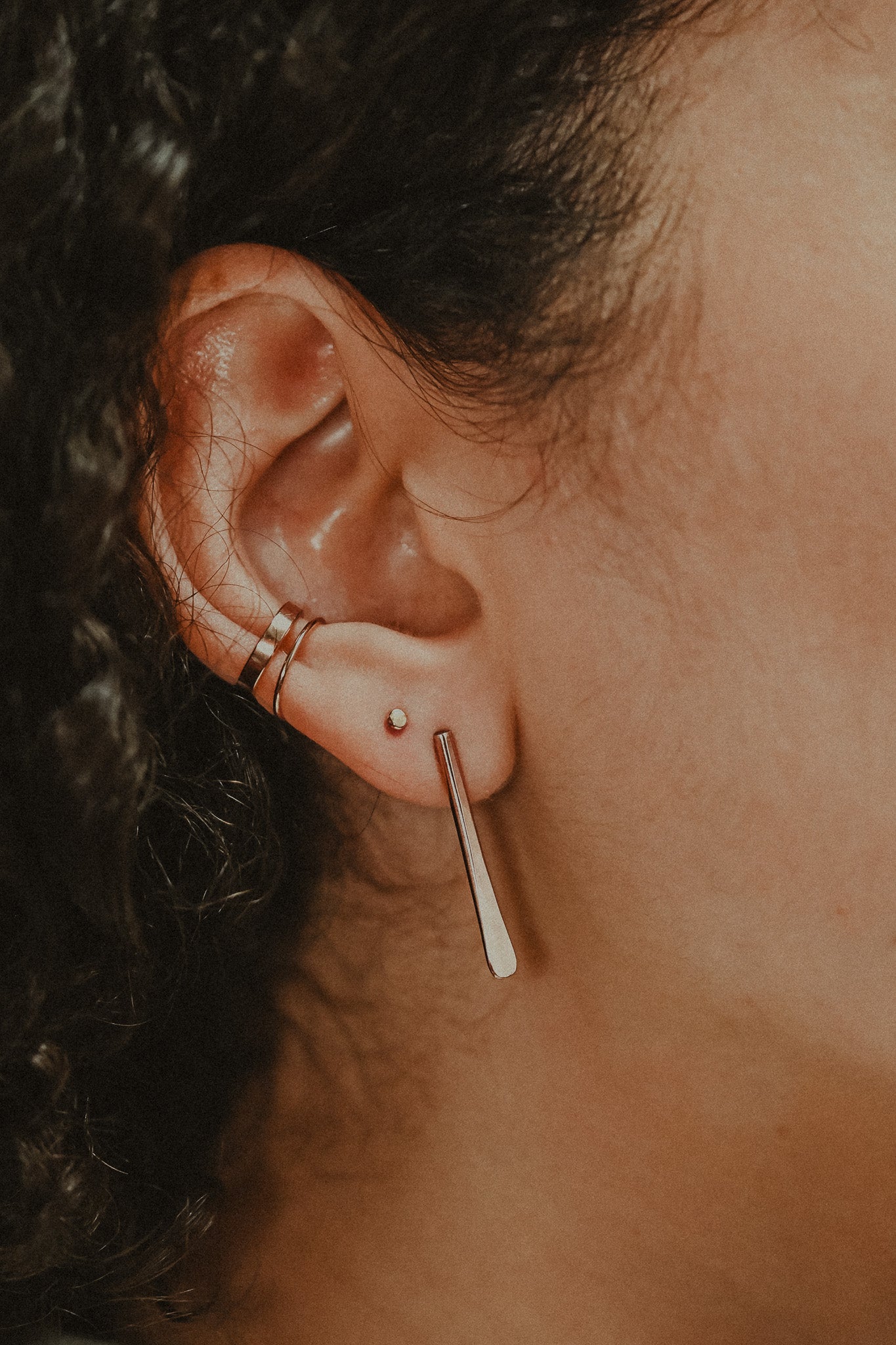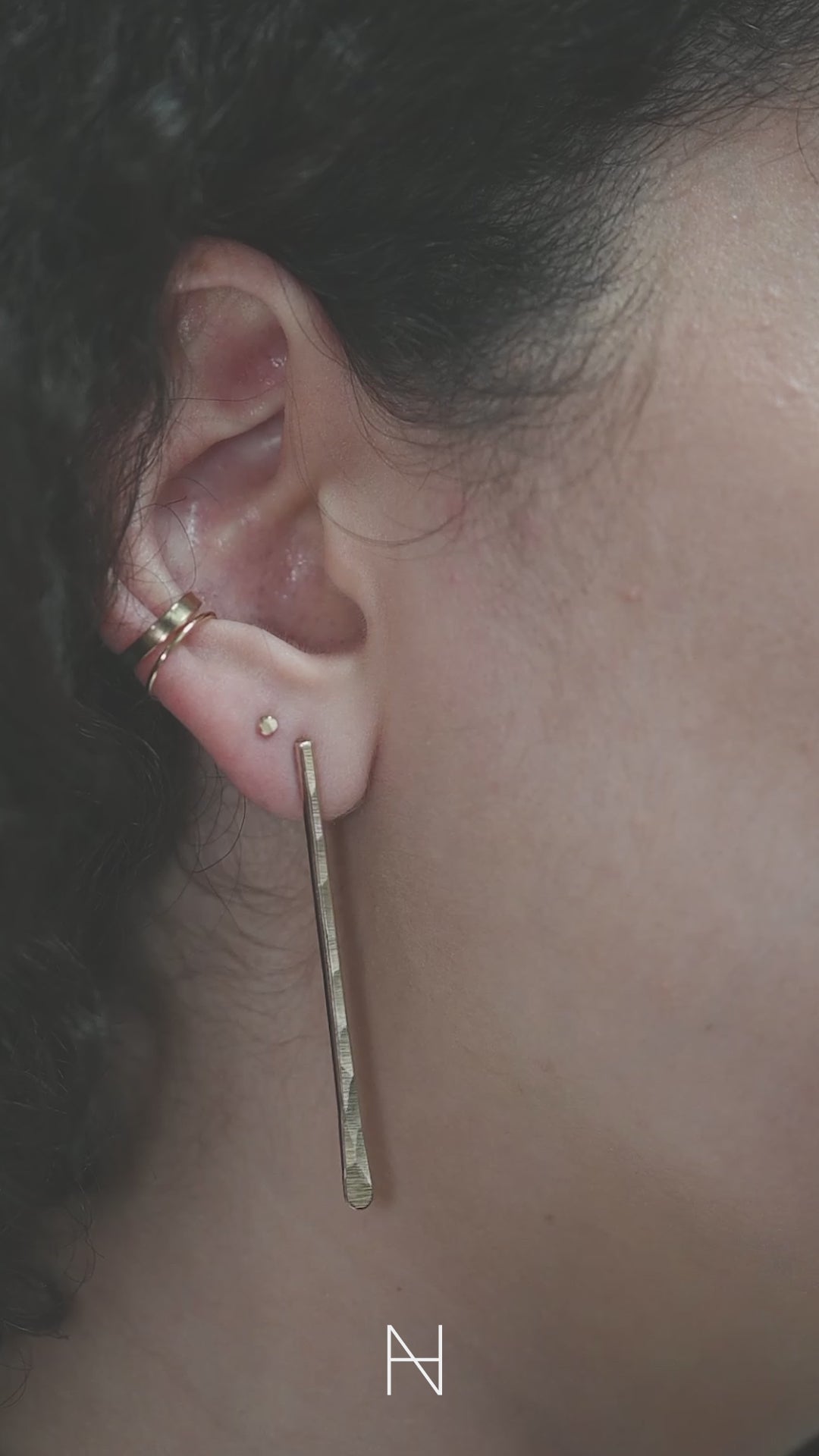 | Choose from 14K GOLD FILL, 14K ROSE GOLD FILL, or STERLING SILVER. Select either the 2″ long version or 1″ short version at checkout. Handcrafted and sold as a PAIR including classic ear nut backings. |