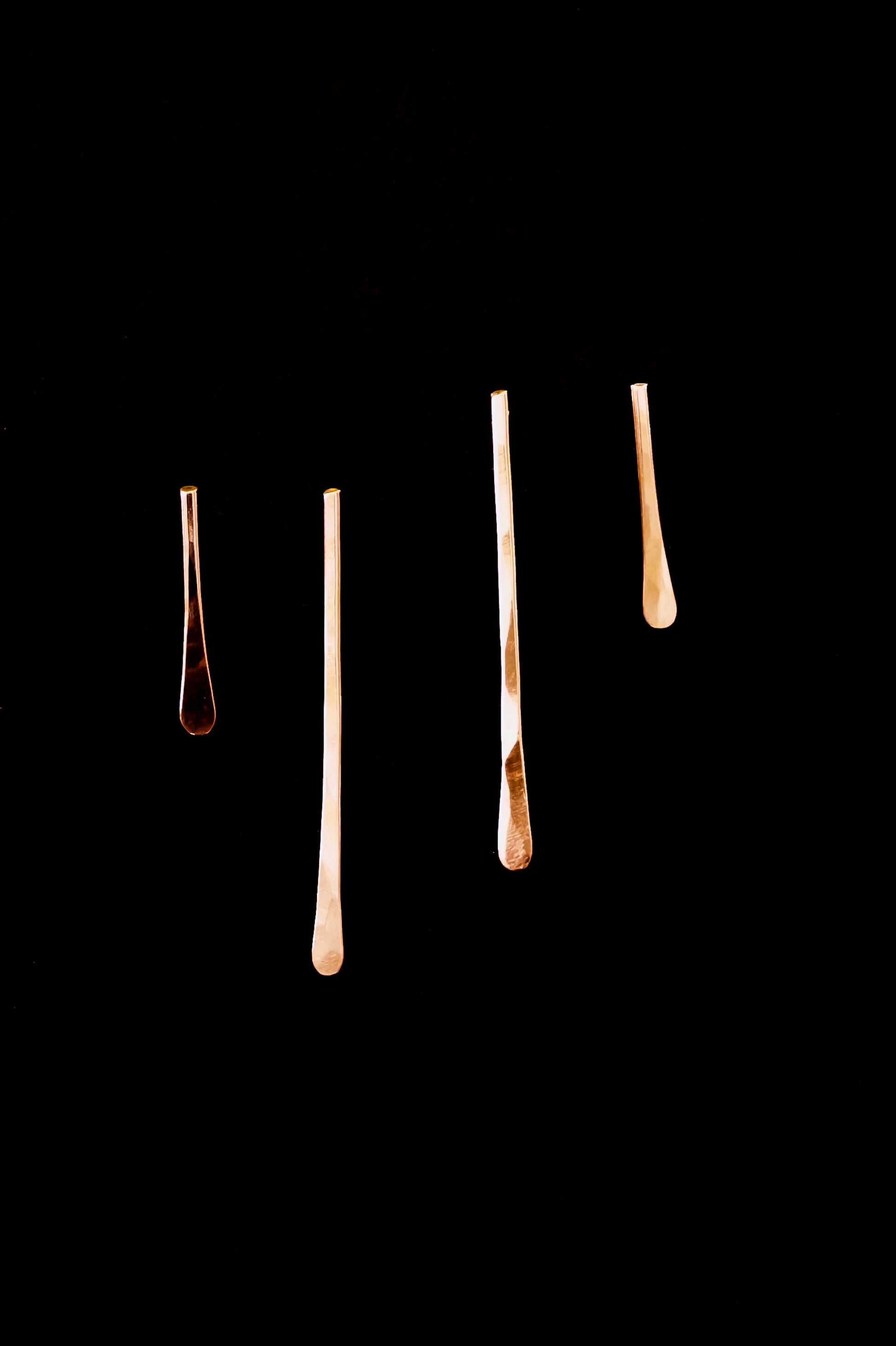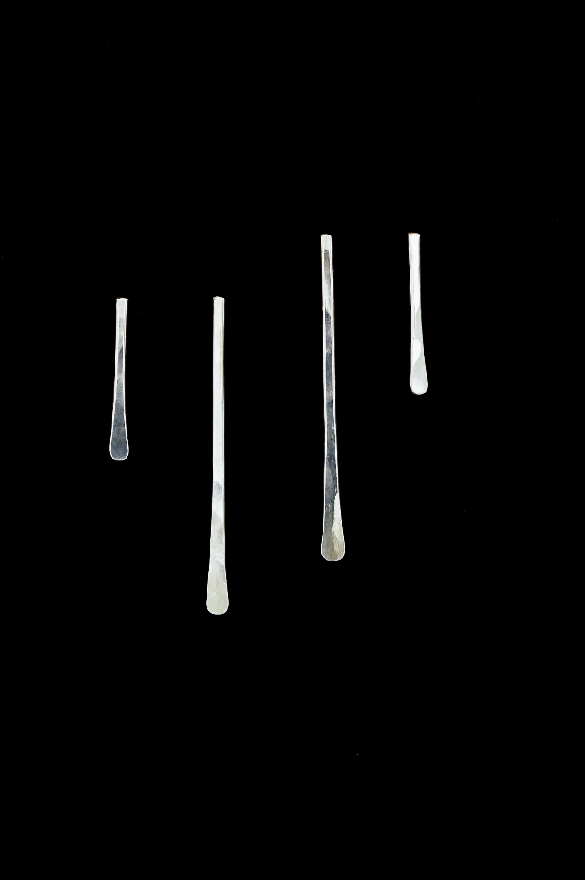 We form these earrings into a very flattering, tapered shape and hammer out the front side of each earring. This textured effect catches light beautifully and makes these earrings perfect for day or evening.
