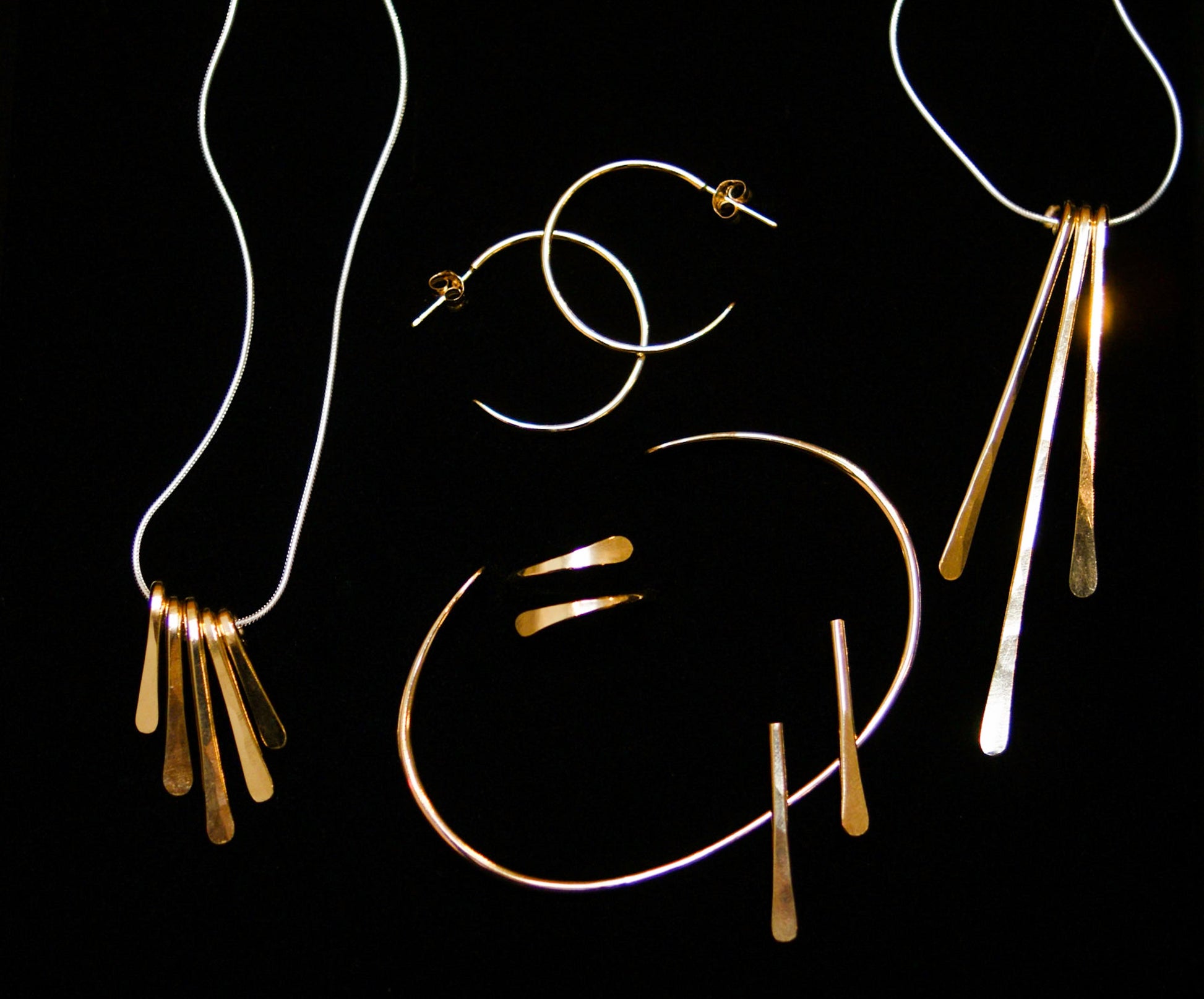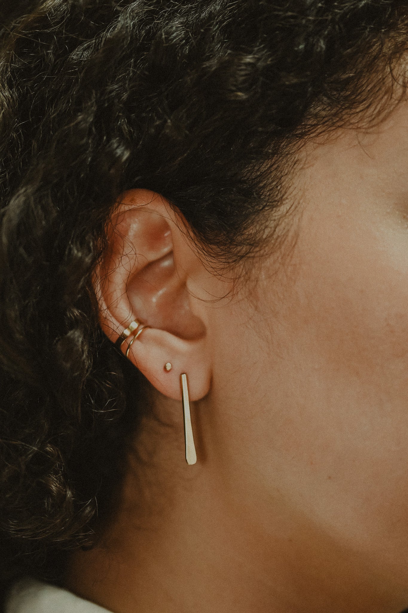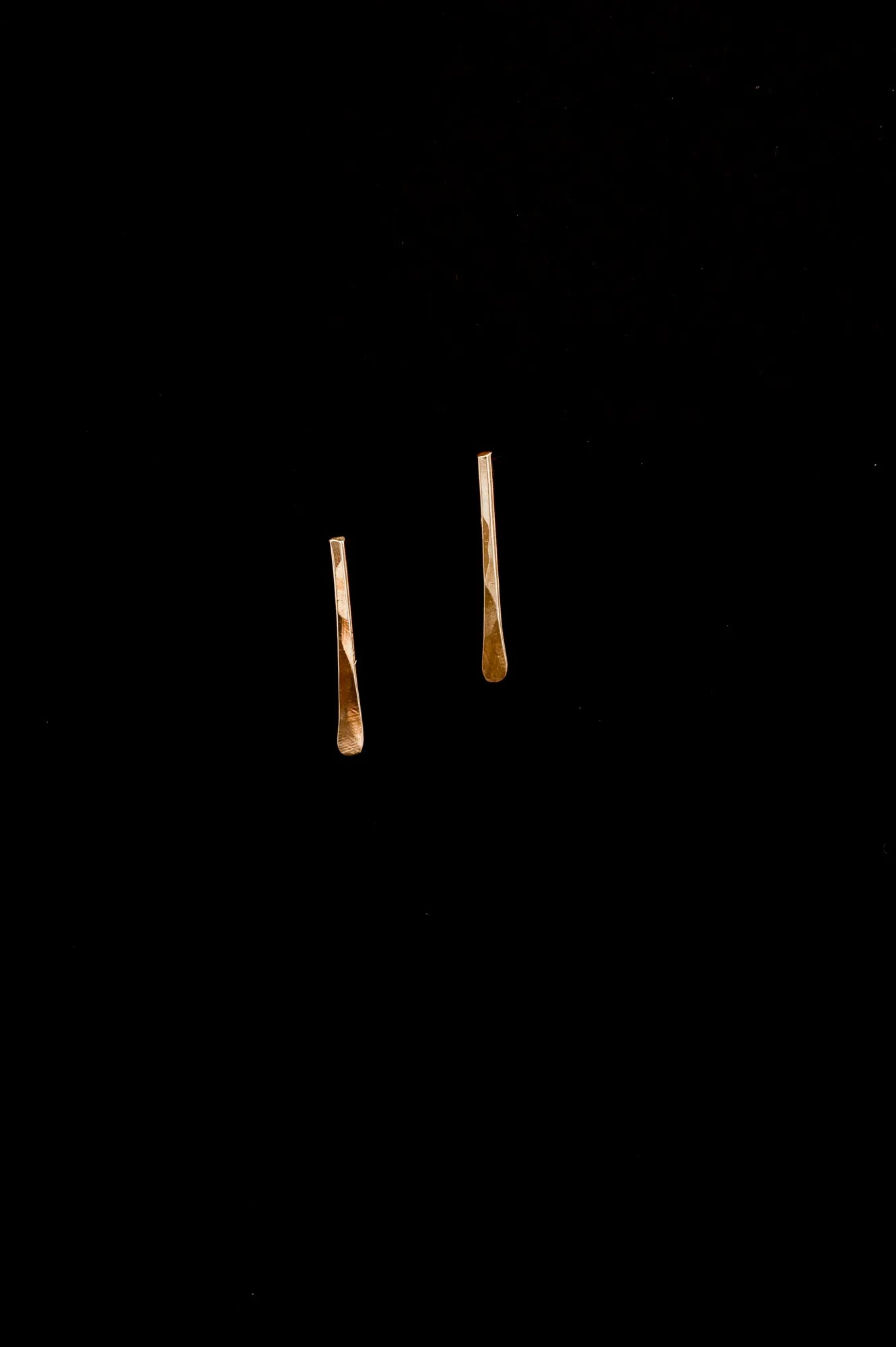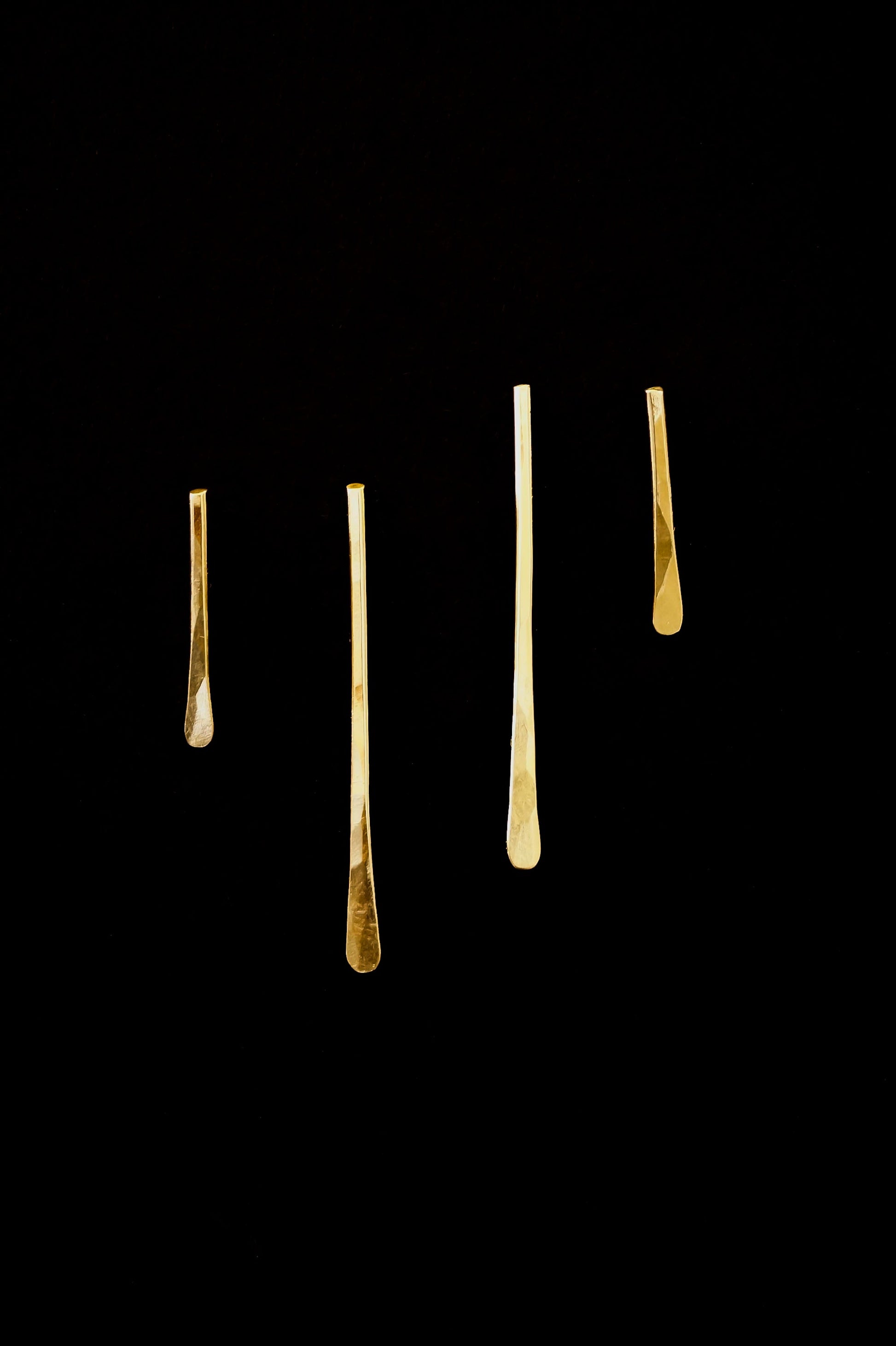 We form these earrings into a very flattering, tapered shape and hammer out the front side of each earring. This textured effect catches light beautifully and makes these earrings perfect for day or evening.