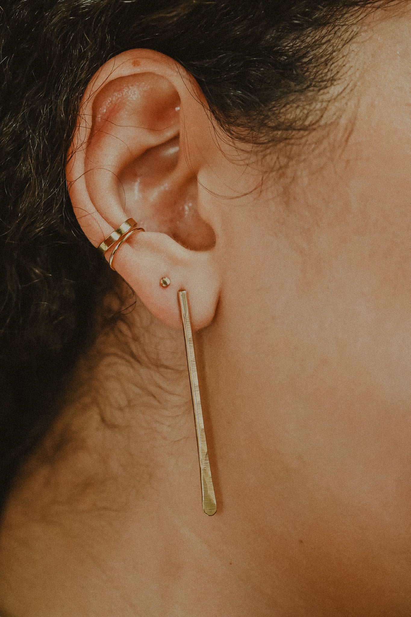 | Choose from SOLID 14K GOLD or 14K ROSE GOLD. Select either the 2″ long version or 1″ short version at checkout. Handcrafted and sold as a PAIR including classic ear nut backings. |