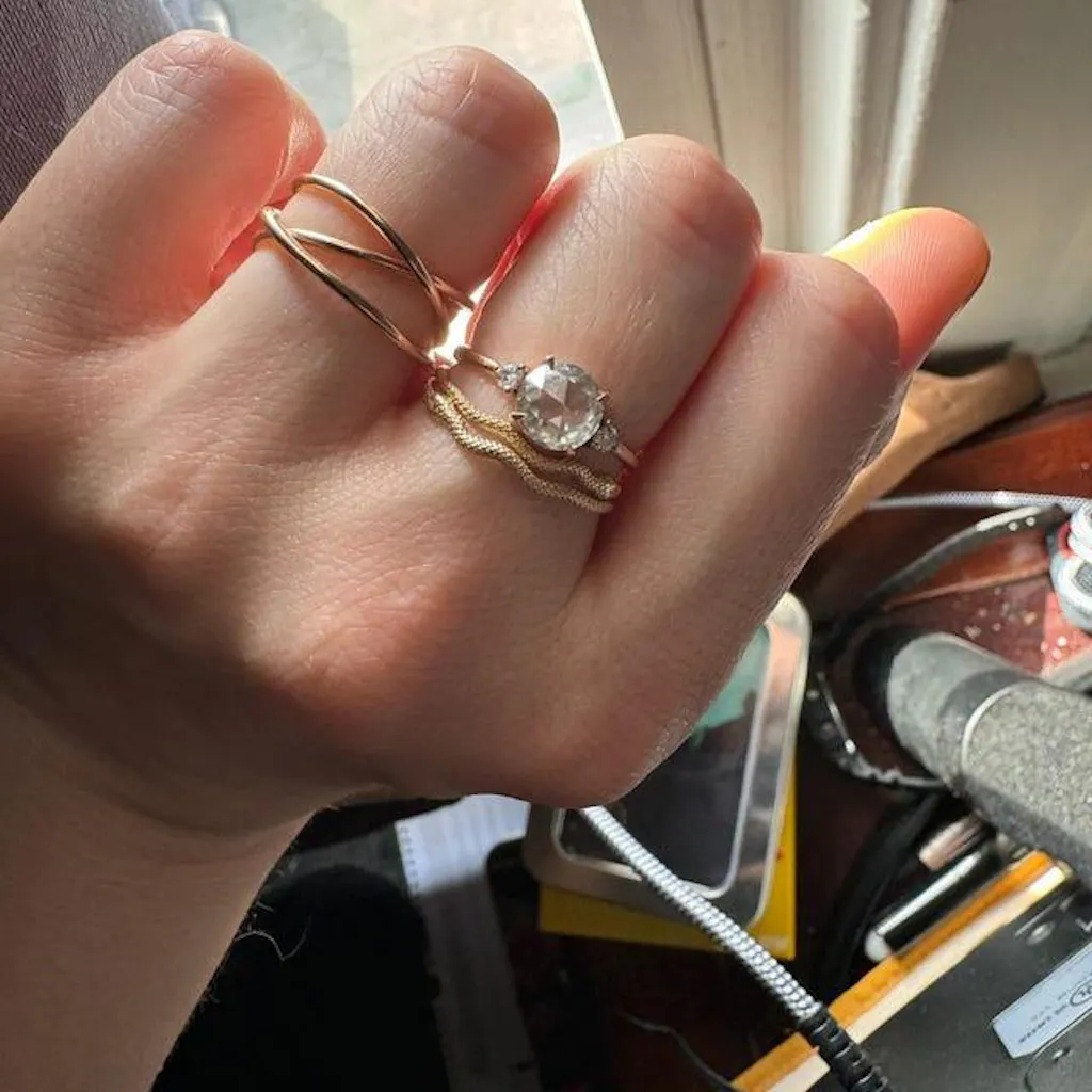 Learn more about our metalsThe wraparound ring can be customized to be made in a daintier or more durable style.