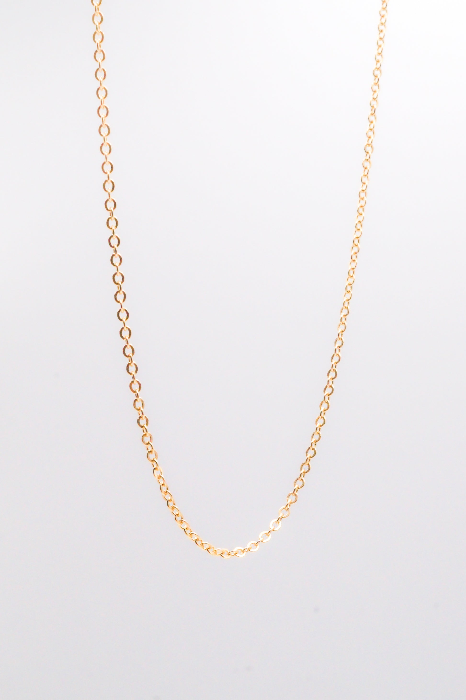 This delicate necklace is a 'Thin' version of our cable chain and measures about 1mm in thickness. We recommend the THICK style if you prefer to leave your jewelry on for most of the day.Pick your desired length: 16" or 18". Made in Solid 14k Gold. |
