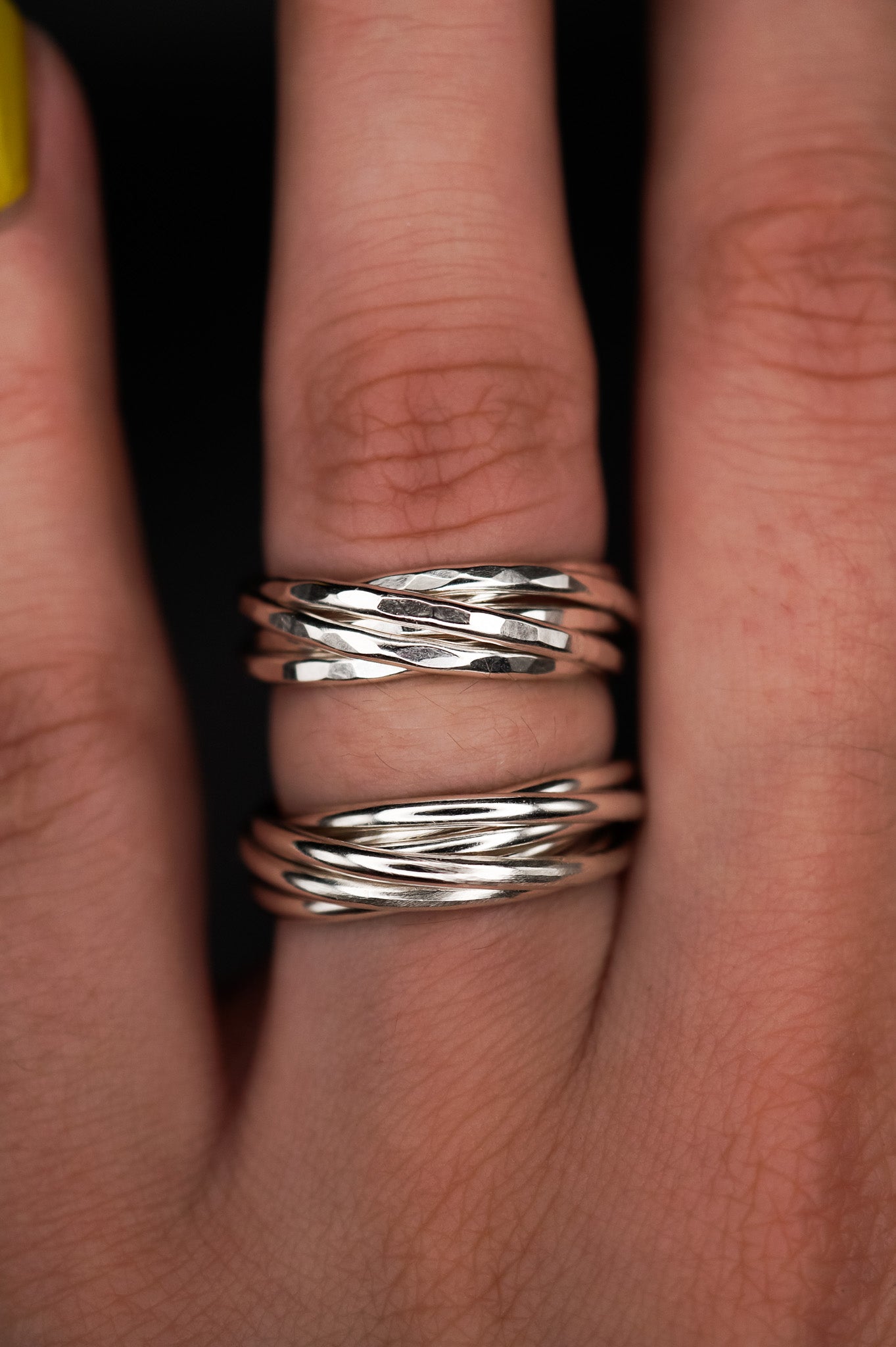 Thin Interlocking Set of 6 Rings, Sterling Silver