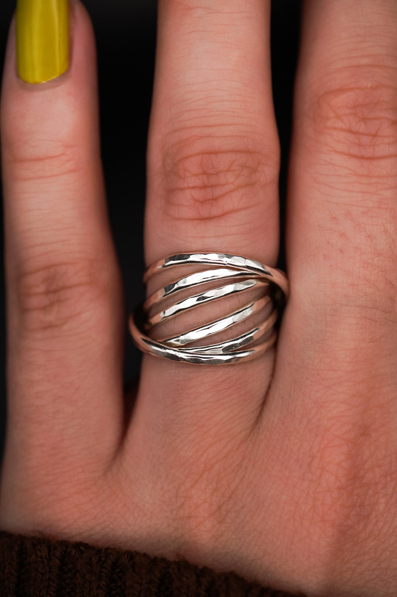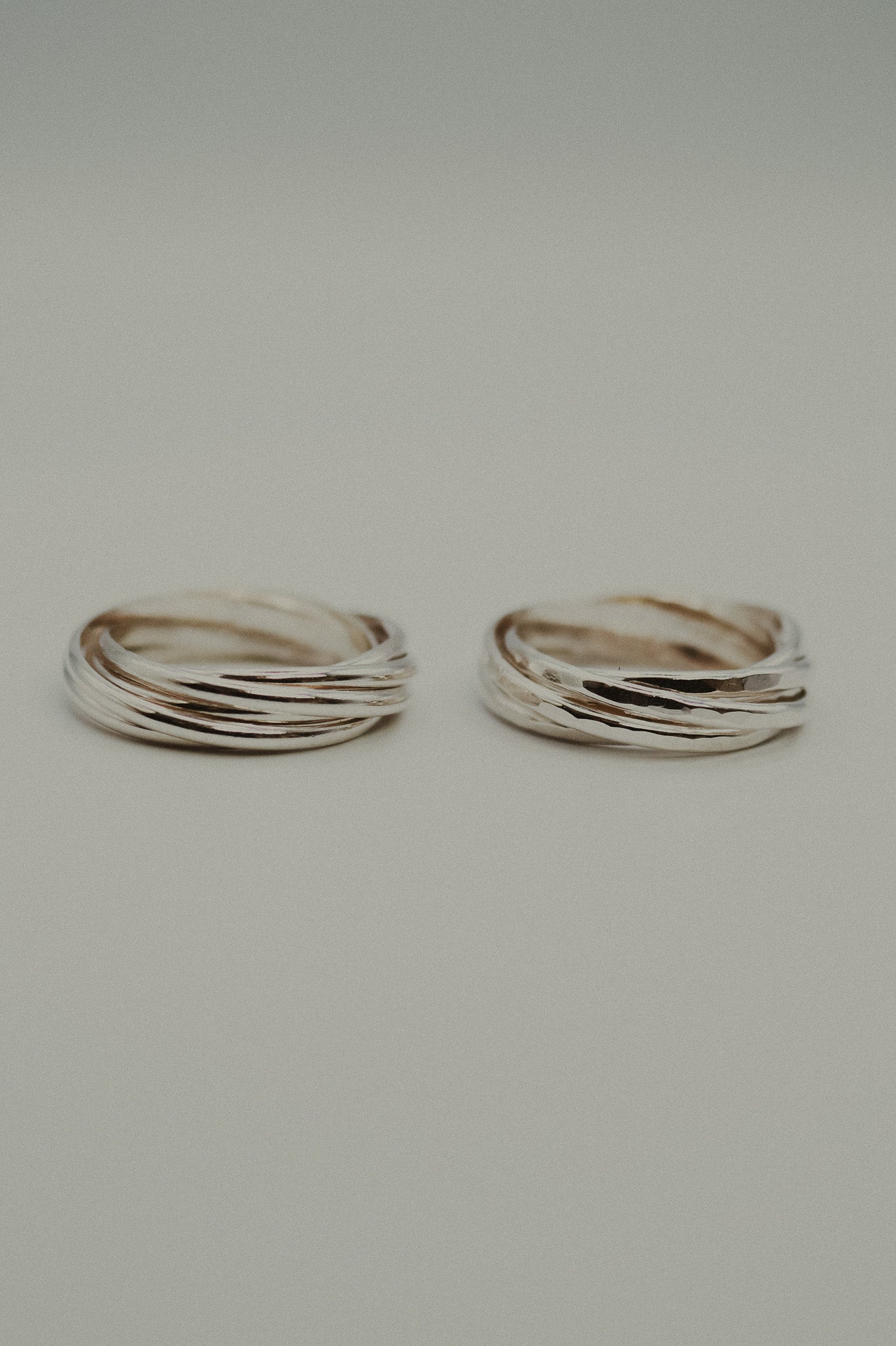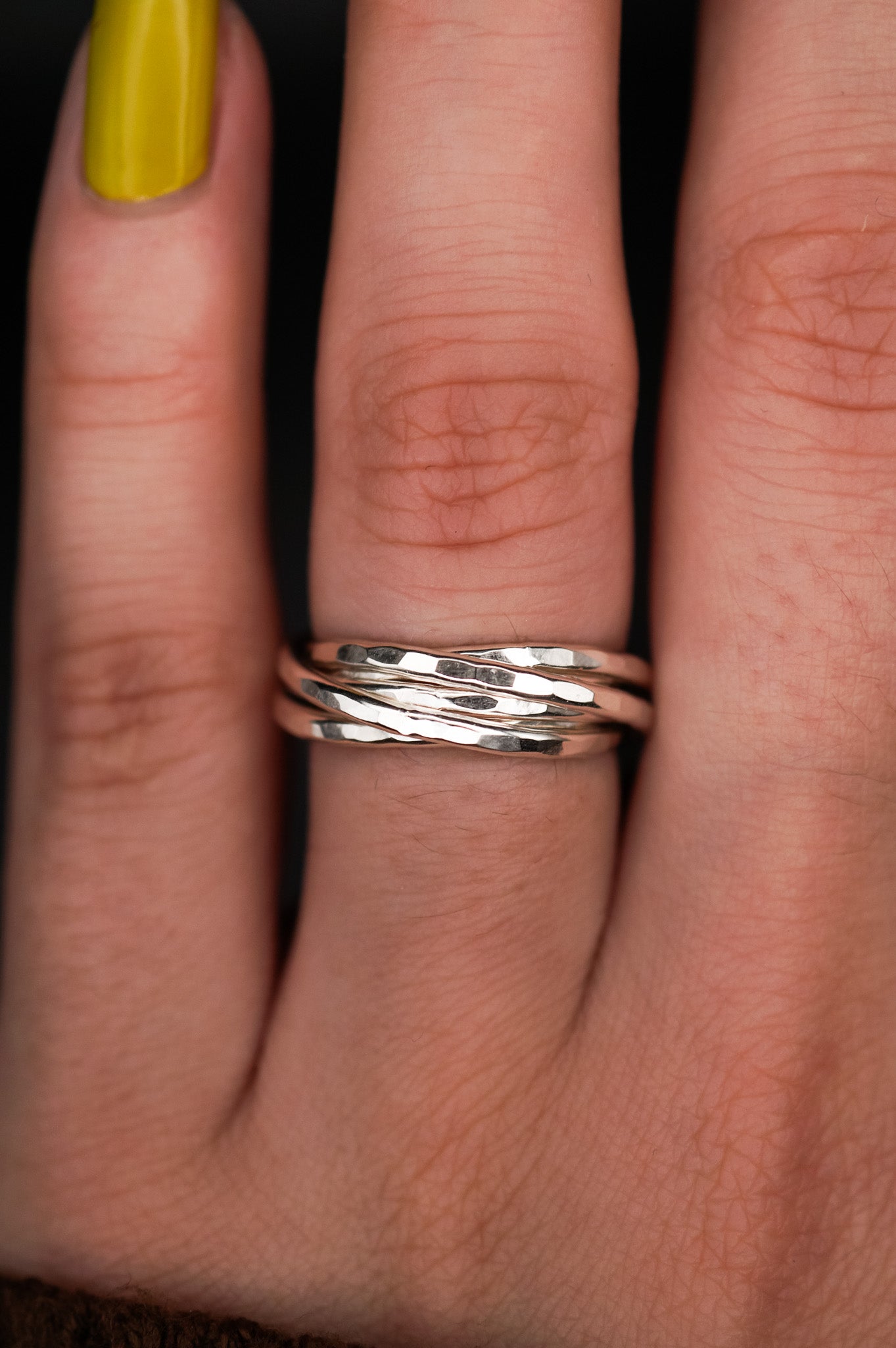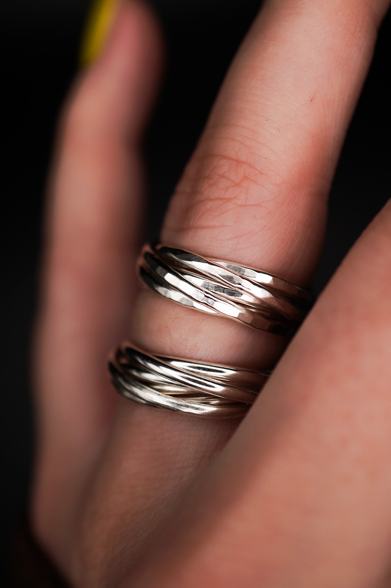 Each band measures approx. 1.5mm in width. These Interlocking rings can be made in either a lightly HAMMERED finish, a SMOOTH finish or a mixture of the two. If you would like certain rings to be in a certain finish let us know in a note at checkout. |