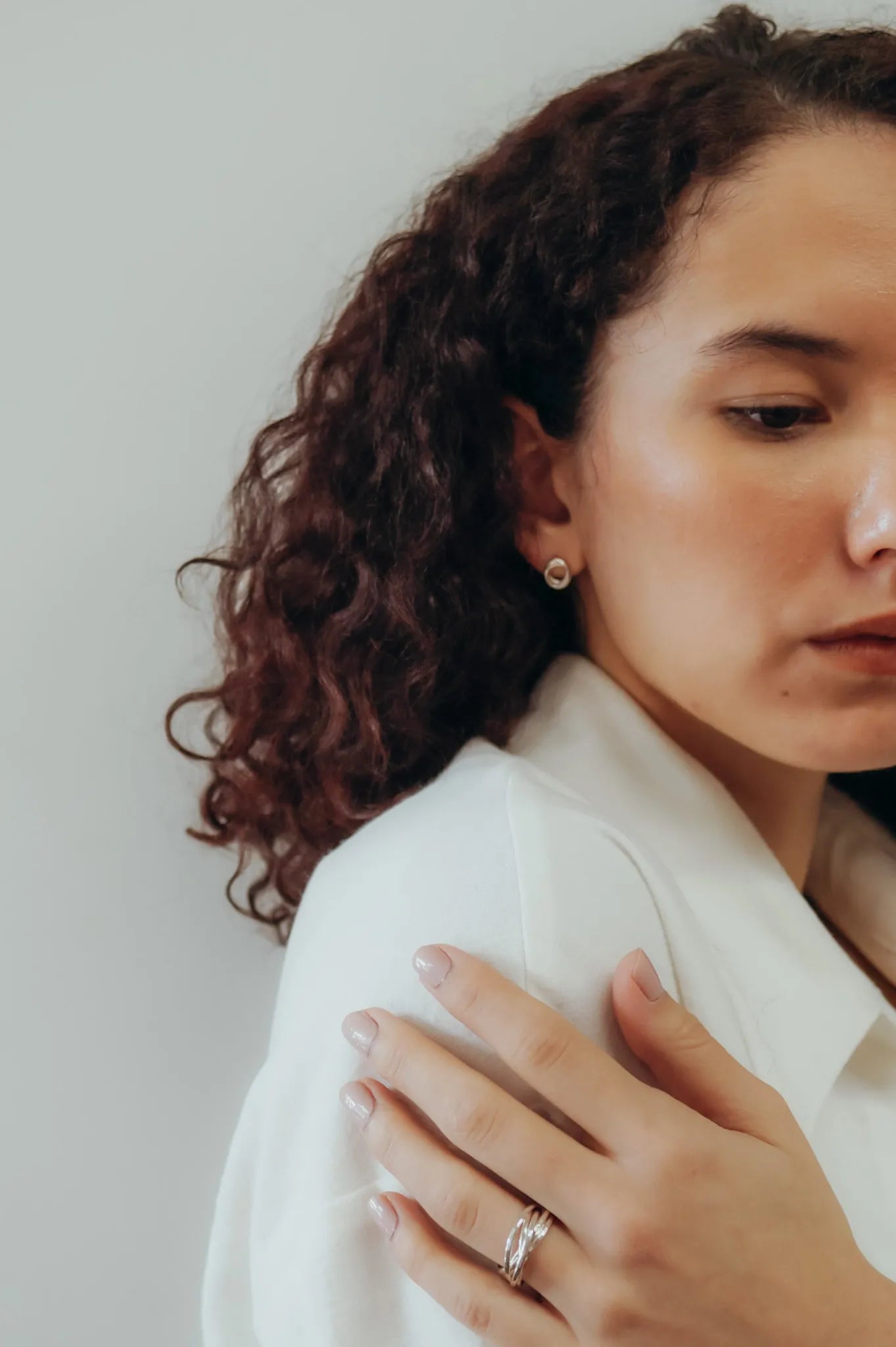 Be sure to size up from your US Fashion Ring Size (not to be confused with Bridal Sizing!). The overlapping metal in the Interlocking Rings means that they will fit differently from classic, thin stacking rings. Generally, a half size up is most comfortable.