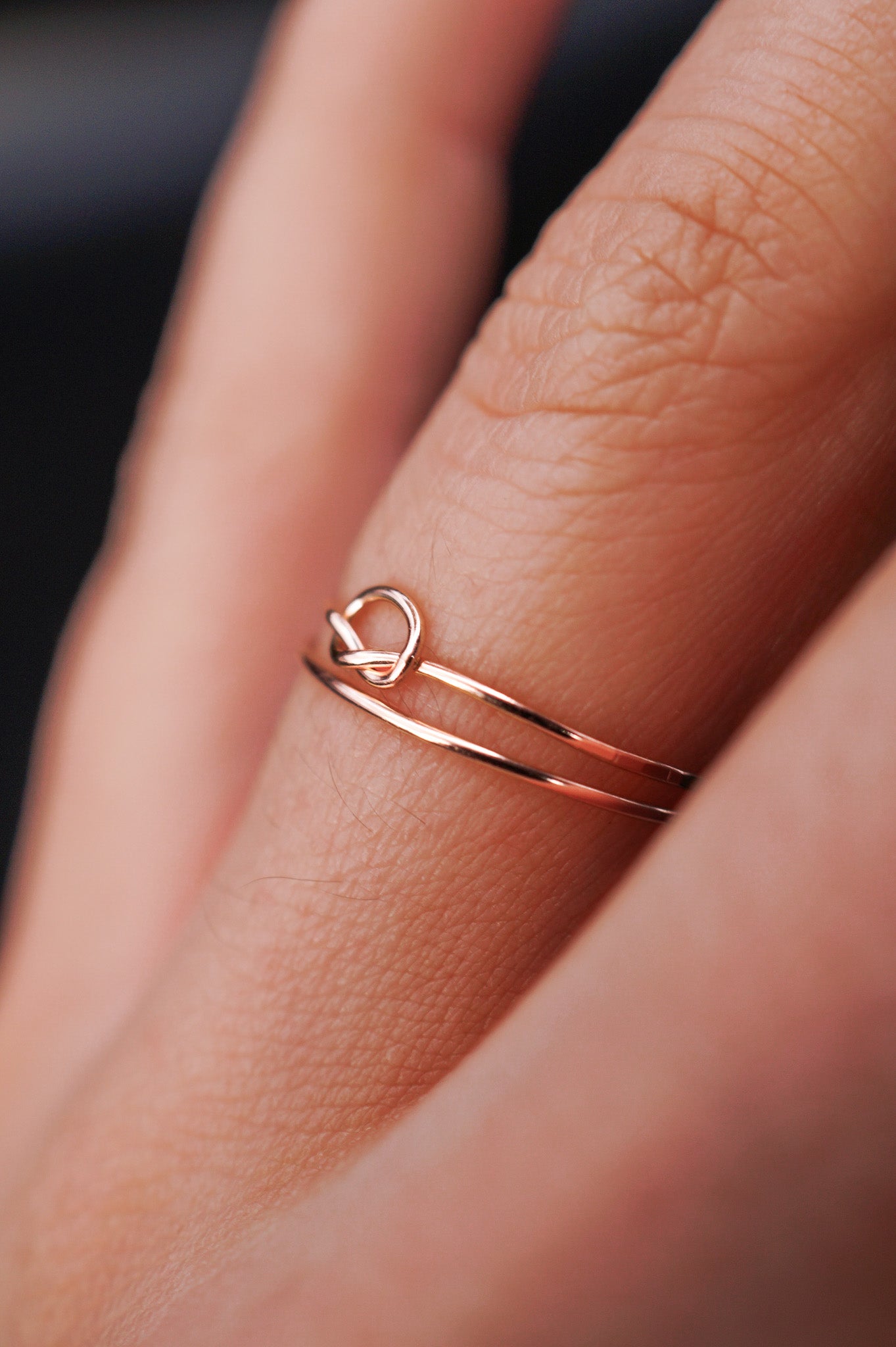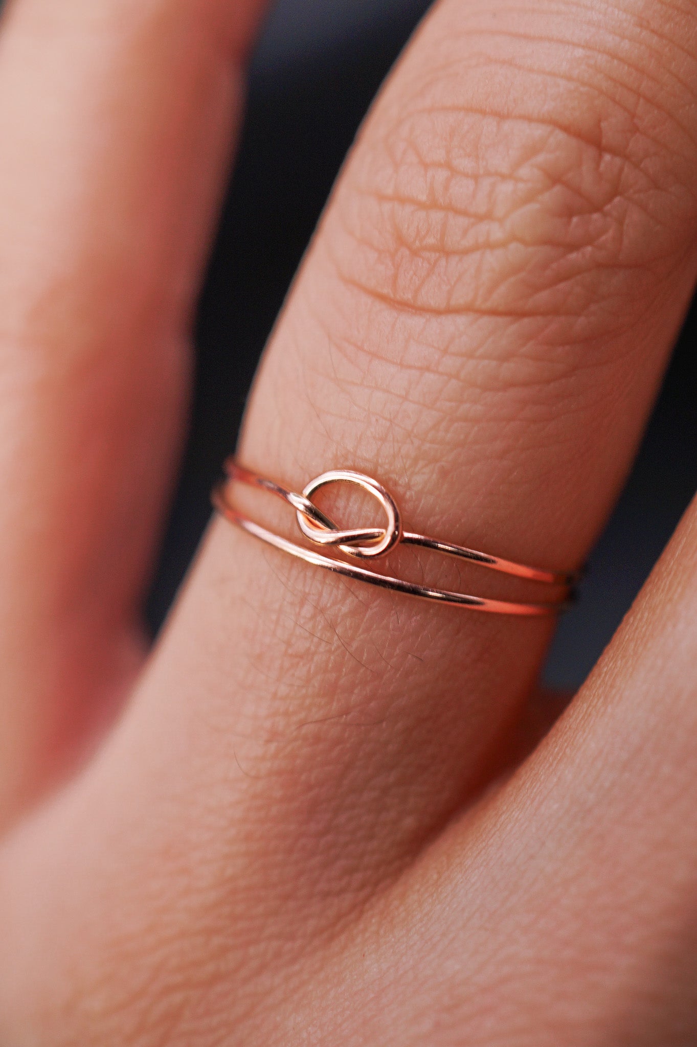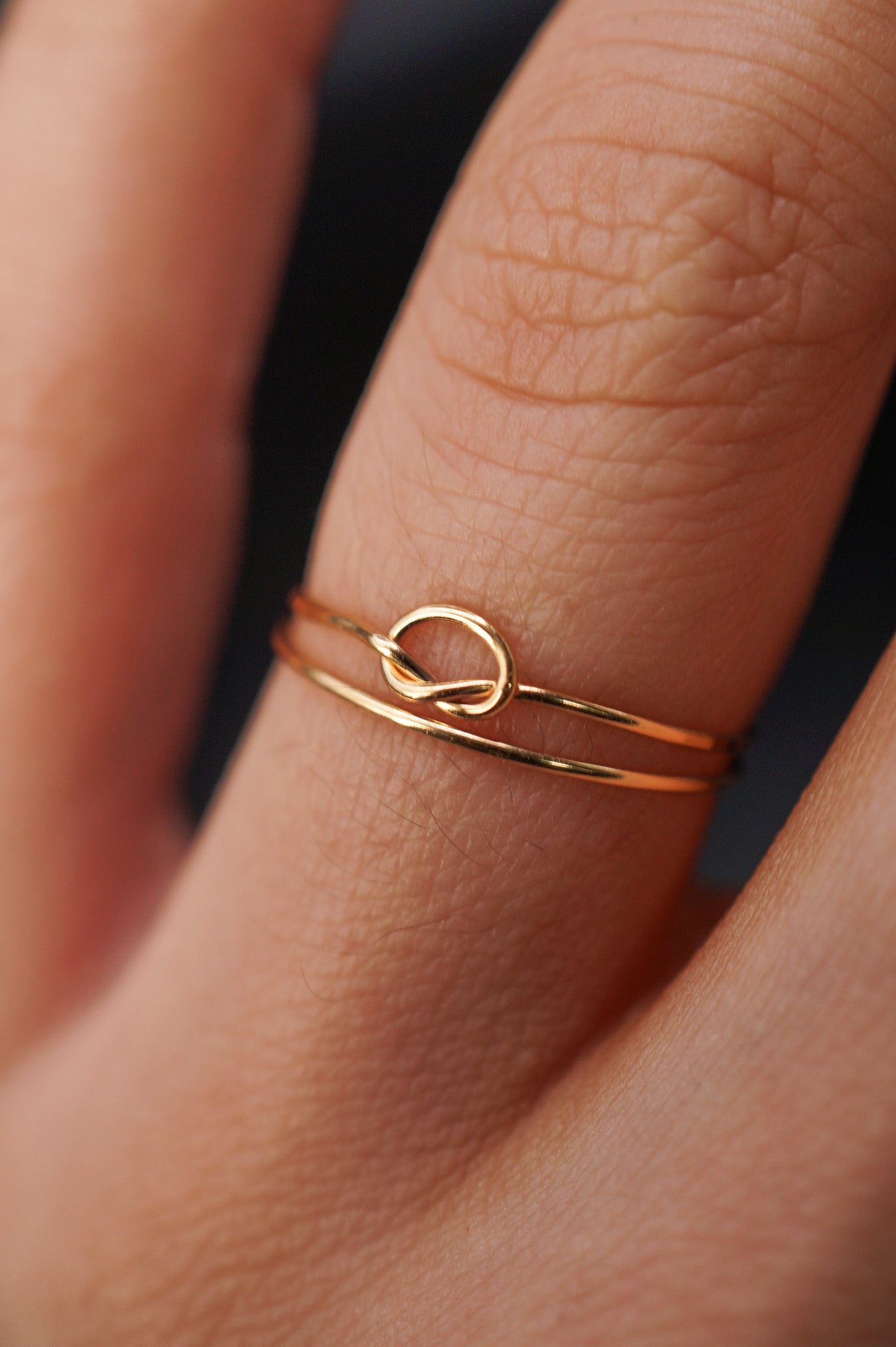 Thin Open Knot Set of 2 Stacking Rings, Gold Fill, Rose Gold Fill or Sterling Silver