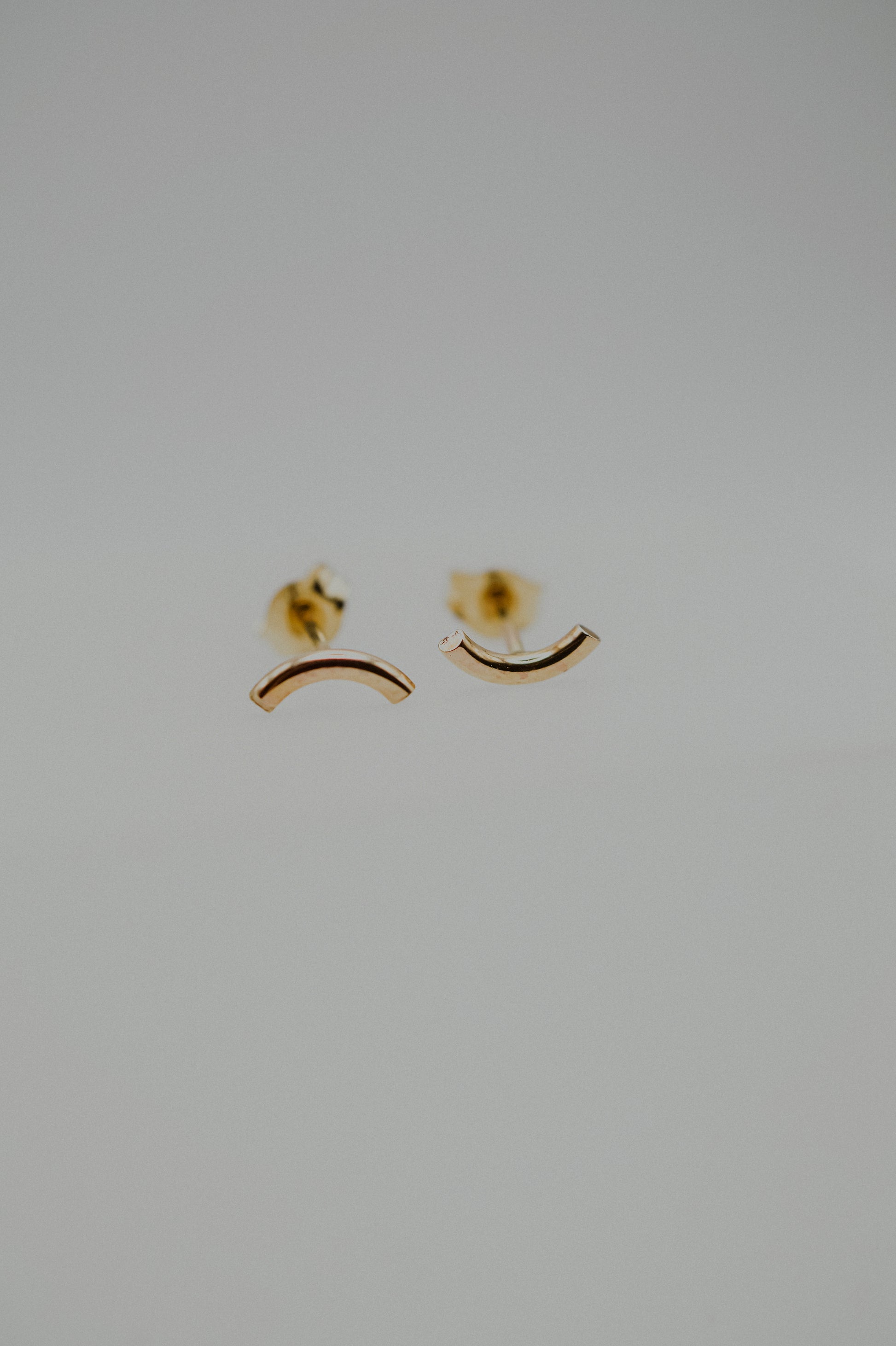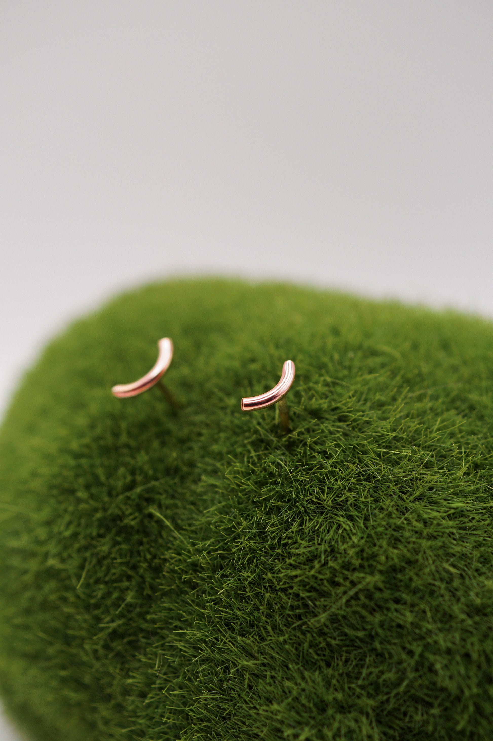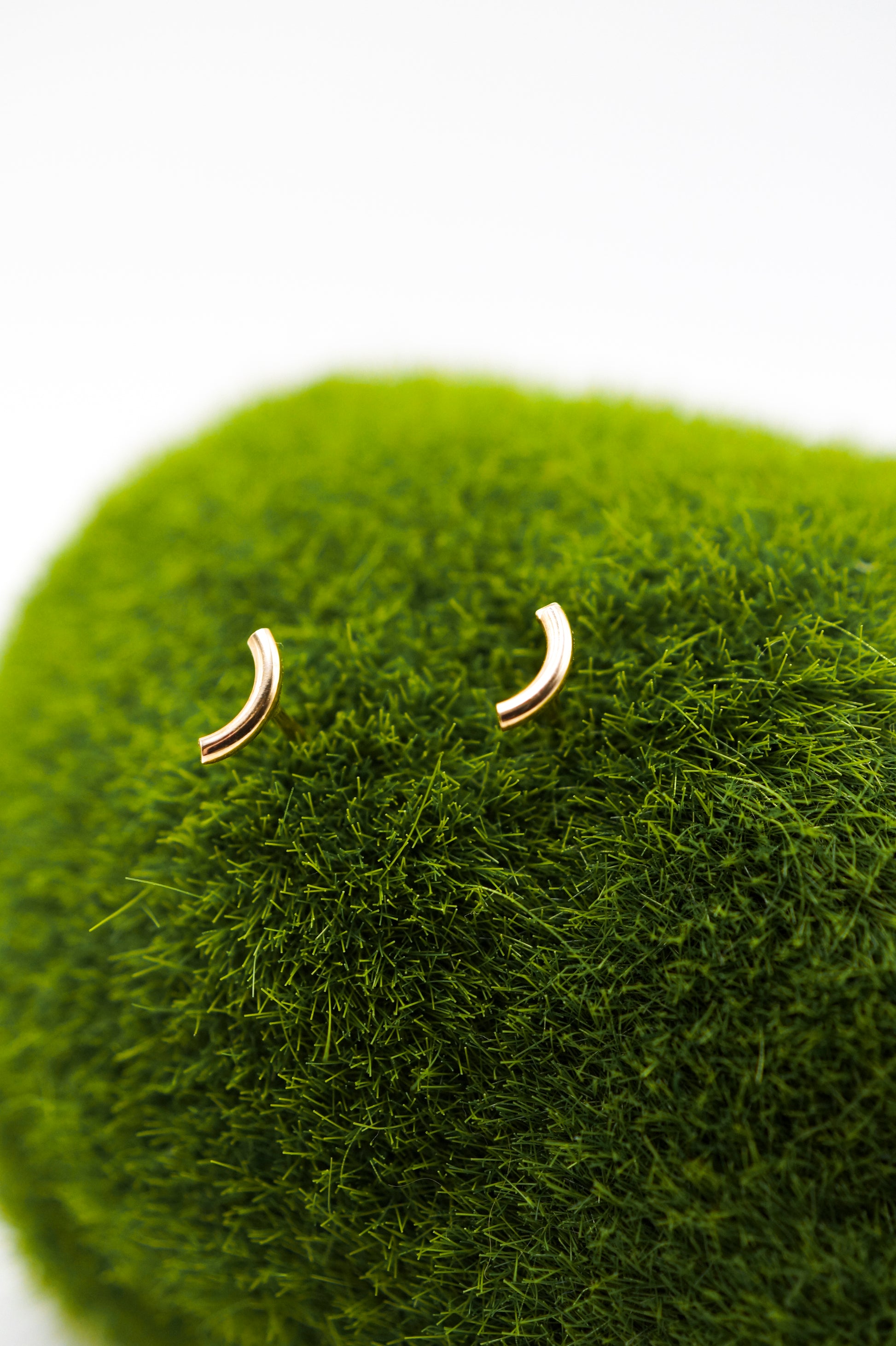 Tiny Arc Stud Earrings in Solid 14k Gold or Rose Gold