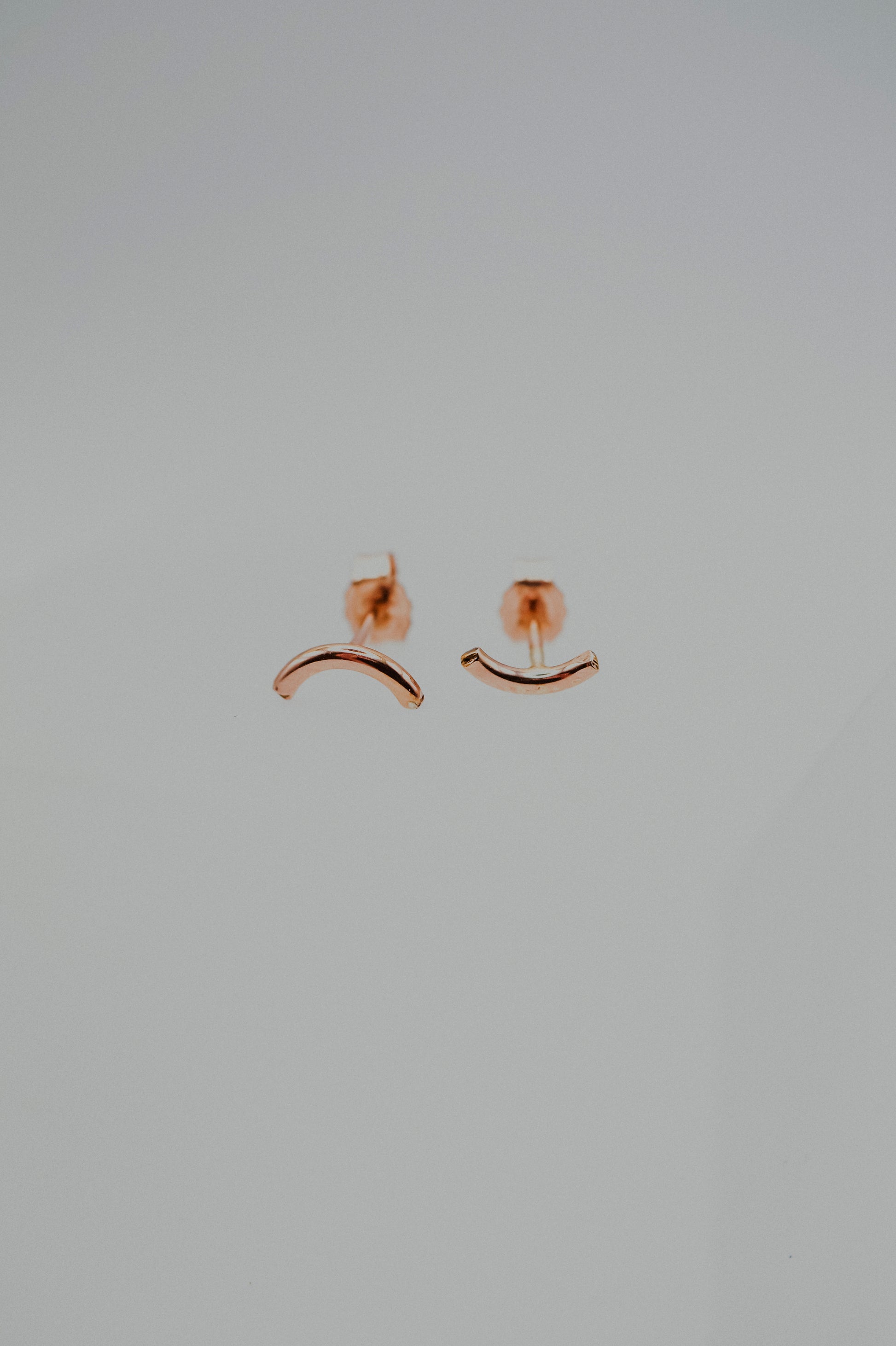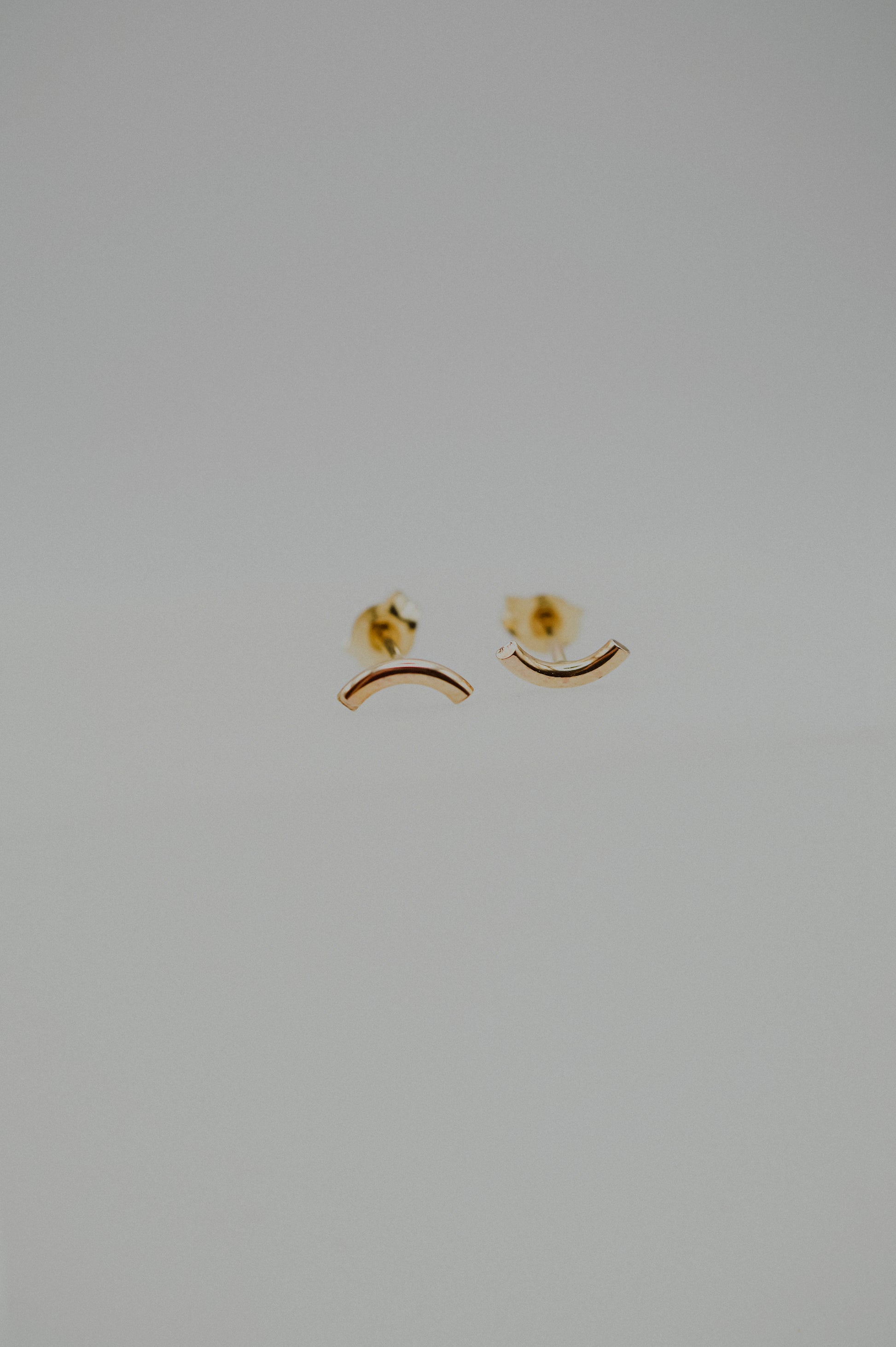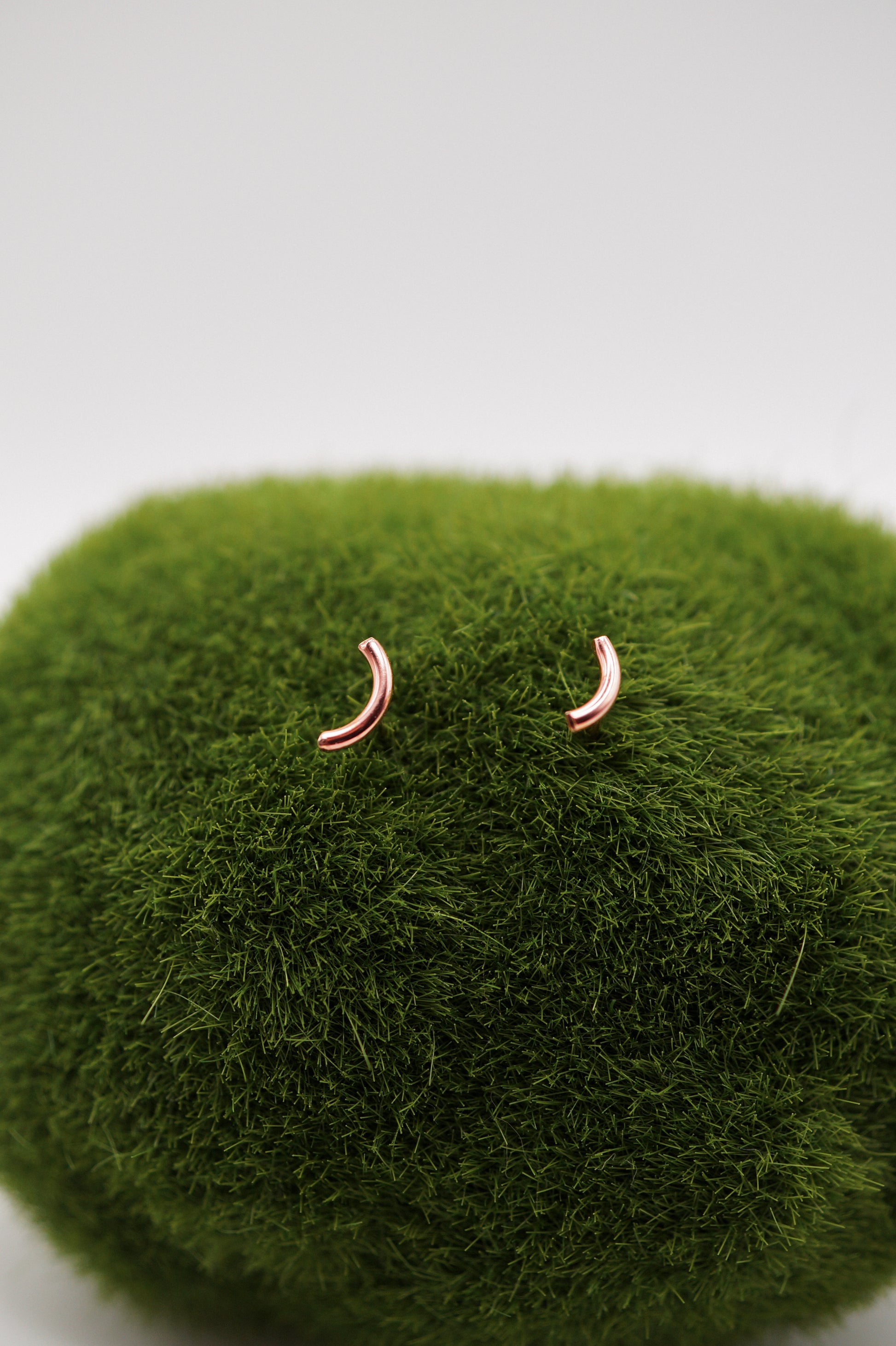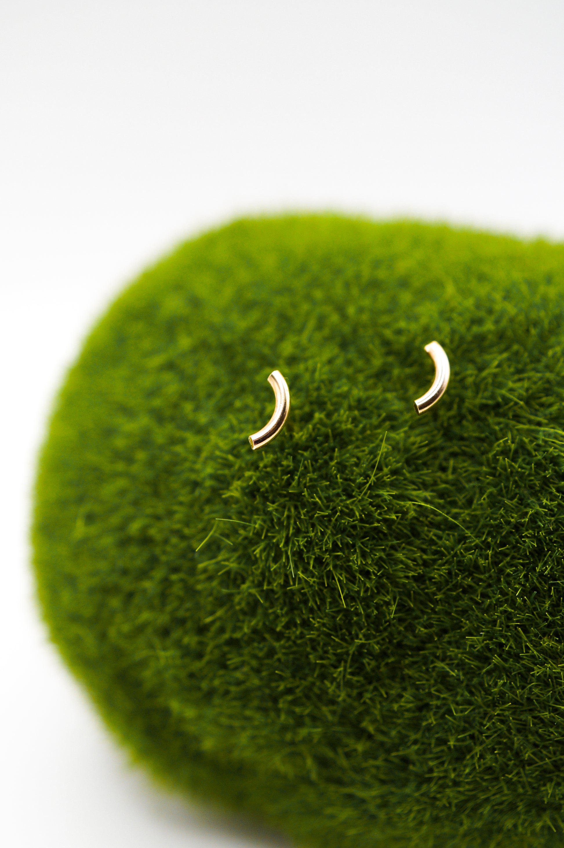 Tiny Arc Stud Earrings in Solid 14k Gold or Rose Gold