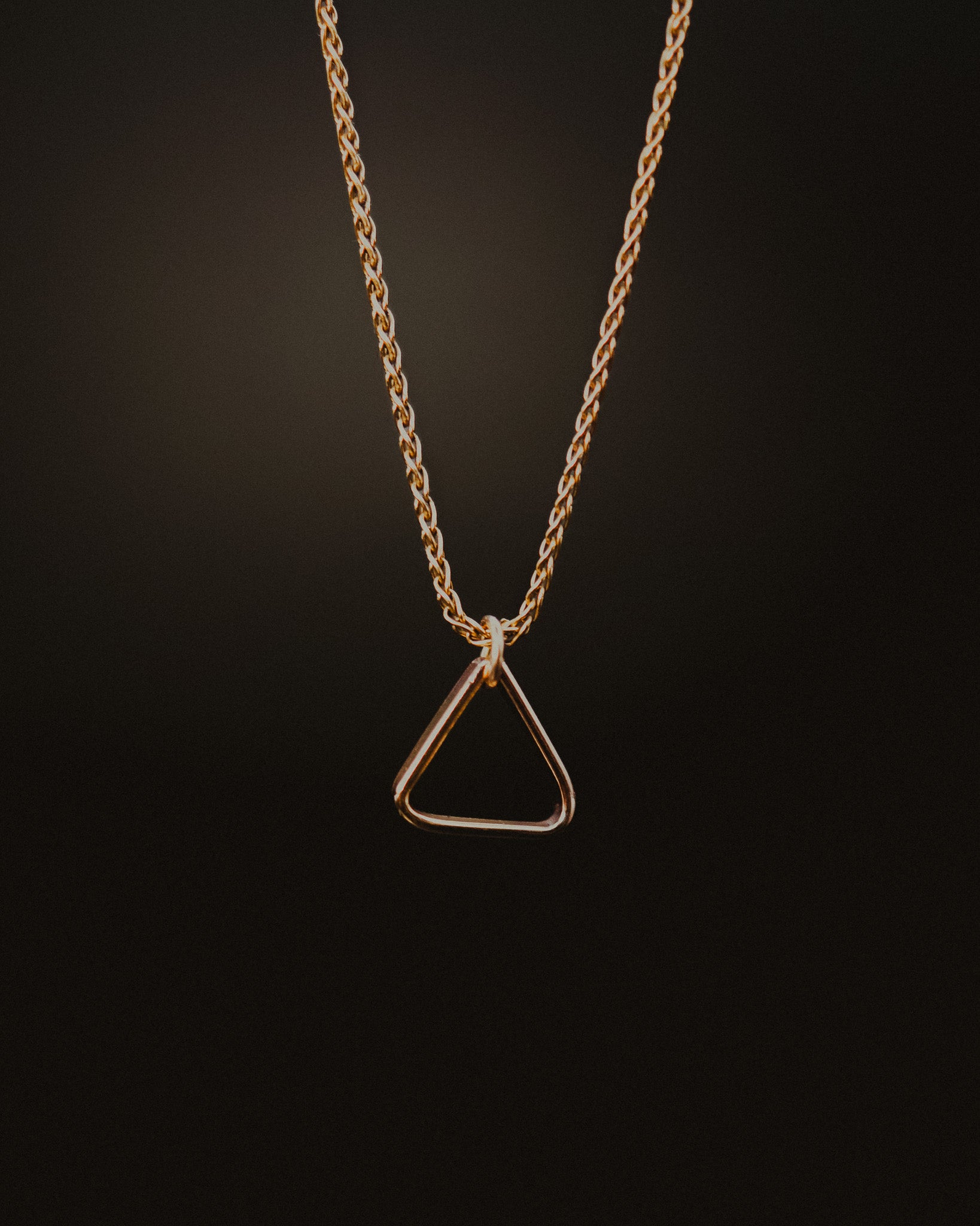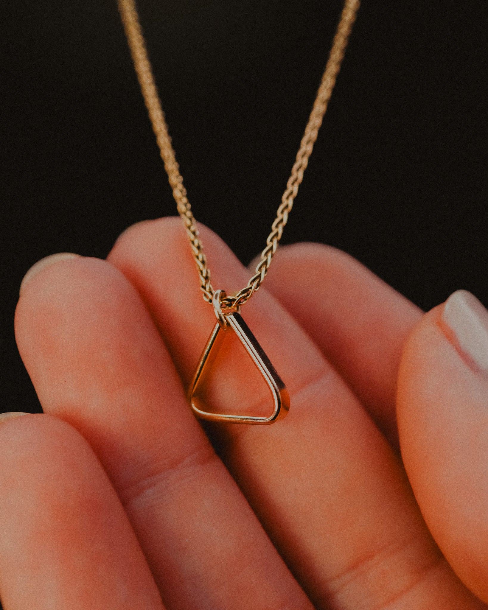 Discover the perfect blend of elegance and craftsmanship with our handcrafted triangle pendant. Expertly crafted in our Portland, OR studio, each pendant is a unique piece of art, embodying a timeless aesthetic that complements any style. Whether worn alone or layered with other pieces, this triangle pendant is a versatile accessory that enhances any look with its classic shape and unique design.