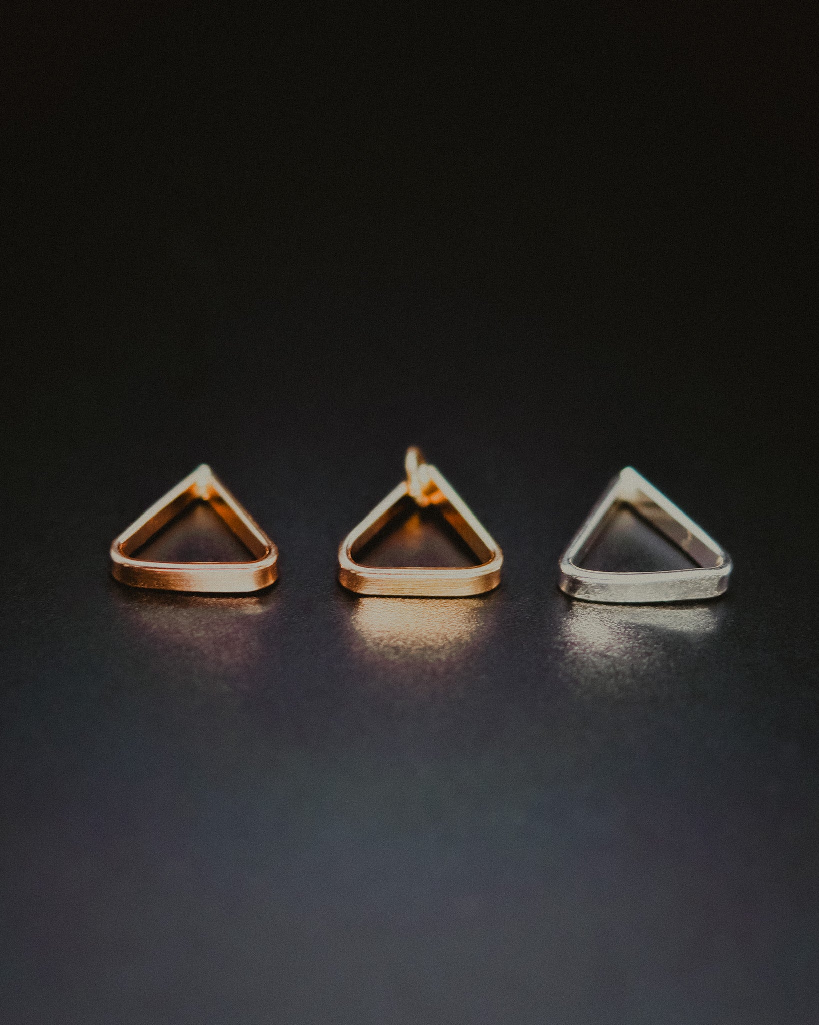 This is a listing for a SINGLE PENDANT (no chain included) and is available in 14K Gold Fill, Rose Gold Fill or Sterling Silver. This pendant is a hand-formed triangle in 2mm thick metal and comes with a jumpring so you can add it to your favorite chain! The triangle measures about 1cm per side. |