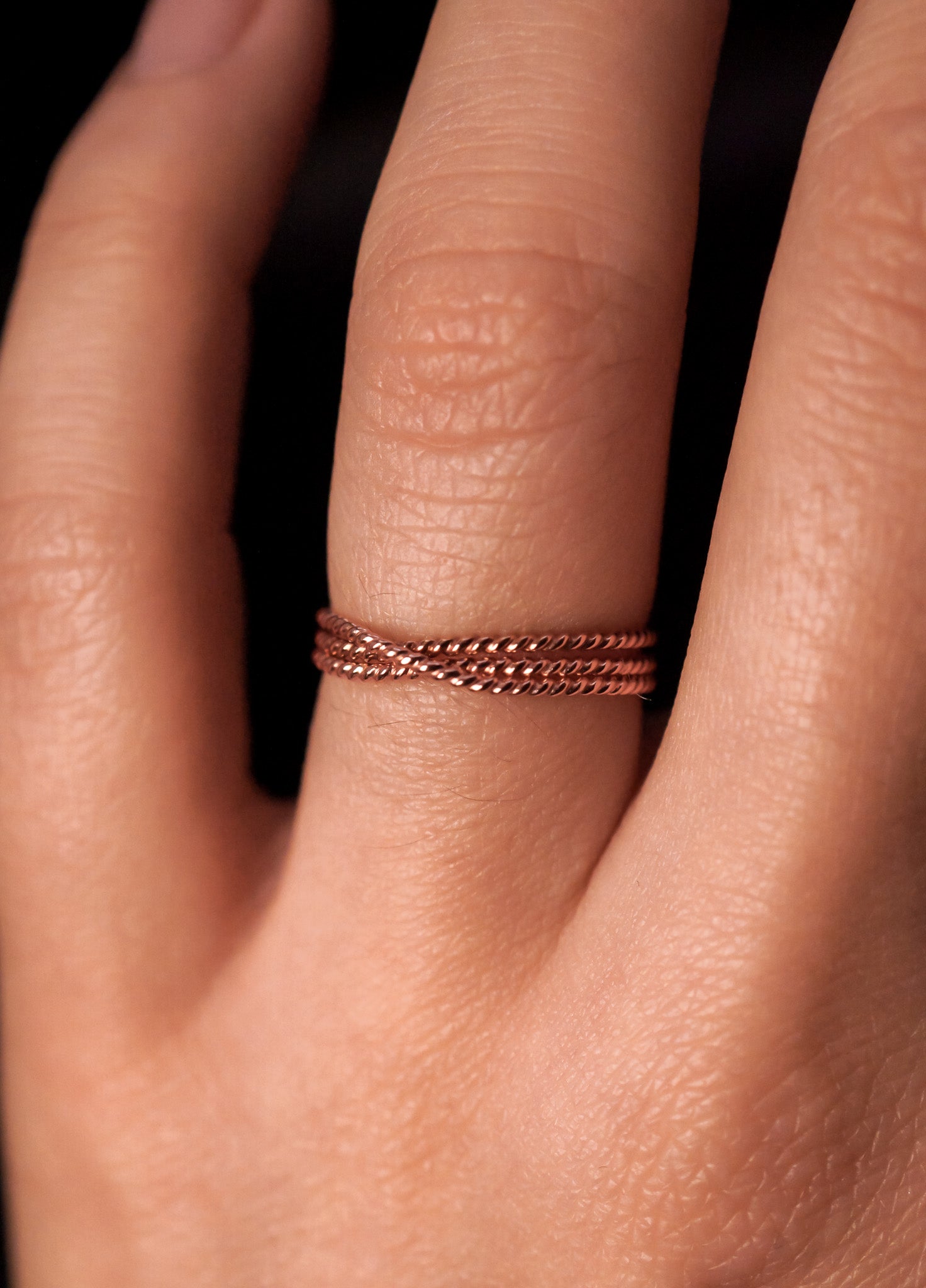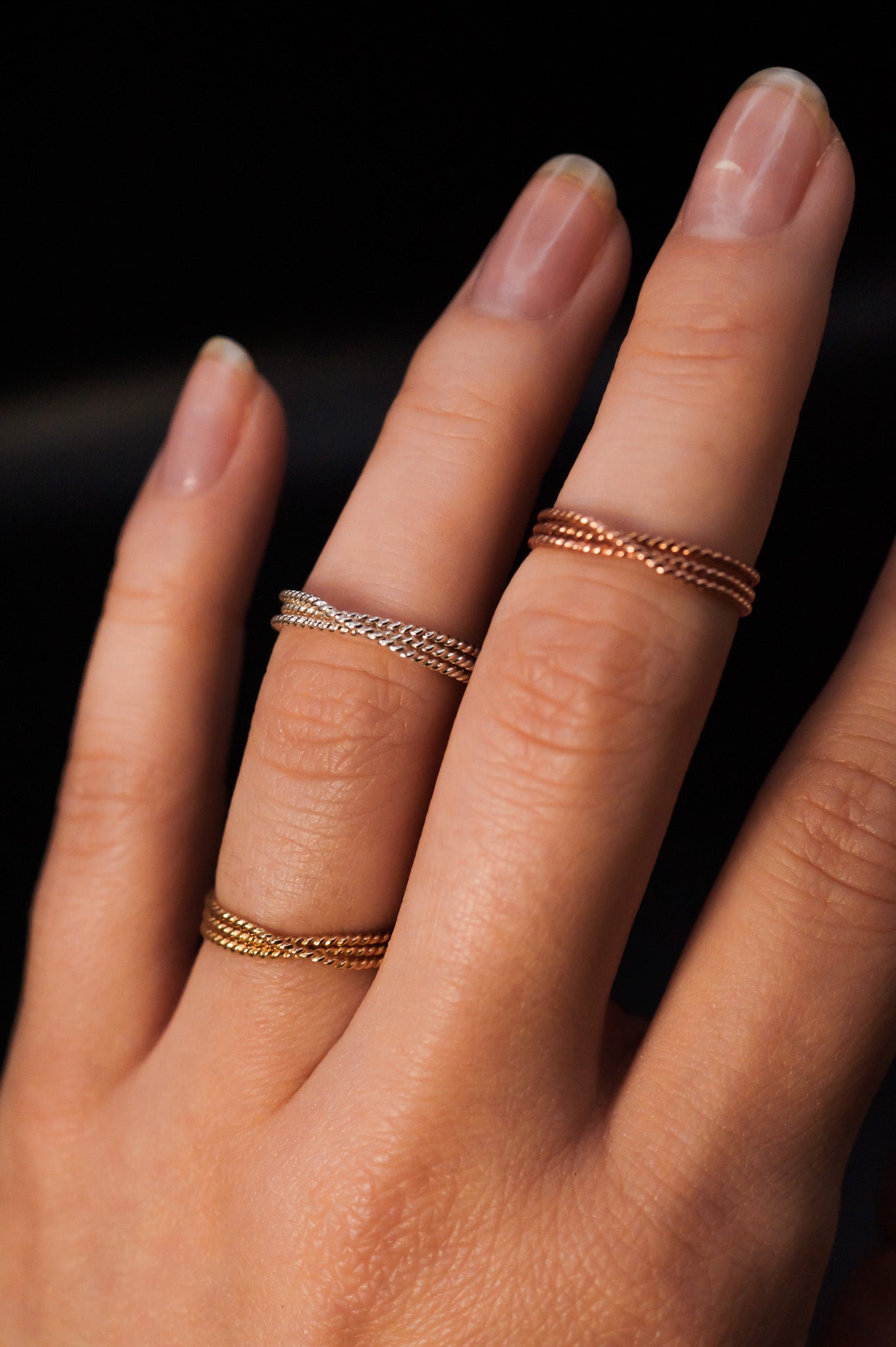 The intricate twisted texture adds the perfect amount of shine - especially when the sun bounces off of it. This ring is perfect for stacking with other rings or being worn on its own.
