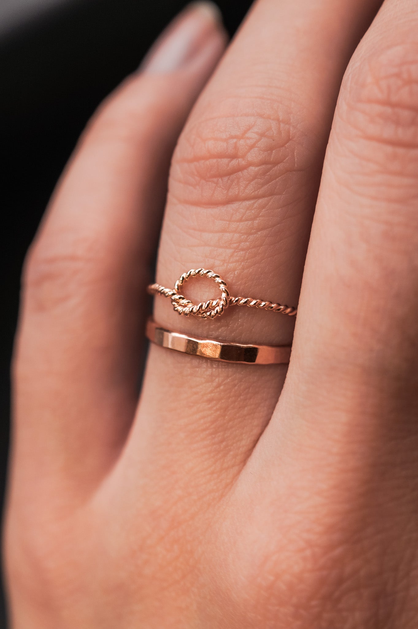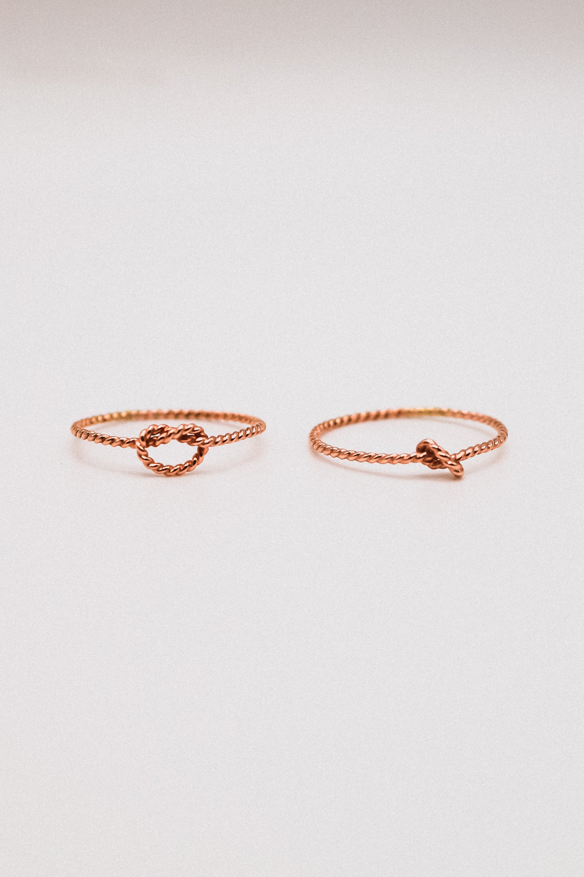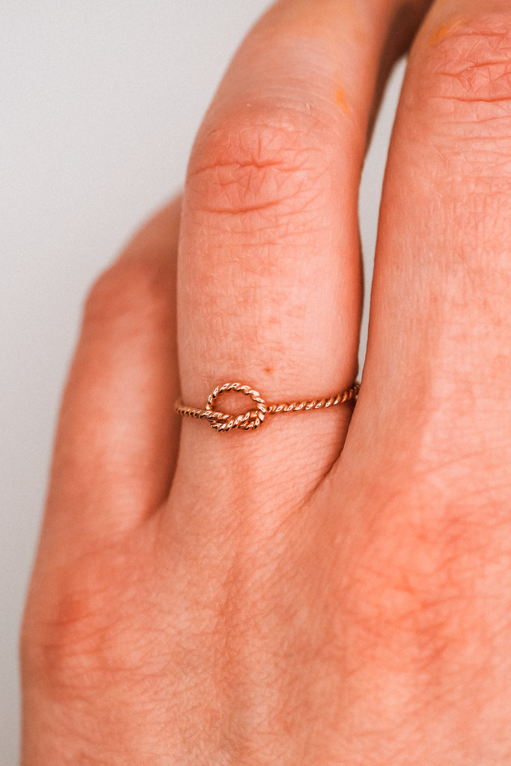 The Twist Open Knot Ring is a gorgeous alternative engagement ring or wedding band! This ring adds a bit of extra detail to any stack. This is one single length of twisted metal that we have knotted into an open, knot silhouette and soldered around the back. This delicate ring makes a thoughtful friendship ring, a modern bridesmaid gift, or a sweet matching moment for partners, siblings, or besties.