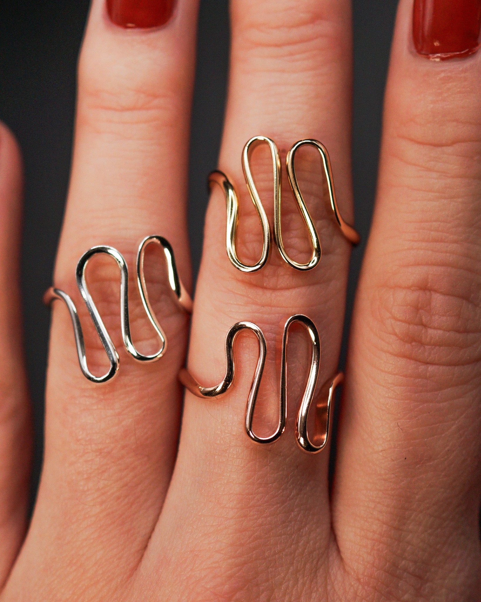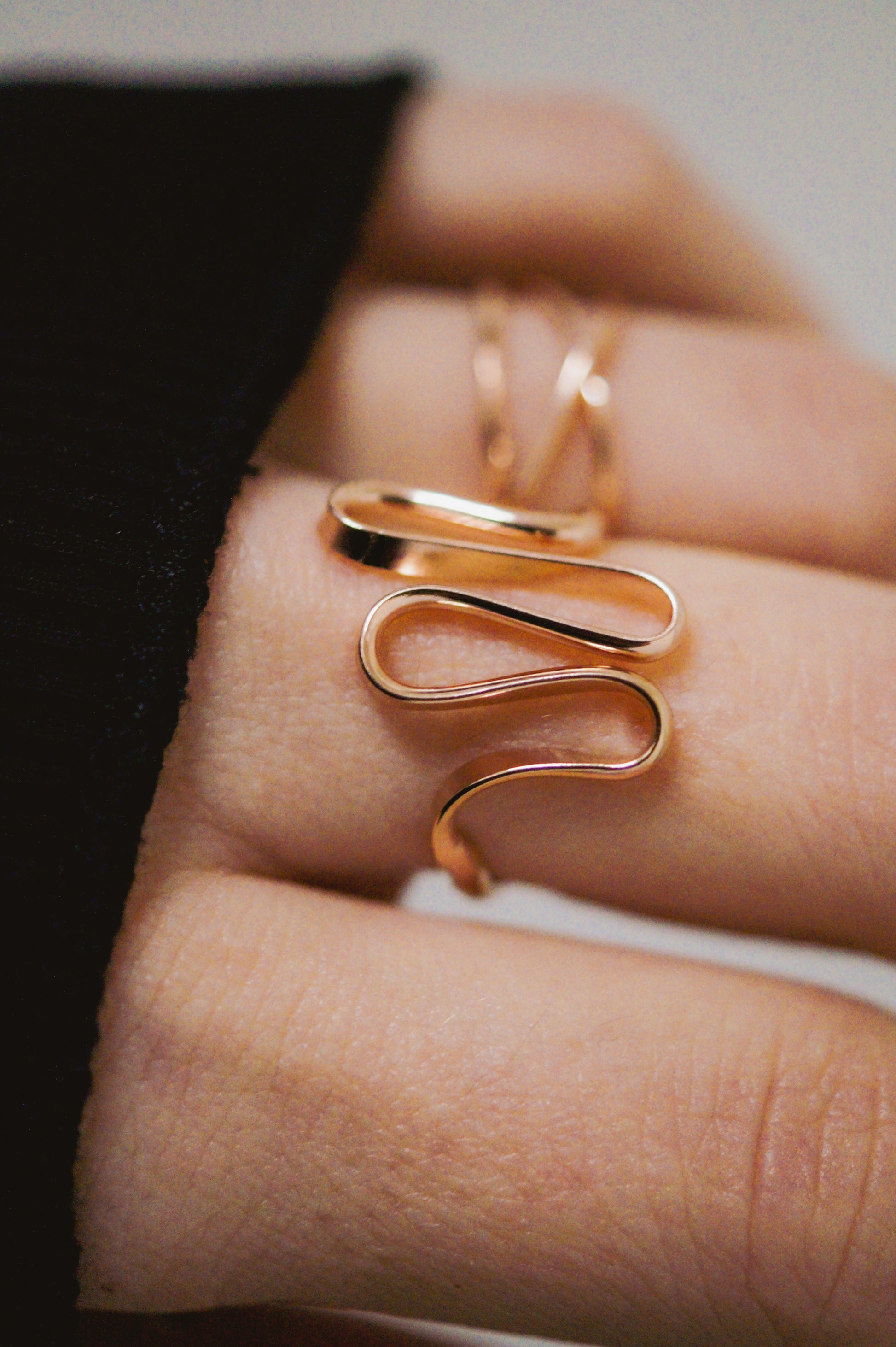 Bold yet minimal, the Form Ring is a modern statement piece with a beautifully curved, sculptural design. Handcrafted uniquely for you, the smooth, organic band wraps elegantly around the finger, with a sleek and comfortable fit. The elegant curves of this design are wave-like, creating a sense of movement and fluidity that is versatile and organic.