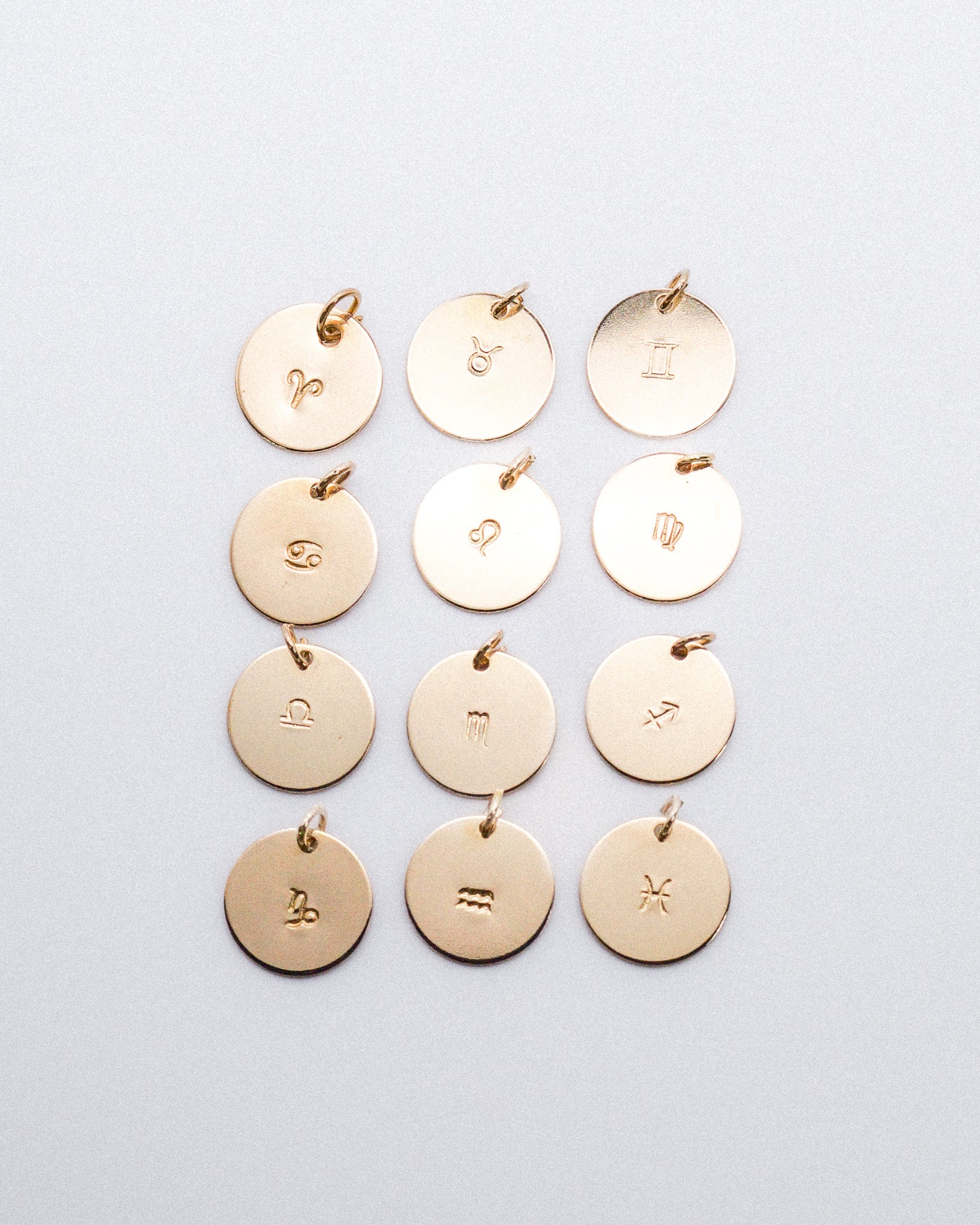 Select your Zodiac Sign from the dropdown! :) Aries (March 21 - April 20) | Taurus (April 21 - May 20) | Gemini (May 21 - June 21)Cancer (June 22 - July 22) | Leo (July 23 - August 23) | Virgo (August 24 - September 23)Libra (September 24 - October 23) | Scorpio (October 24 - November 22)Sagittarius (November 23 - December 21) | Capricorn (December 22 - January 20)Aquarius (January 21 - February 18) | Pisces (February 19 - March 20)This is a listing for a SINGLE PENDANT (no chain included) and is available in 14K Gold Fill, Rose Gold Fill, or Sterling Silver. |